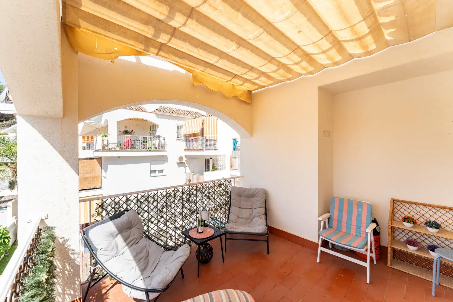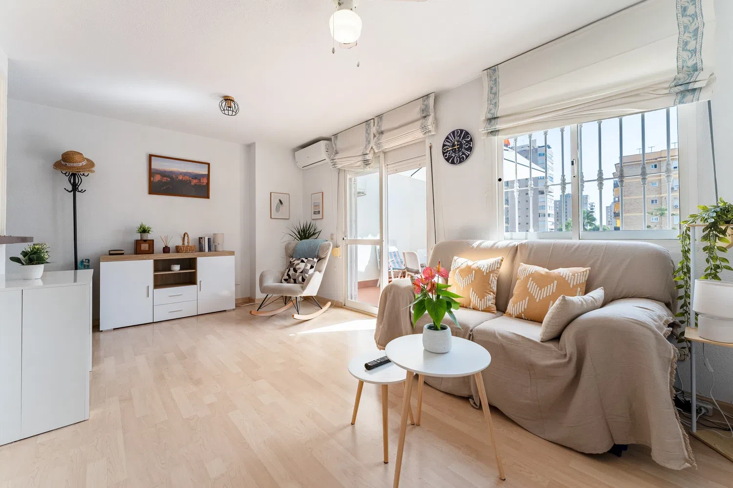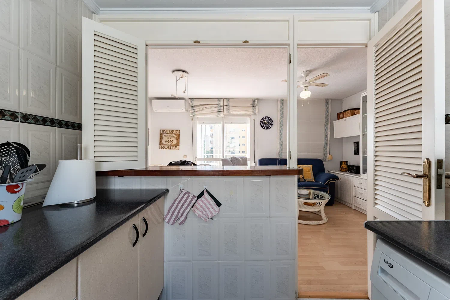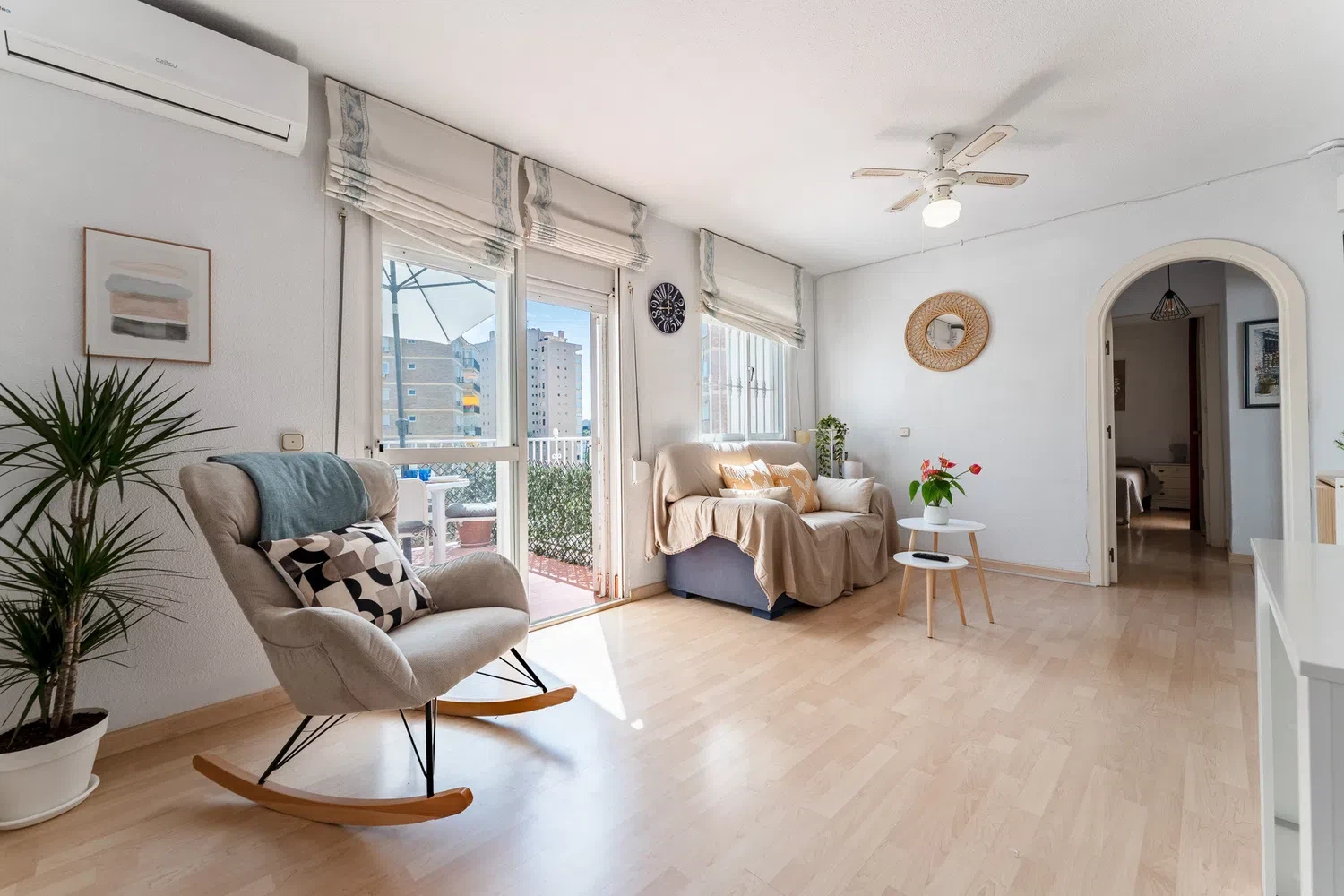 El apartamento cuenta con dos agradables terrazas donde podrás desayunar al aire libre, relajarte al sol o disfrutar de las noches de verano. El salón comedor dispone de aire acondicionado y se integra con una práctica cocina americana totalmente equipada, perfecta para preparar tus comidas durante la estancia.
