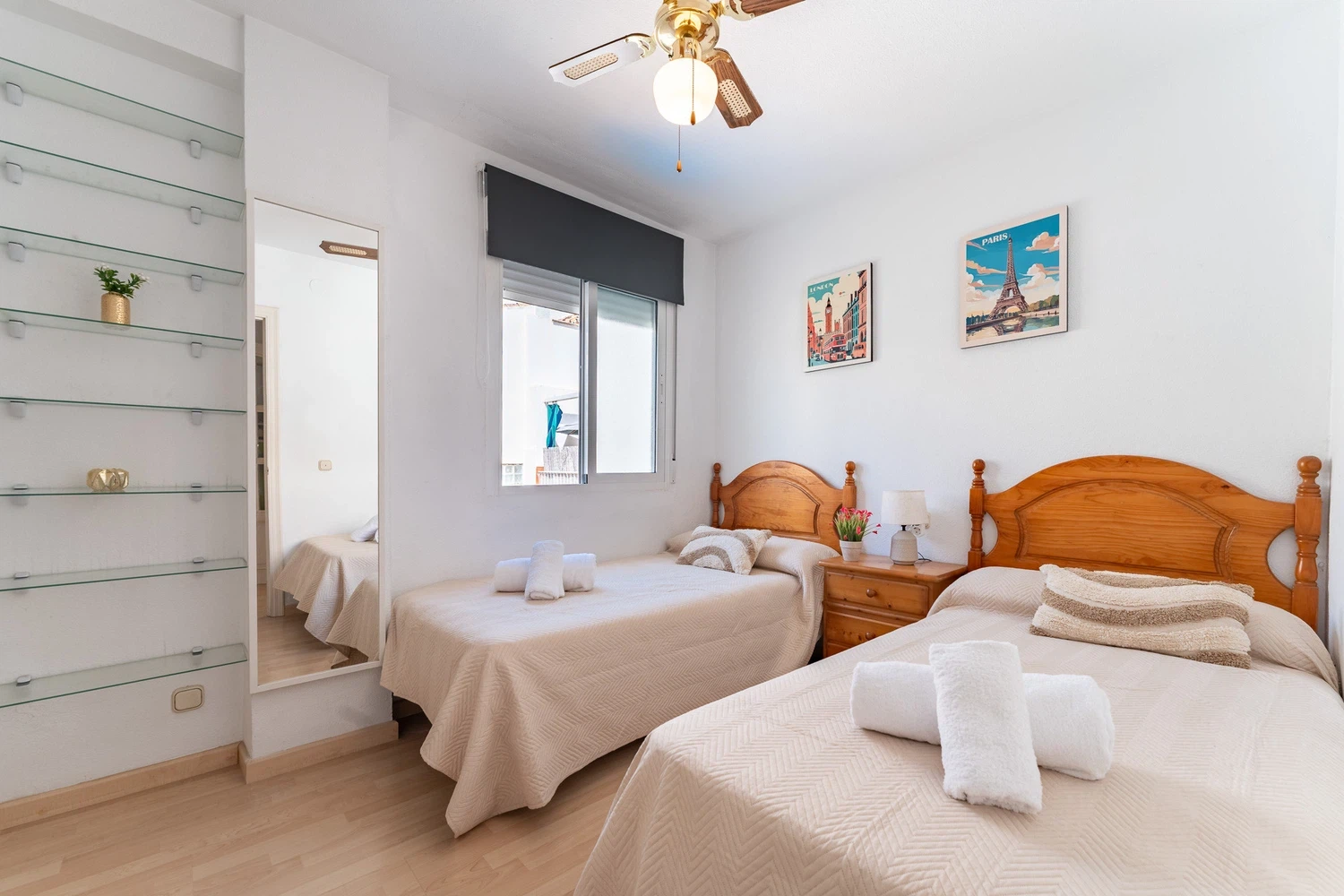 Disfruta de unas vacaciones perfectas en este acogedor apartamento ubicado en la tranquila calle Tirreno, en Torremolinos, a solo unos pasos de la playa. Ideal para familias de hasta 4 personas, el alojamiento combina comodidad, ubicación y servicios pensados para el descanso.