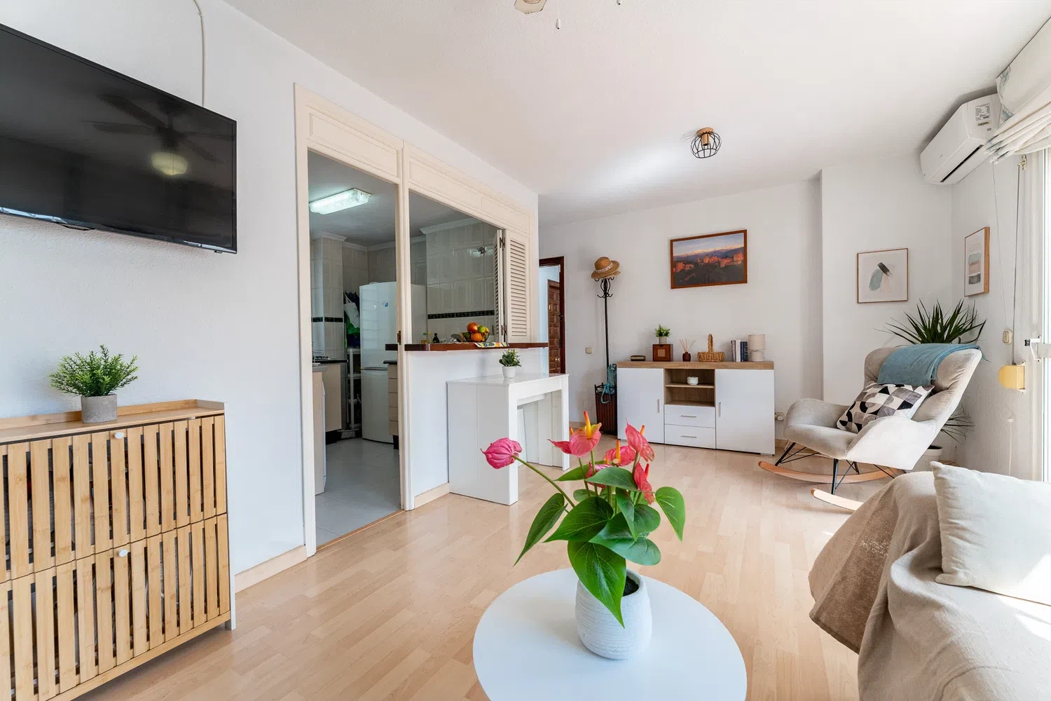 Además, el apartamento incluye una plaza de parking privada y acceso a una piscina comunitaria, lo que garantiza una estancia sin preocupaciones y con opciones de ocio tanto dentro como fuera del alojamiento.
