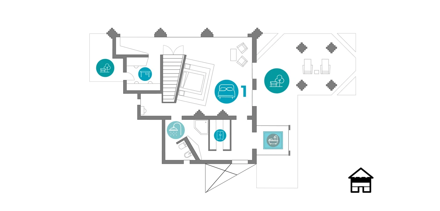 - Dormitorio exclusivo con jacuzzi acristalado y terraza privada. Dispone de baño en suite con ducha.