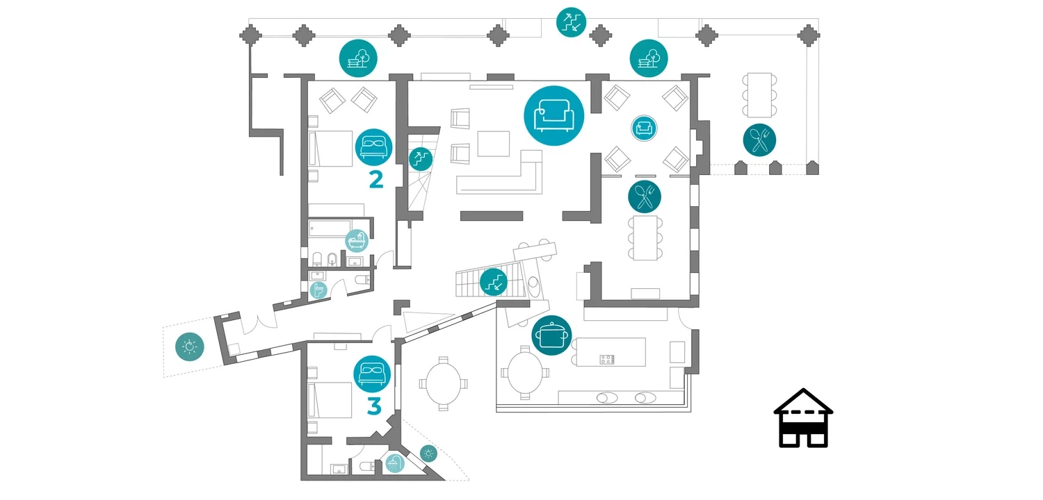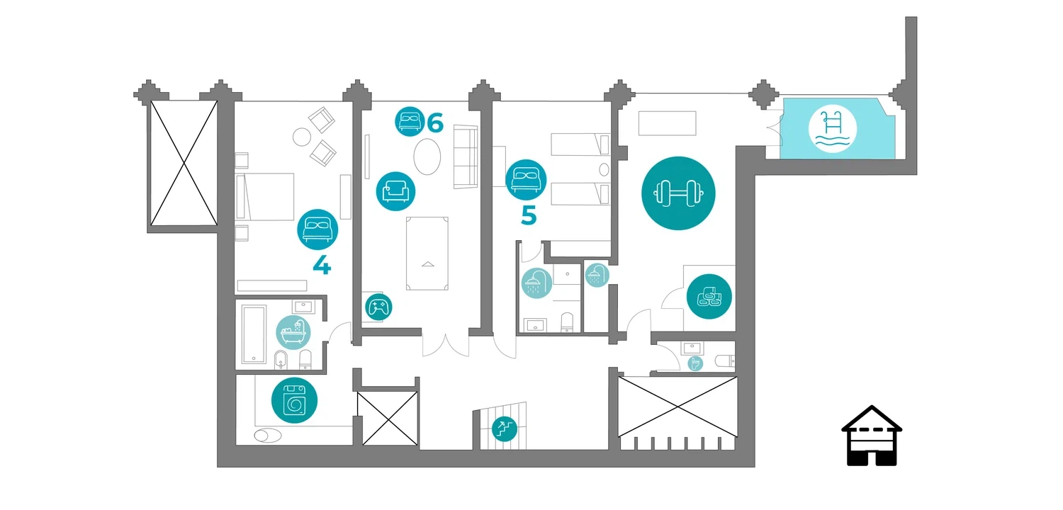Personas: 12 • Dormitorios: 6 • Baños: 5