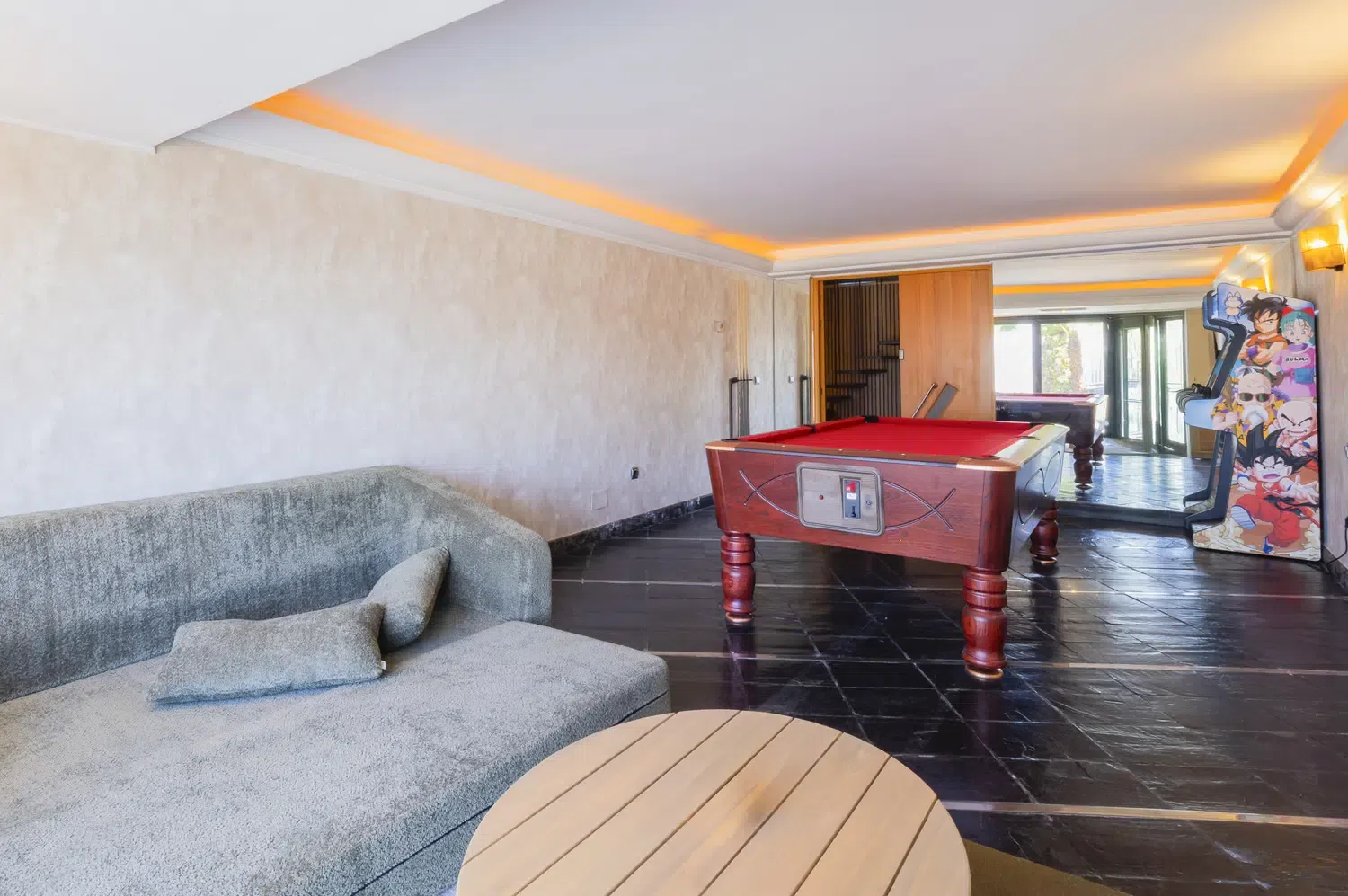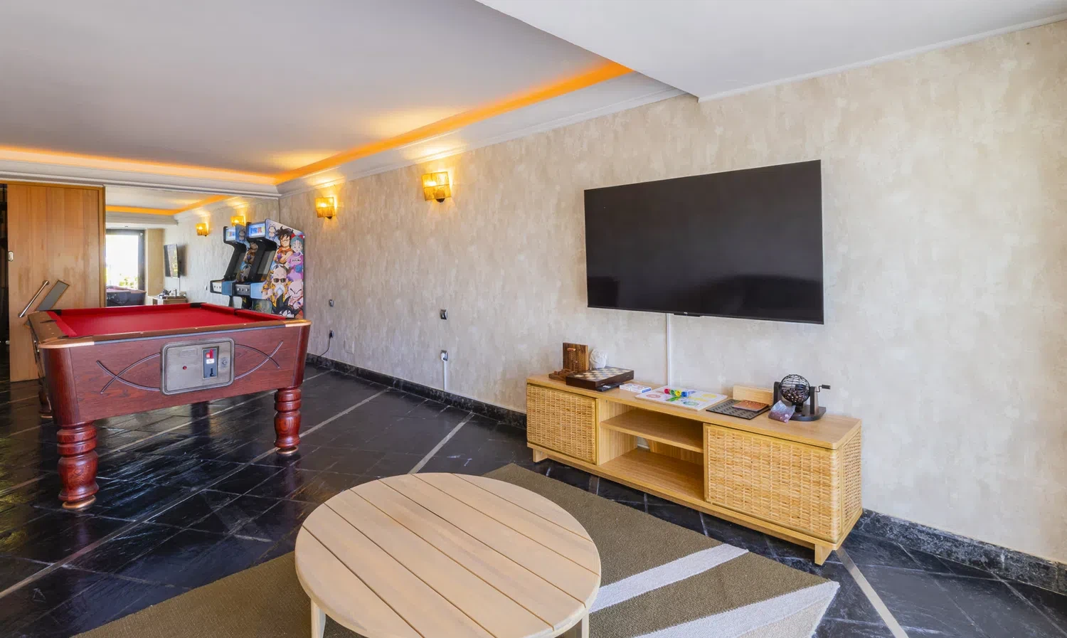 - Sala de juegos equipado con billar y maquina recreativa de videojuegos con unos 1.500 juegos, además de con un sofá-cama para dos plazas adicionales.