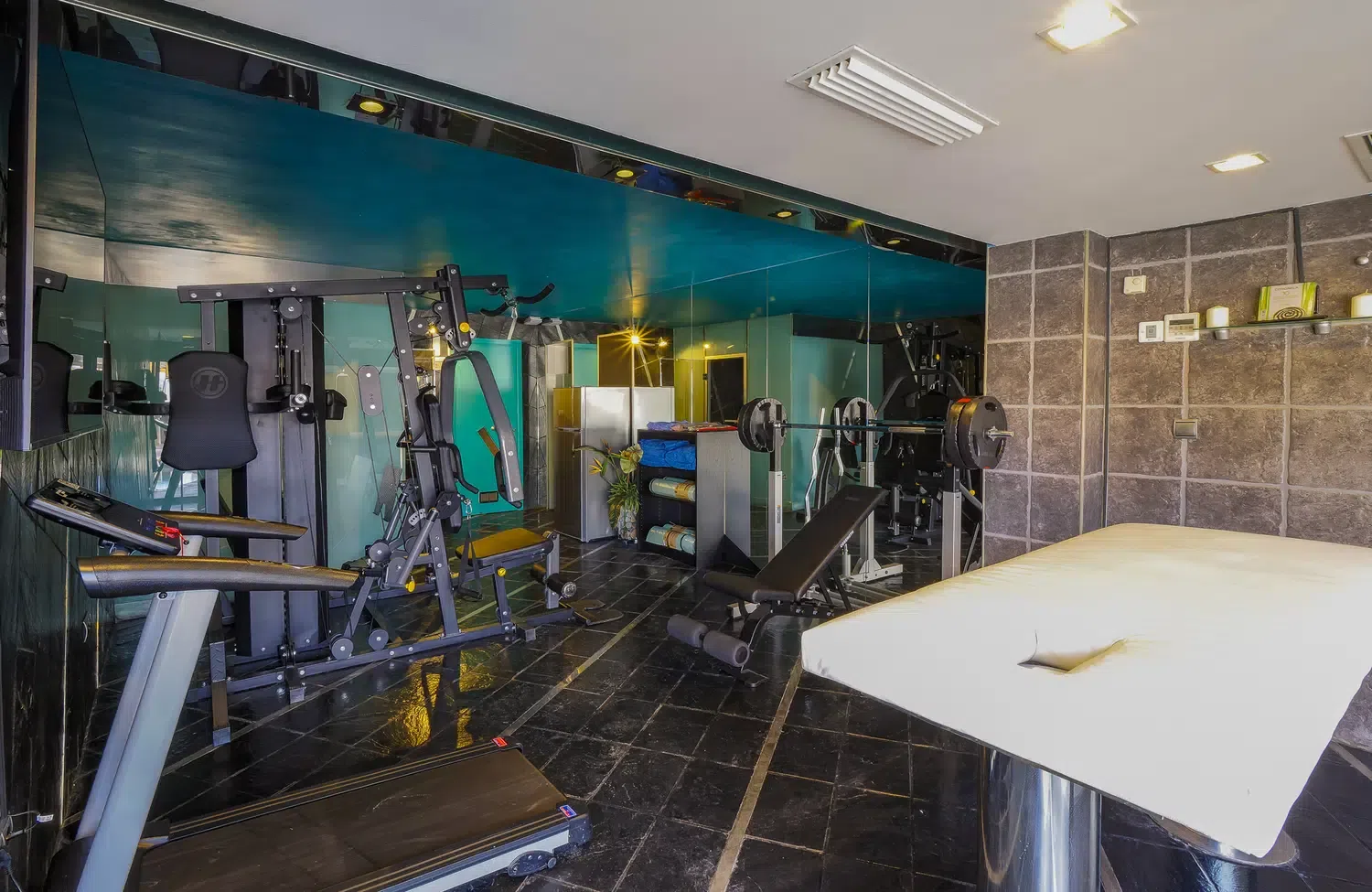 - Gimnasio privado con pesas, cinta de correr y máquina multiple.