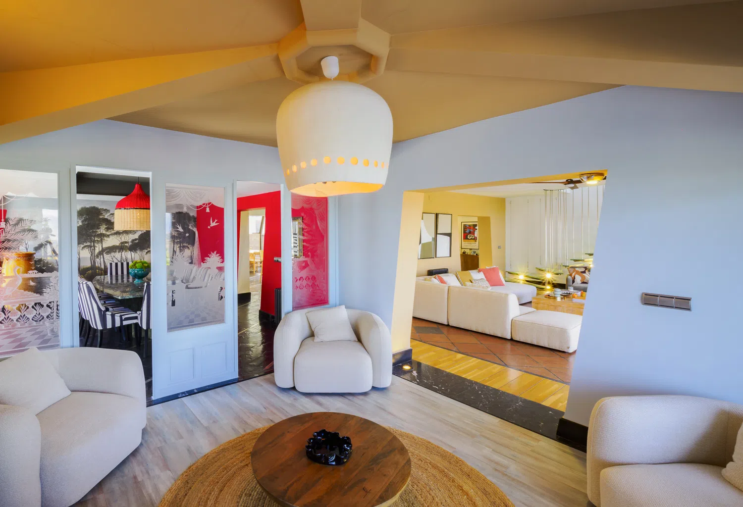 Una villa de autor donde la arquitectura se funde con el arte y la naturaleza para crear una experiencia única: ventanales que enmarcan el horizonte como lienzos, terrazas que abrazan la luz en cada instante del día y espacios abiertos que invitan tanto al encuentro como a la contemplación. Inspirada en la visión de Le Corbusier y en el espíritu creativo que compartió con Picasso, este alojamiento no es solo un lugar donde alojarse, sino un refugio sereno que reconecta con lo esencial de la vida, donde belleza, modernidad y alma se encuentran en perfecta sintonía.
