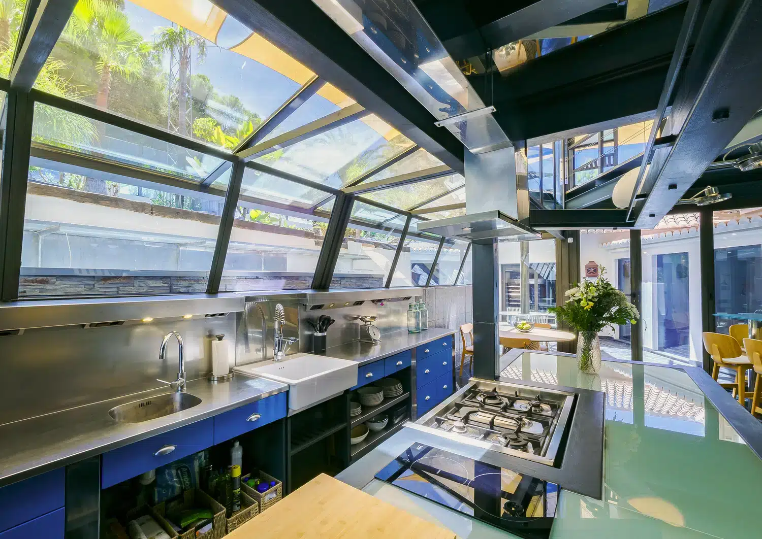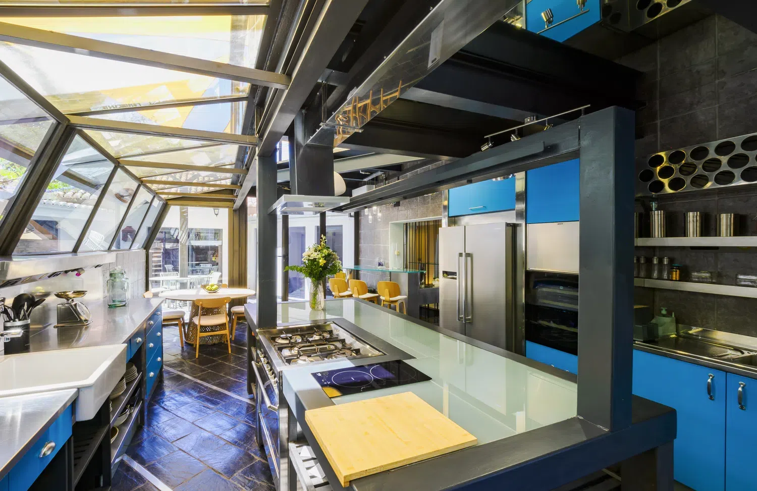 - Cocina profesional con horno y hornilla industrial, cristaleras al exterior