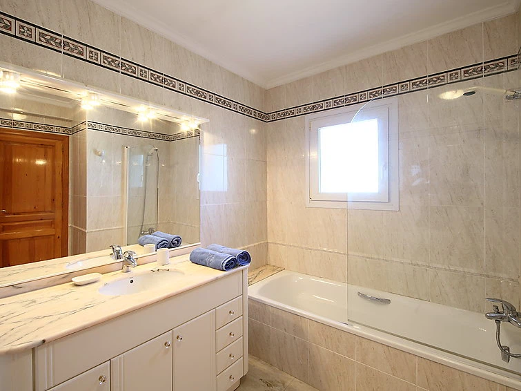 Casa "Faisa", bonita de 2 plantas. En el barrio de La Marina, lugar tranquilo, soleado, elevado en un barrio residencial, a 7.4 km del mar. Privado: jardín (vallado) con césped y plantas, piscina (4 x 9 m, 100 - 200 cm de profundidad, Disponible por temporada: 01.Ene. - 31.Dic.) con escalera interior. En el inmueble: calefacción central. Acceso por escaleras (9 escalones) hasta la casa. Supermercado 3.3 km, restaurante 3.3 km, parada de autobús 8 km, playa de arena "Arenal" 7.4 km, cala para bañarse 2 km. Tenis 3.3 km. Grupos de jóvenes sólo bajo petición.