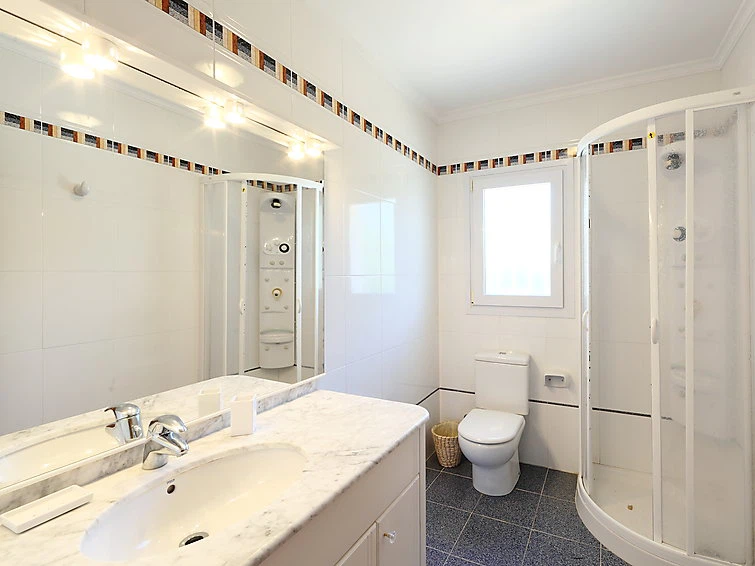 Casa 4 estancias 160 m2. Con mobiliario confortable y bonito: salón-comedor con chimenea y TV satélite. Salida a la terraza. 1 dorm. con 1 cama de matrimonio (150 cm, 190 cm de longitud), aire acondicionado. 1 dorm. con 2 camas (90 cm, 180 cm de longitud), aire acondicionado. Cocina (4 fogones, horno, lavavajillas, tostadora, hervidor de agua eléctrico, microondas, congelador, cafetera eléctrica). Ducha/WC. Planta superior: 1 dorm. con 1 cama doble (180 cm, 190 cm de longitud), baño/bidet/WC y aire acondicionado. Salida a la terraza. Terraza grande 27 m2, cubierta. Muebles de terraza, barbacoa (portátil), tumbonas. Vista parcial al mar. El alojamiento dispone de: lavadora, plancha, trona, cuna, secador de pelo. Internet (Wifi, gratis). Garaje junto a la casa. AT-430946-A