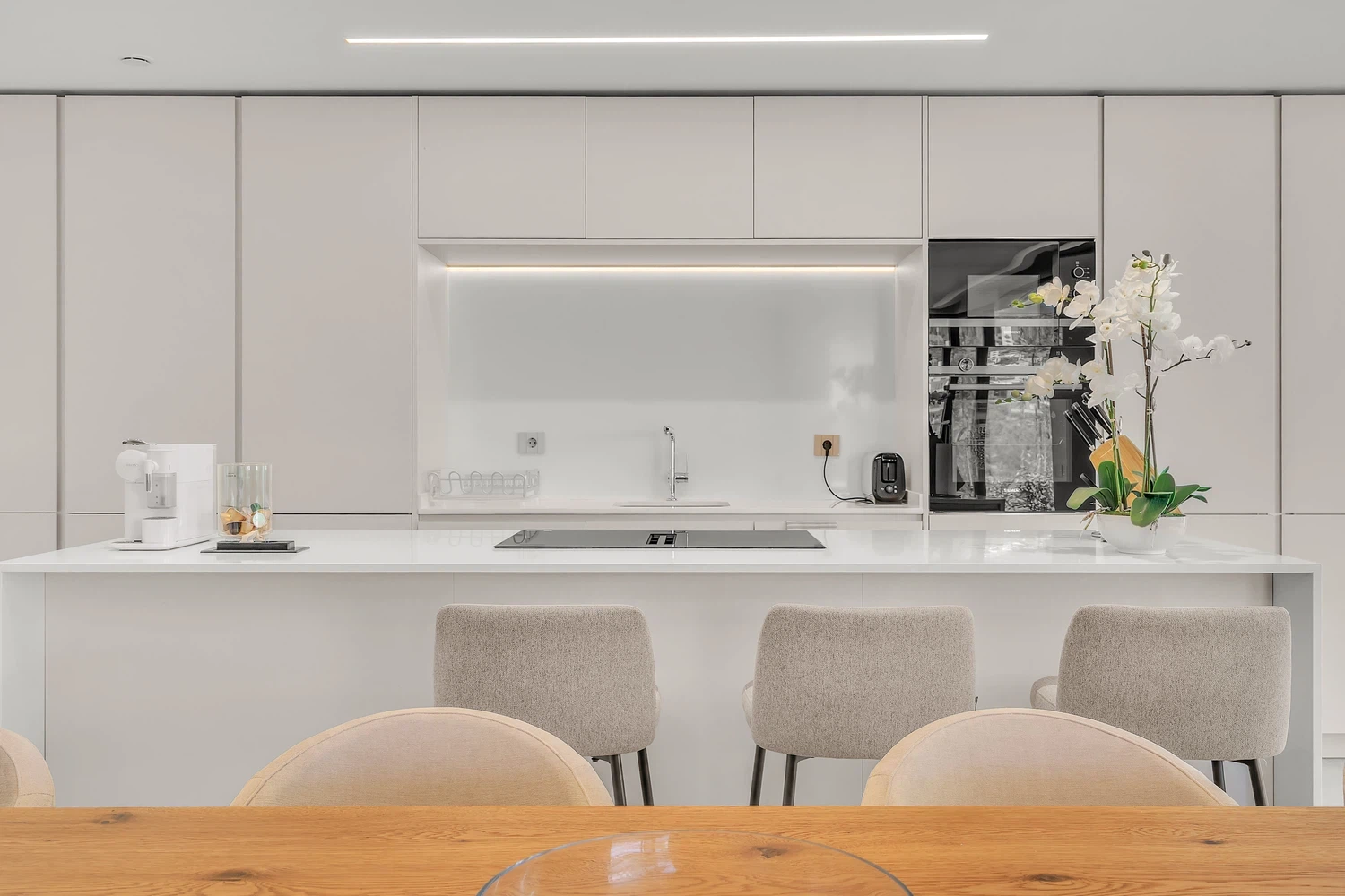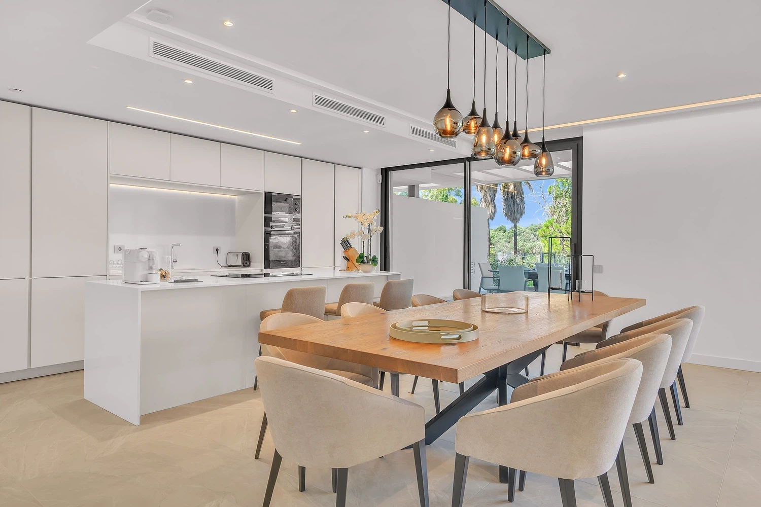 En el interior, la cocina está completamente equipada con electrodomésticos de primera categoría, lo que la convierte en un placer cocinar y entretener. Un garaje privado subterráneo con acceso directo a la villa garantiza comodidad y privacidad durante toda su estancia.