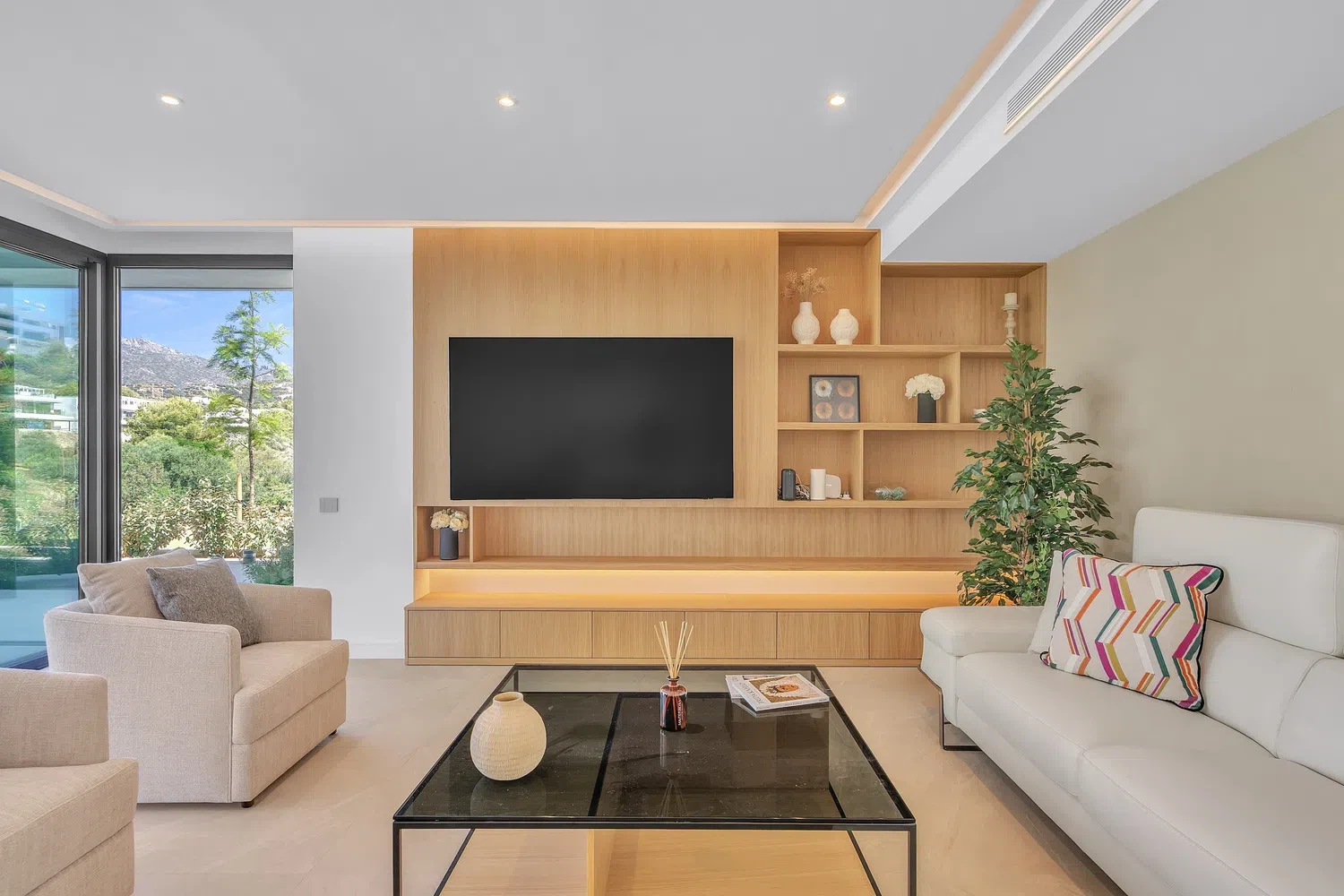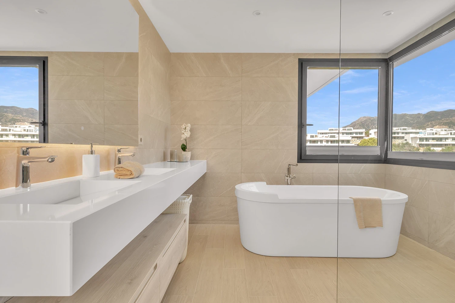 Como parte de la comunidad cerrada Soul Marbella, los huéspedes disfrutan de acceso a cinco piscinas, un gimnasio de alta gama y un centro de bienestar, sauna, baño turco, espacio de coworking, jardines paisajísticos y el Club de Golf Santa Clara justo al lado. Las playas doradas de Marbella, el Casco Antiguo y Puerto Banús están a solo un corto trayecto.