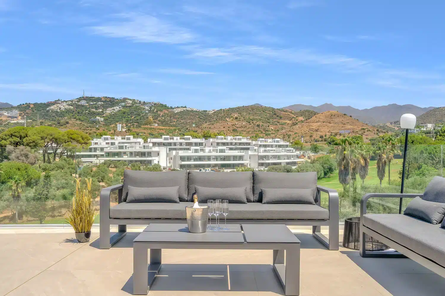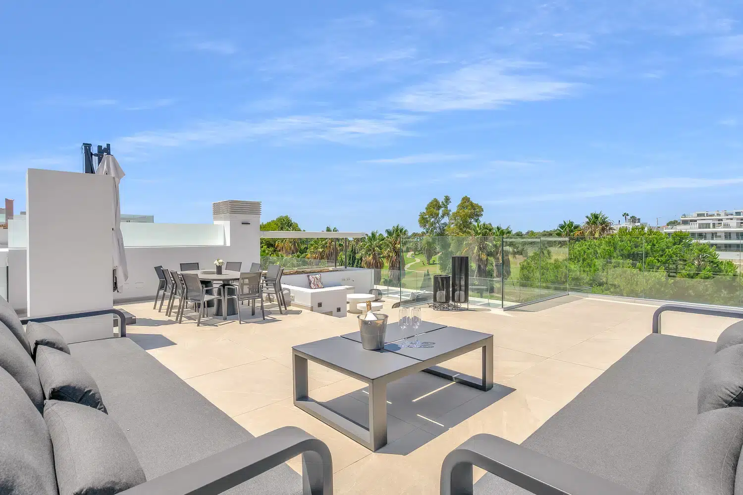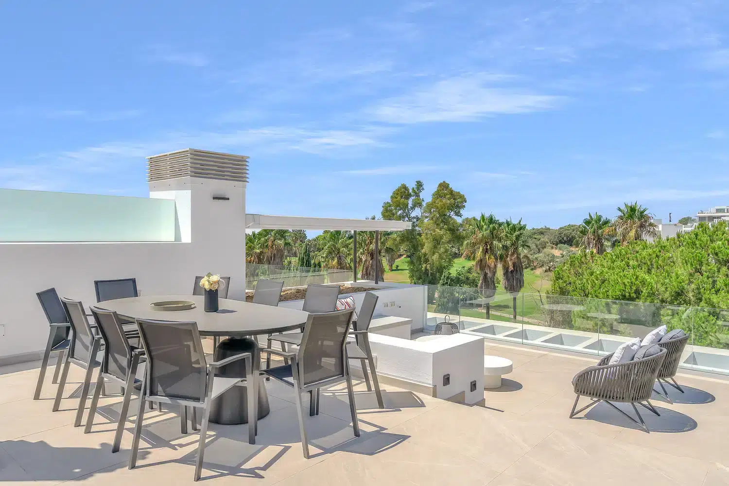 Uno de los puntos destacados de la villa es su terraza privada en la azotea, que ofrece vistas panorámicas del mar y la costa de Marbella. Es el lugar perfecto para relajarse con una bebida, disfrutar de la puesta de sol o pasar una velada tranquila bajo las estrellas.