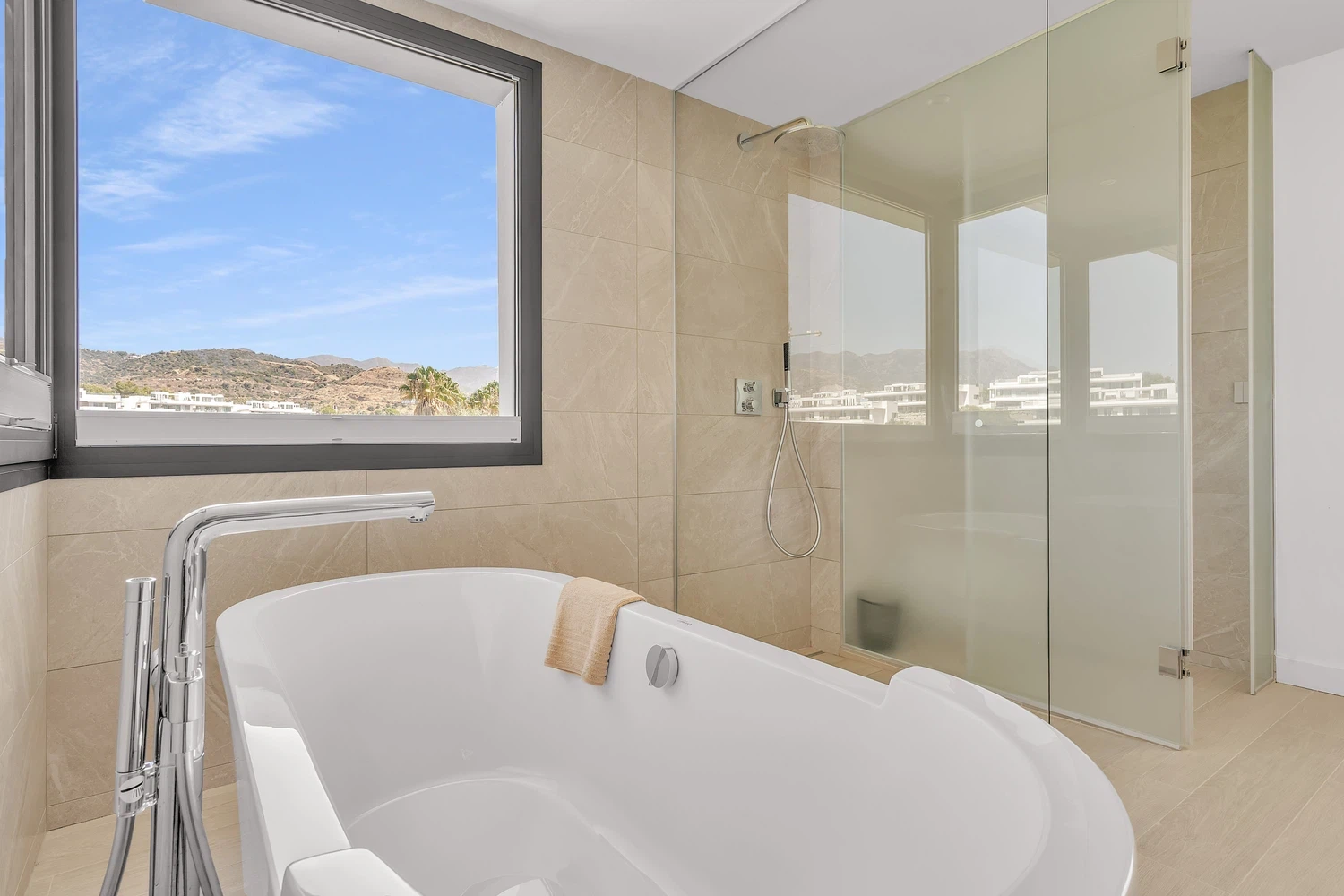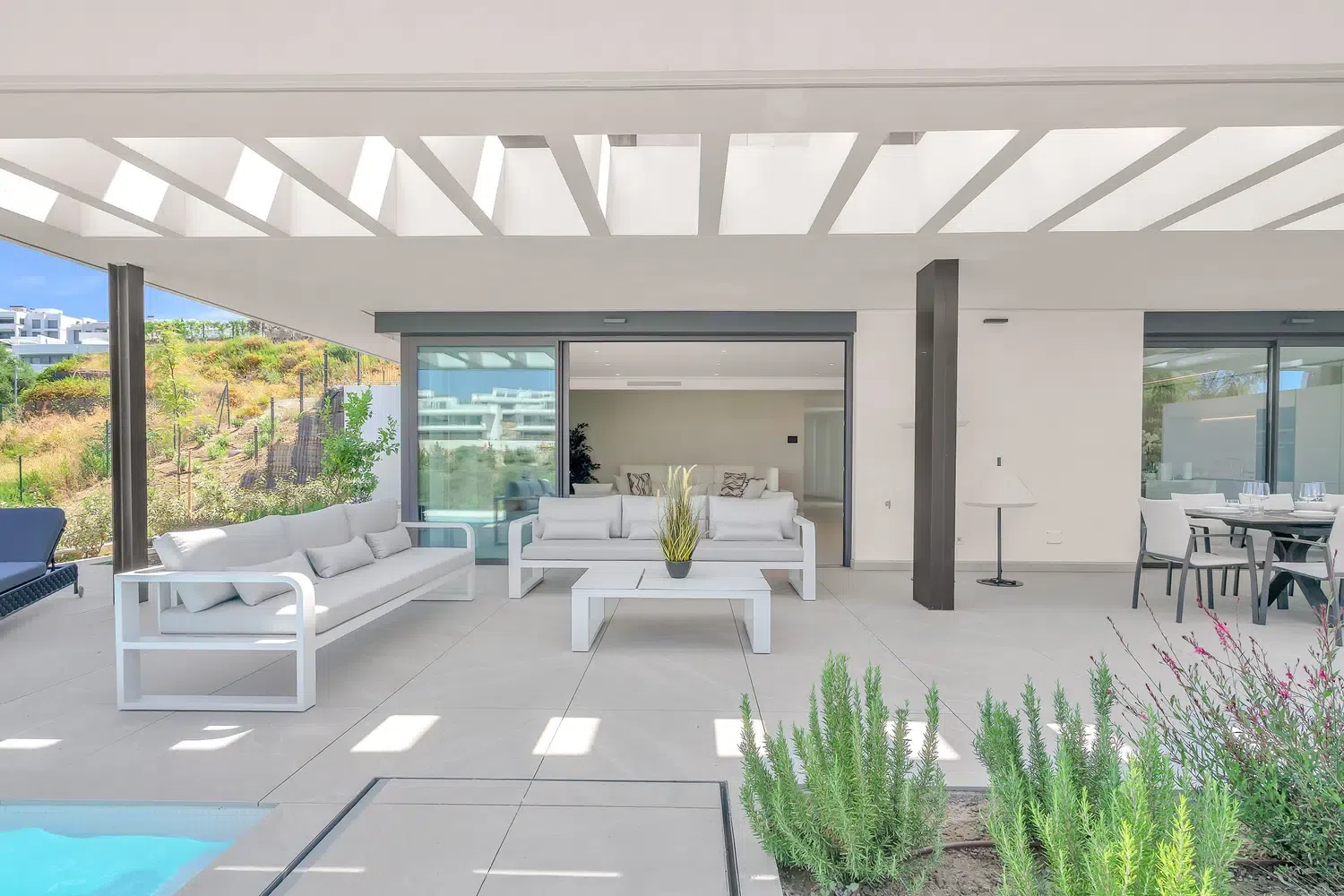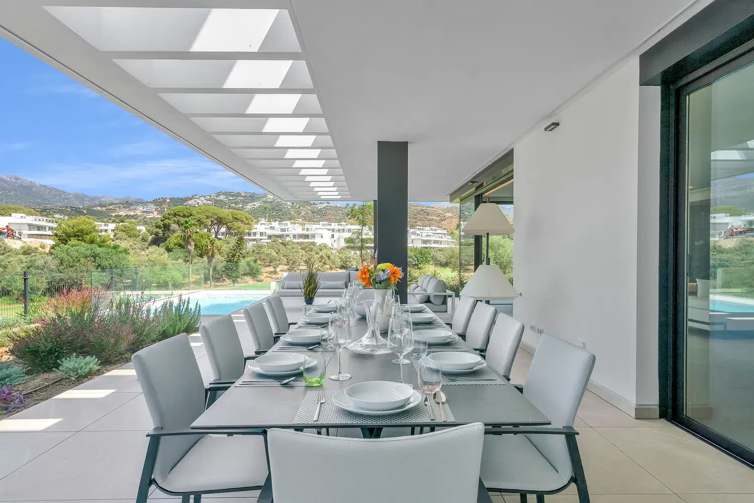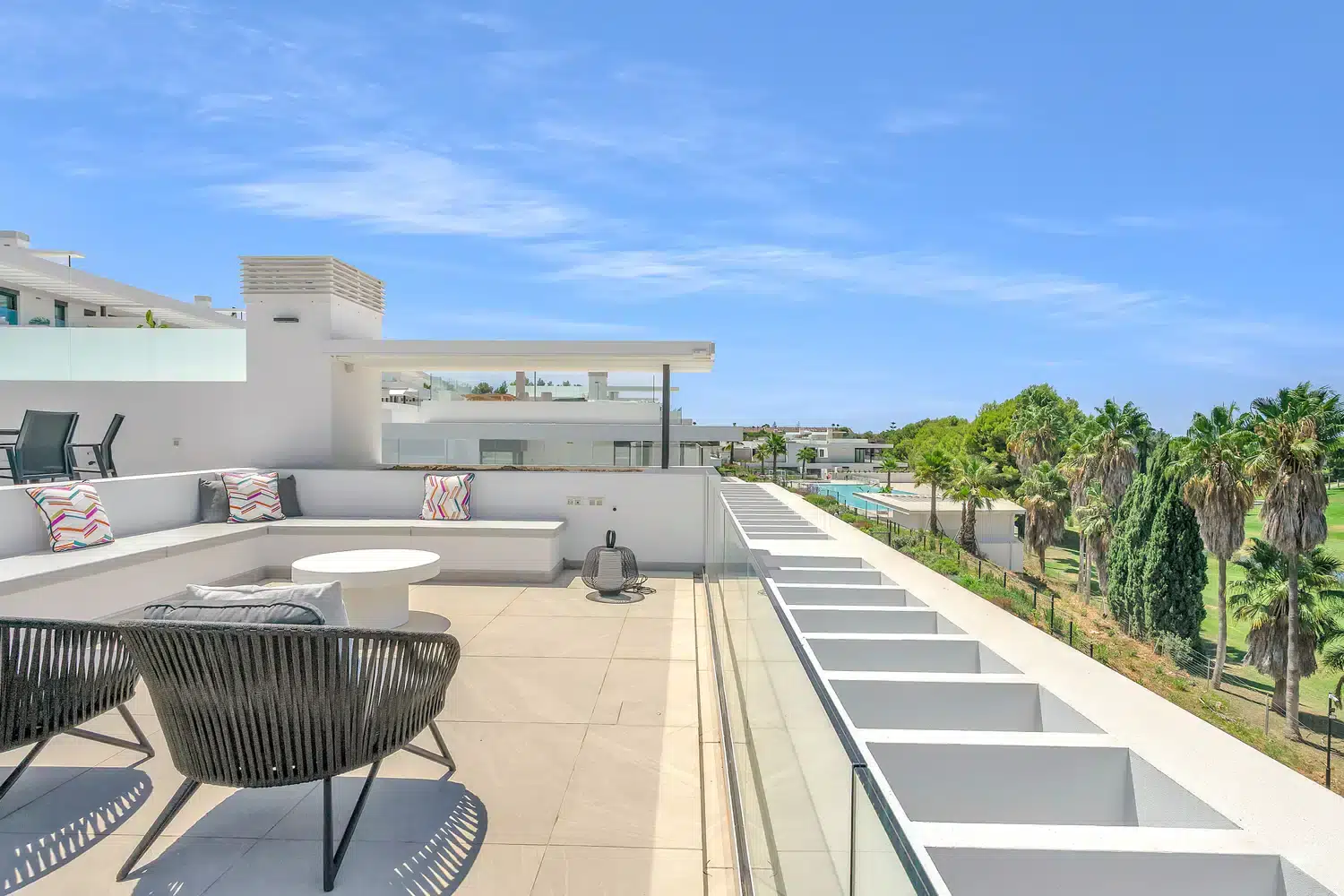 Uno de los puntos destacados de la villa es su terraza privada en la azotea, que ofrece vistas panorámicas del mar y la costa de Marbella. Es el lugar perfecto para relajarse con una bebida, disfrutar de la puesta de sol o pasar una velada tranquila bajo las estrellas.