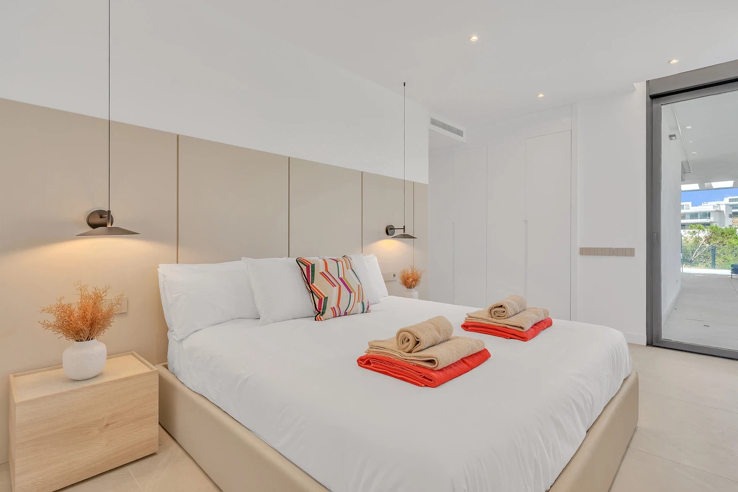 La villa aloja hasta diez huéspedes en cinco dormitorios bellamente diseñados, incluyendo una suite principal espaciosa con vestidor, baño en suite y una terraza privada. El área de estar y comedor de planta abierta fluye perfectamente hacia una terraza amueblada, con una piscina privada de inmersión, zona de comedor al aire libre y tumbonas, ideal para tomar el sol o disfrutar de la cena bajo las estrellas.