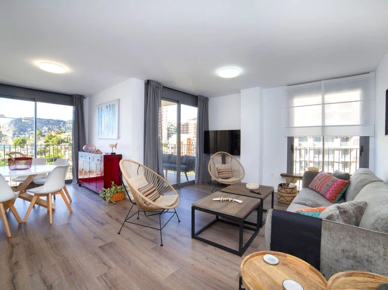 "Isea Calpe 01", apartamento de 3 estancias 87 m2 en el 6° piso. Vivienda adecuada para 2 adultos + 2 niños. Espacioso y luminoso, con mobiliario muy bonito y moderno: salón-comedor abierto con TV satélite, TV digital, canales internacionales, pantalla plana, aire acondicionado y bomba de calor, caliente. Salida a la terraza. 1 dorm. con 1 cama de matrimonio (1 x 160 cm, 200 cm de longitud), ducha/WC, TV, aire acondicionado, bomba de calor, caliente y persianas eléctricas. 1 dorm. para niños con 1 cama-nido (2 pers. 2 x 90 cm, 190 cm de longitud), aire acondicionado, bomba de calor, caliente y persianas eléctricas. Cocina abierta (horno, lavavajillas, 3 placas de vitrocerámica, microondas, congelador, cafetera eléctrica) con aire acondicionado y bomba de calor, caliente. Baño/WC. Aire acondicionado, aire caliente. Terraza 8 m2. Muebles de terraza. Muy bonita al mar, a las montañas y a la localidad. El alojamiento dispone de: lavadora, caja fuerte, trona, cuna hasta 2 años, secador de pelo. Internet (Wifi, gratis). Plaza de aparcamiento n. 10. A tener en cuenta: adecuado para familias. Casa para no fumadores. AT-480622-A