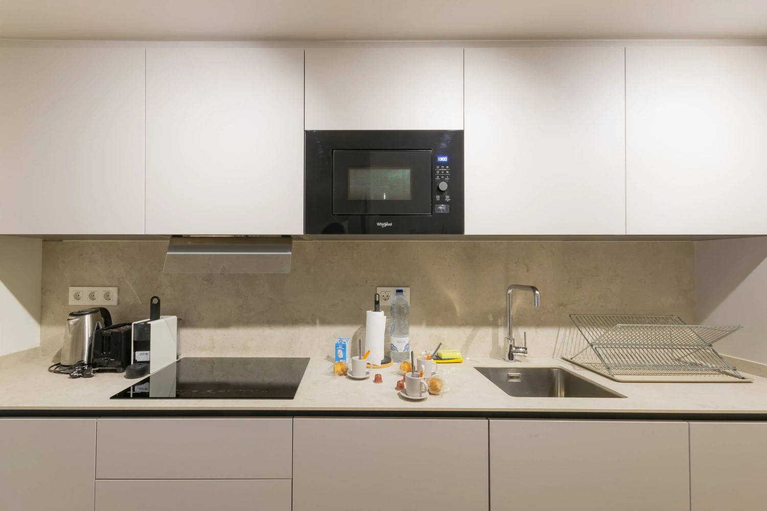 Cocina de Diseño: Integrada en el salón, esta moderna cocina está totalmente equipada con vitrocerámica, horno-microondas, frigorífico y todo el menaje necesario.
