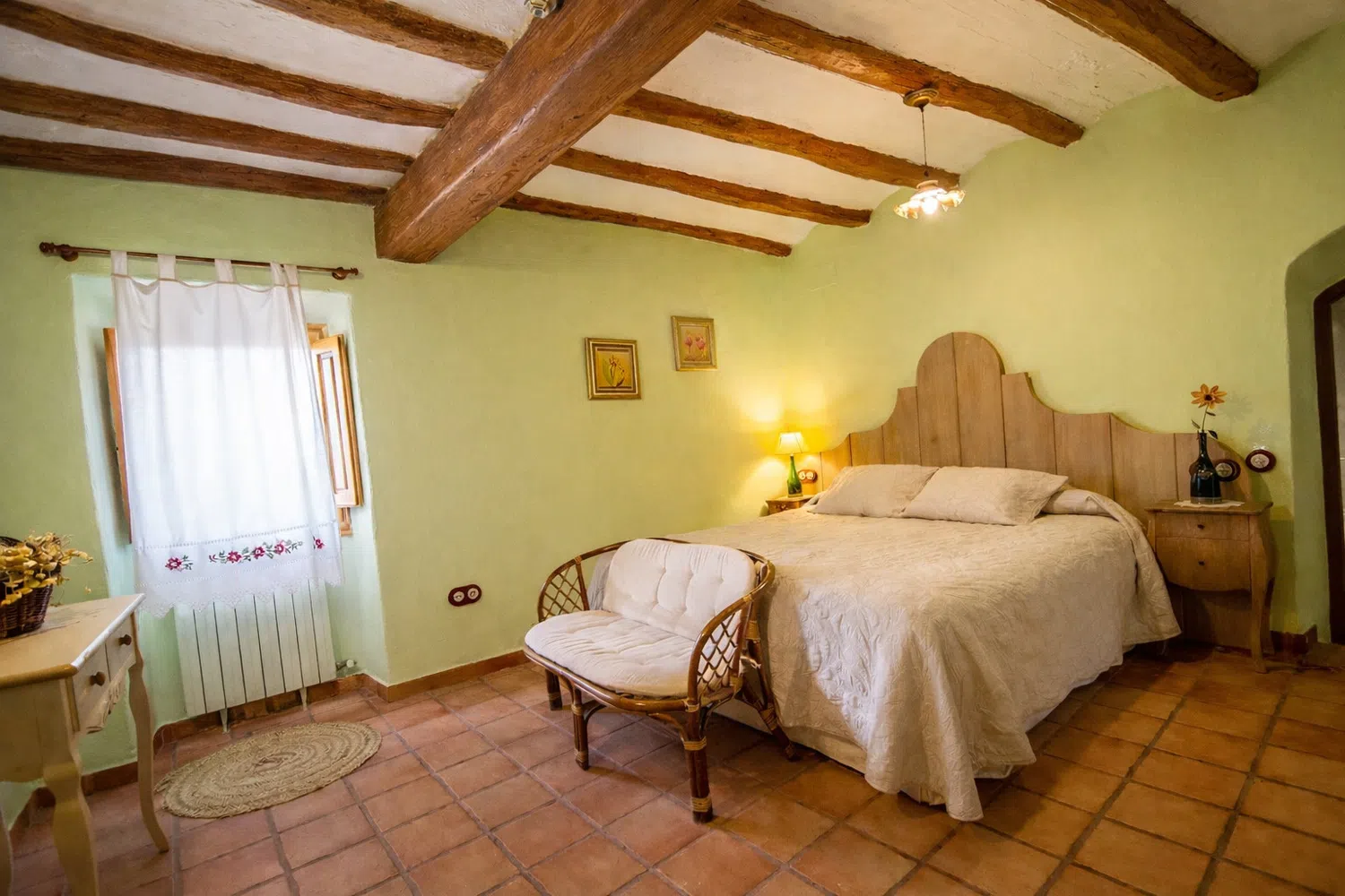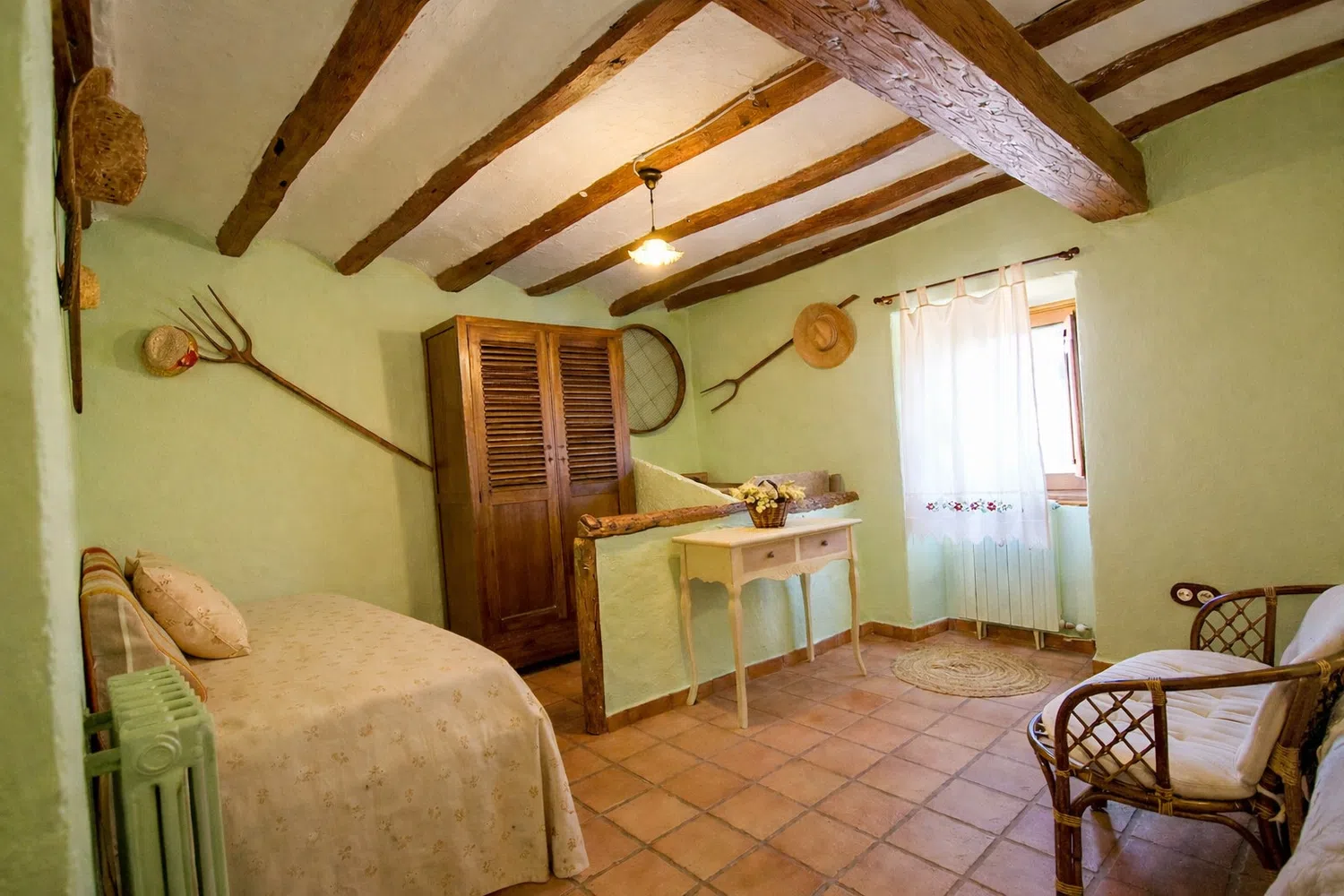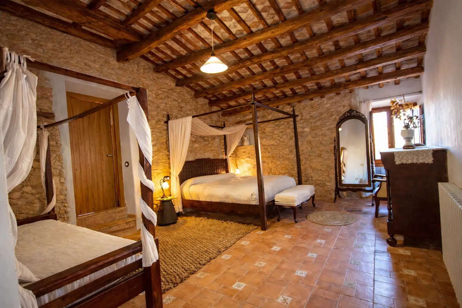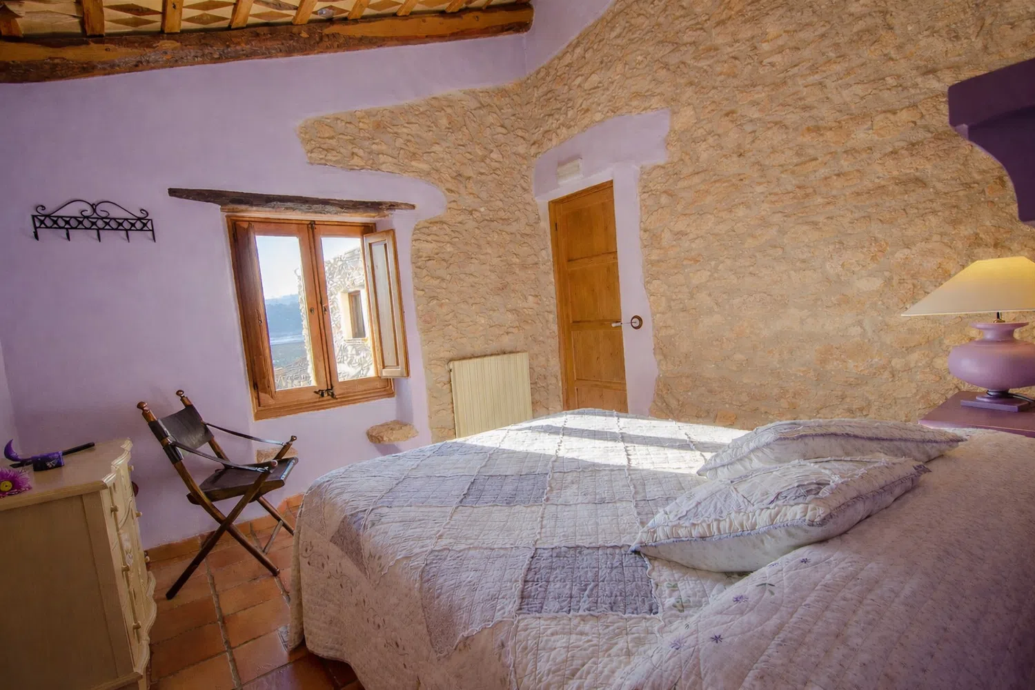 Dieciocho huéspedes pueden dormir en las seis habitaciones, la capacidad estándar es 13 personas, pero 5 camas adicionales se pueden añadir para acomodar al resto de la familia, por un suplemento diario por persona adicional. La planta baja cuenta con dos dormitorios: (1) una cama doble, una cama individual, baño privado, y (2) dos camas individuales y dos camas nido. En el segundo piso, las habitaciones son las siguientes: (1) una cama doble, una cama individual, baño privado, (2) una cama doble, un sofá cama, baño privado, (3) una cama doble, una cama individual, baño privado, y (4) una cama doble, cuarto de baño.