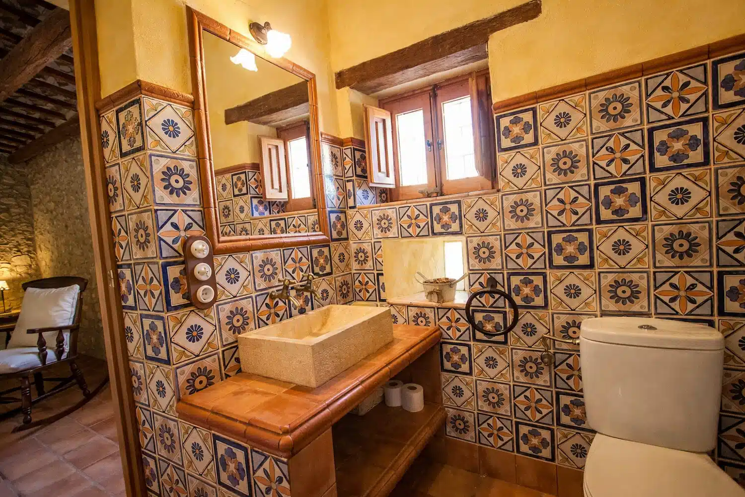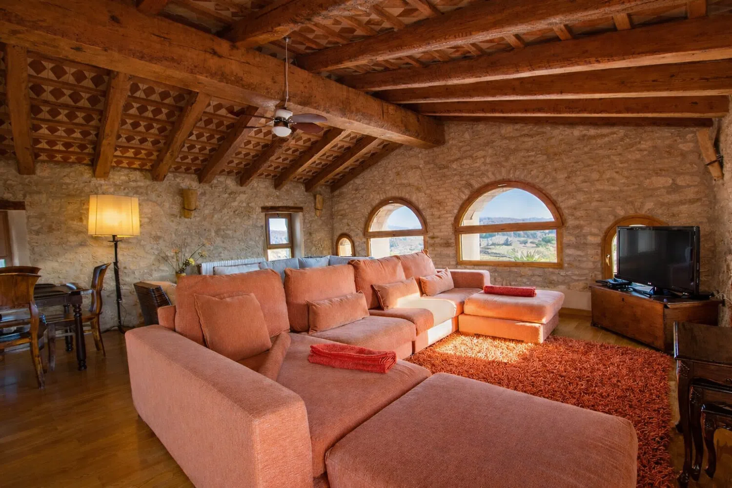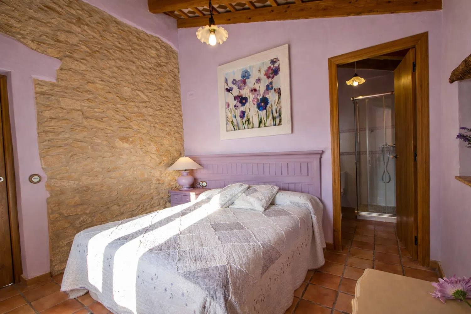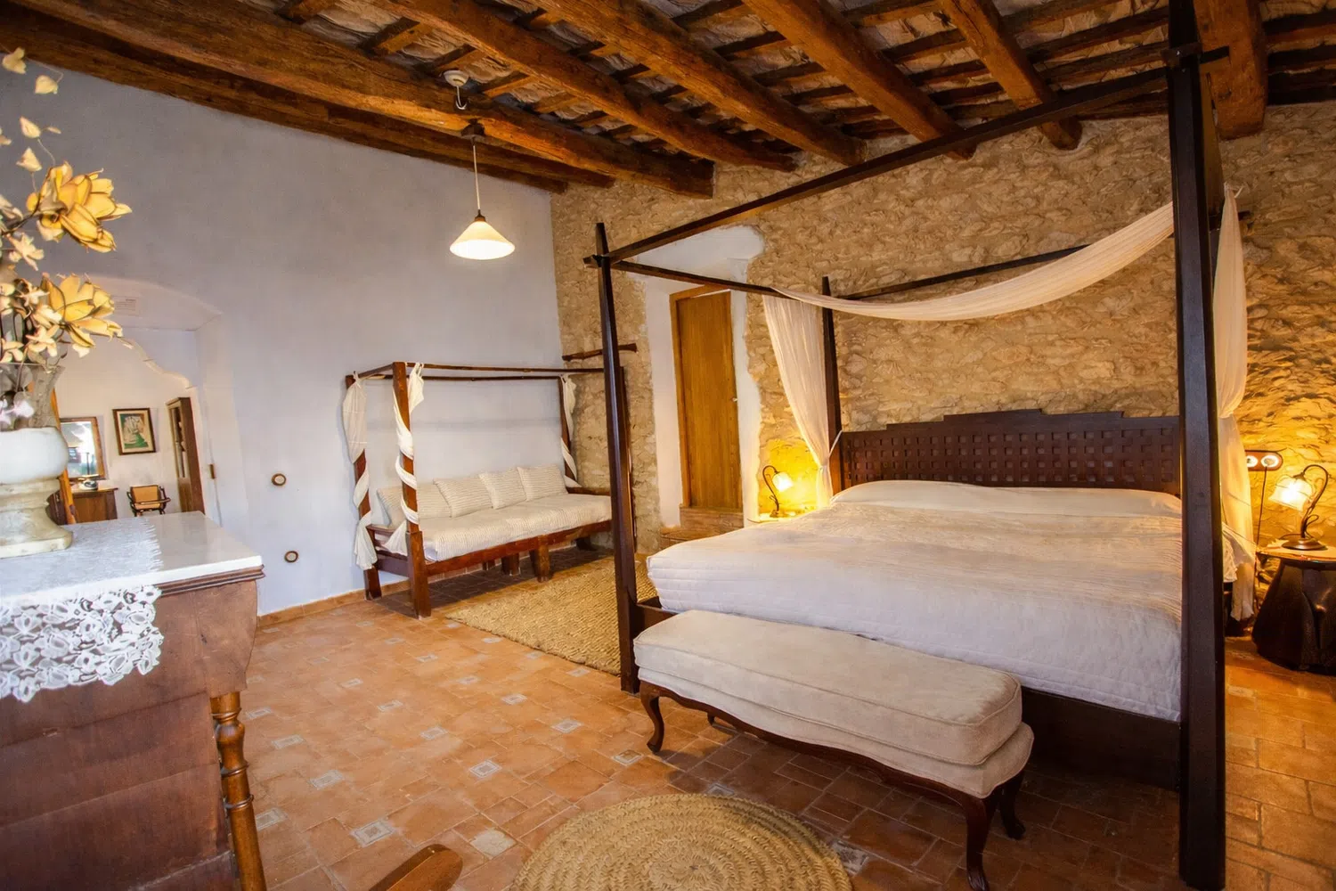 Dieciocho huéspedes pueden dormir en las seis habitaciones, la capacidad estándar es 13 personas, pero 5 camas adicionales se pueden añadir para acomodar al resto de la familia, por un suplemento diario por persona adicional. La planta baja cuenta con dos dormitorios: (1) una cama doble, una cama individual, baño privado, y (2) dos camas individuales y dos camas nido. En el segundo piso, las habitaciones son las siguientes: (1) una cama doble, una cama individual, baño privado, (2) una cama doble, un sofá cama, baño privado, (3) una cama doble, una cama individual, baño privado, y (4) una cama doble, cuarto de baño.