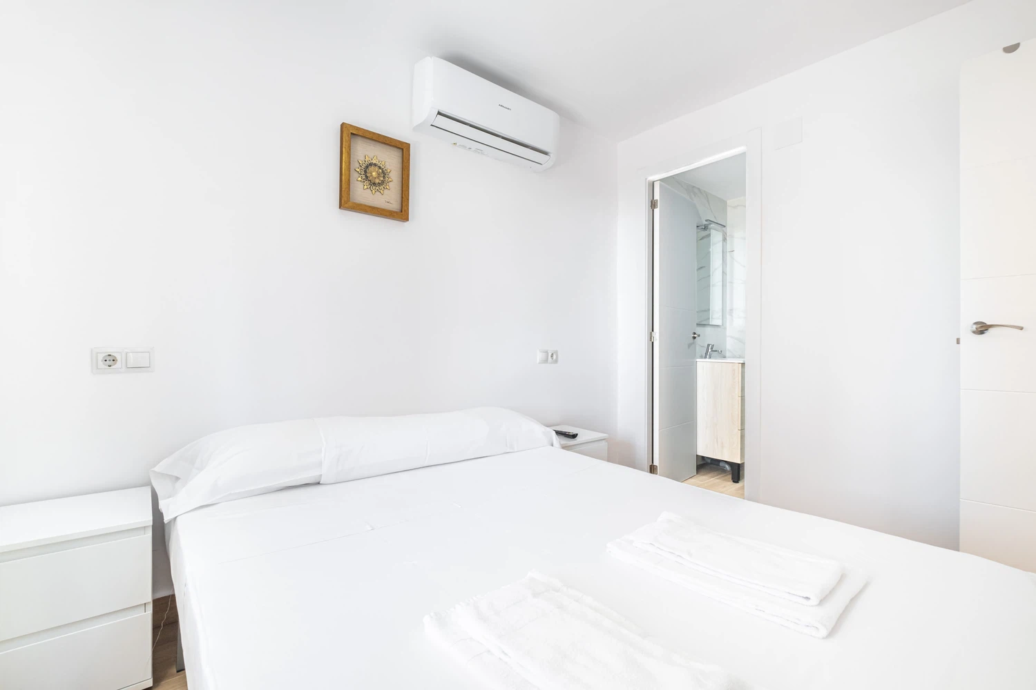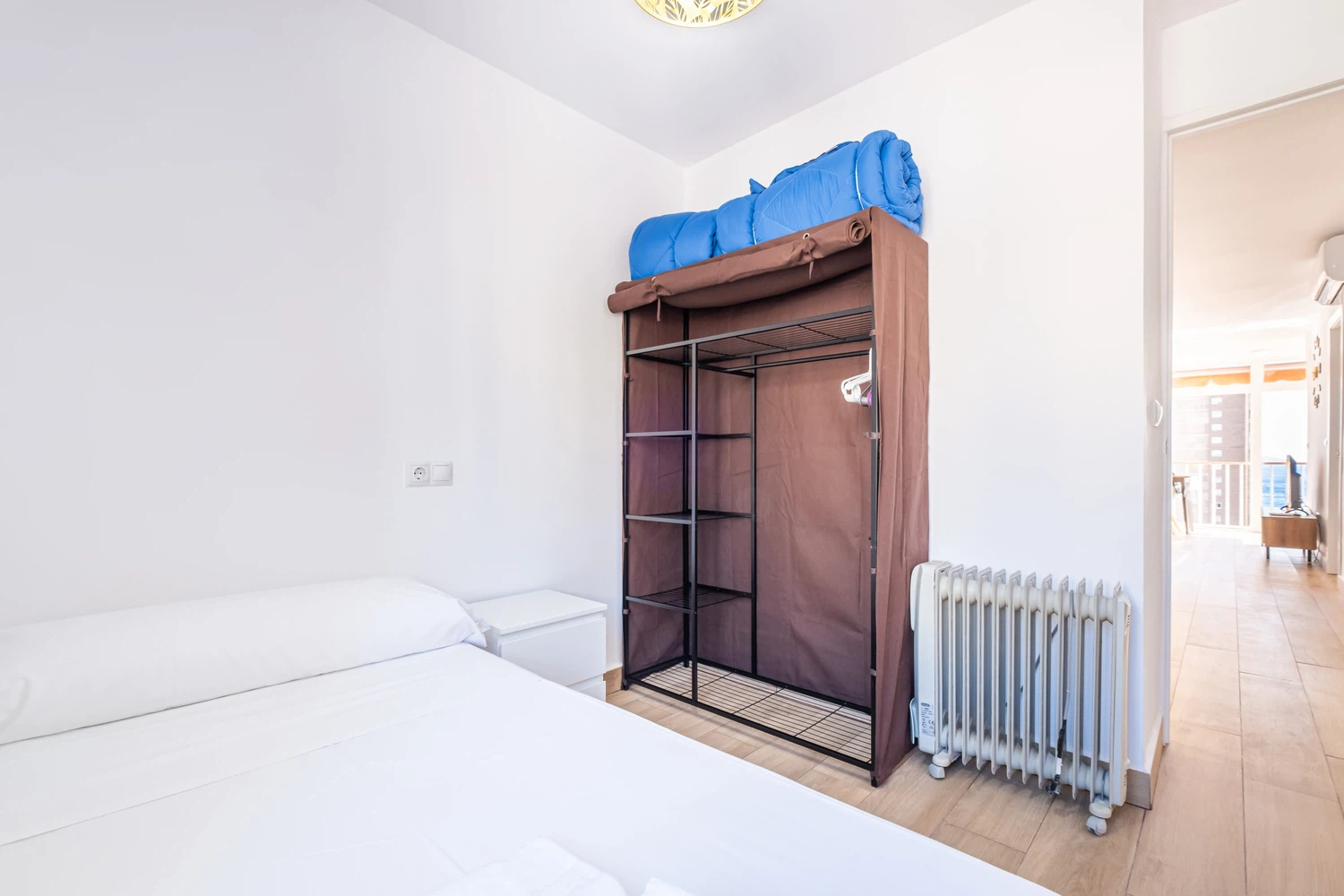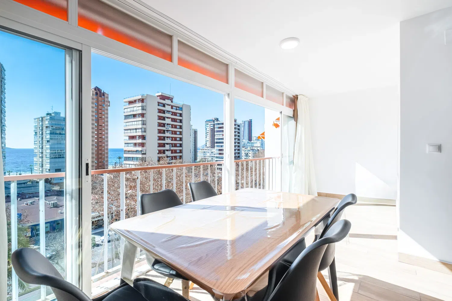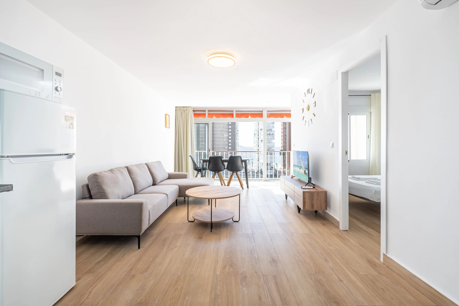 Apartamento en segunda línea de playa Levante, Benidorm. Posee 3 dormitorios y dos cuartos de baño con ducha (principal en suite) y capacidad para 5 personas.