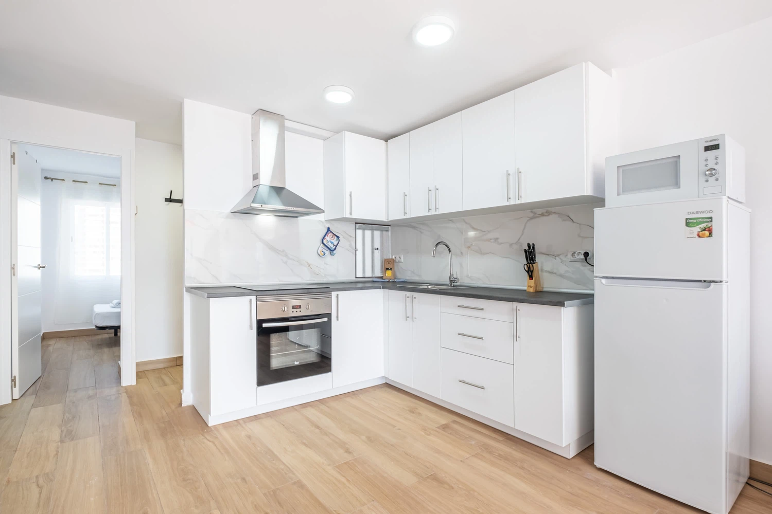 La cocina americana de inducción, está equipada con nevera, microondas, horno, congelador, vajilla/cubertería, utensilios/cocina, cafetera, tostadora, hervidor de agua y exprimidor