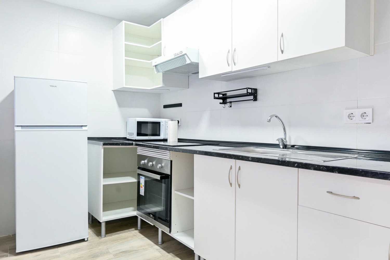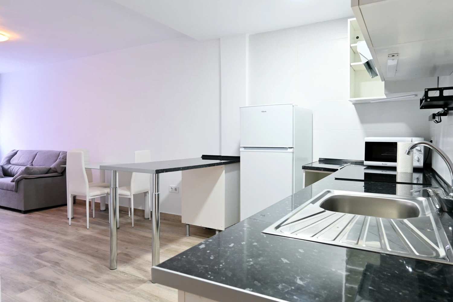 La cocina americana, de inducción, está equipada con nevera, microondas, horno, vajilla/cubertería, utensilios/cocina, cafetera y tostadora.