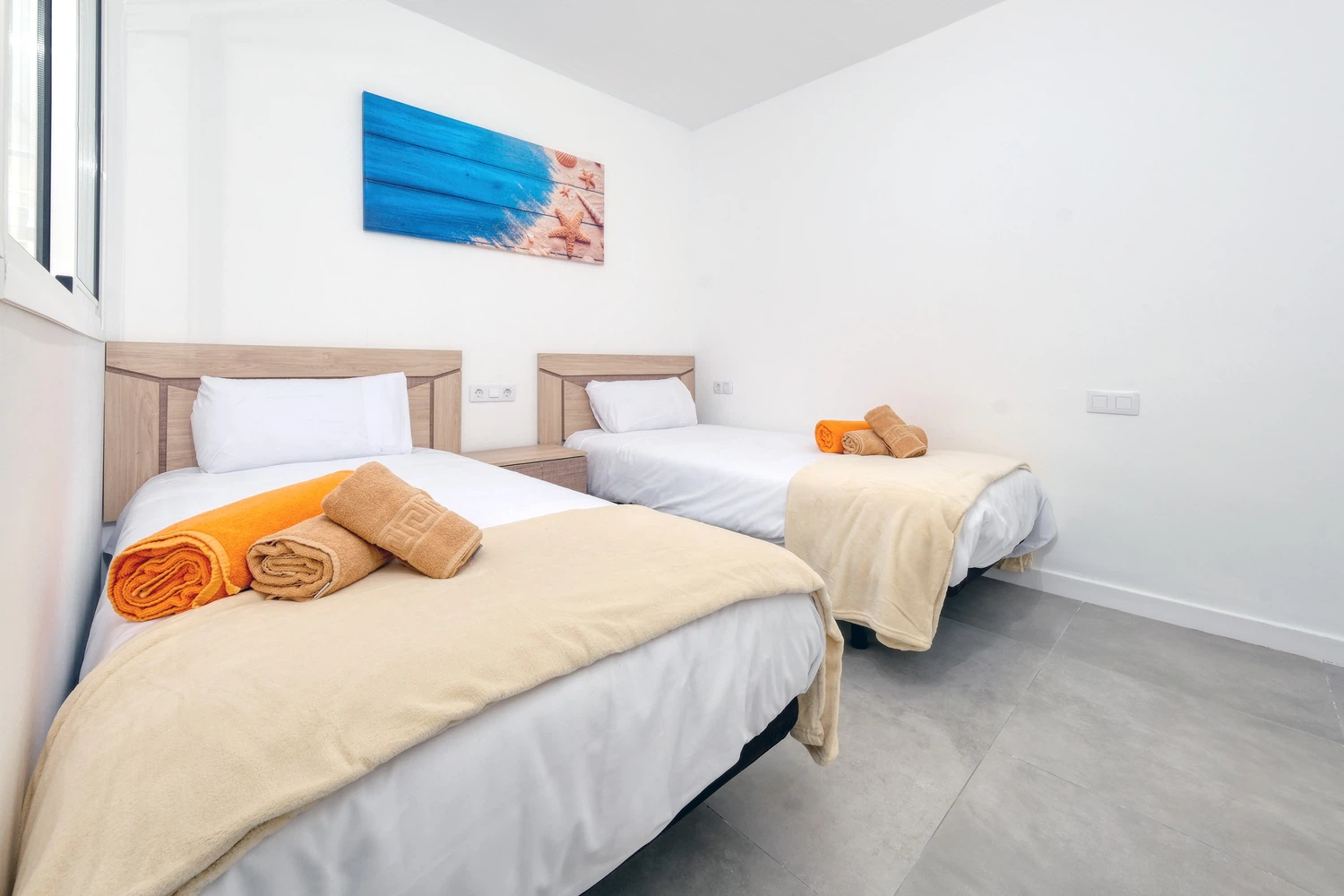 Las dos habitaciones están cuidadosamente decoradas para garantizar el máximo confort. Una de ellas cuenta con una espaciosa cama doble, un elegante cabecero de madera e iluminación LED ambiental, ideal para relajarse tras un día explorando la isla. La segunda habitación dispone de dos camas individuales, perfectas para familias o amigos que viajan juntos.