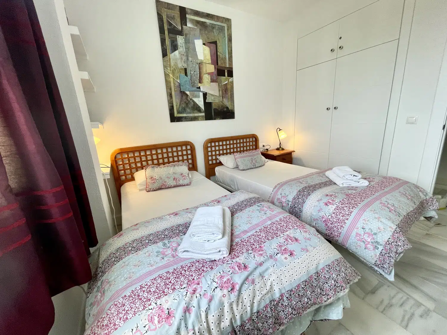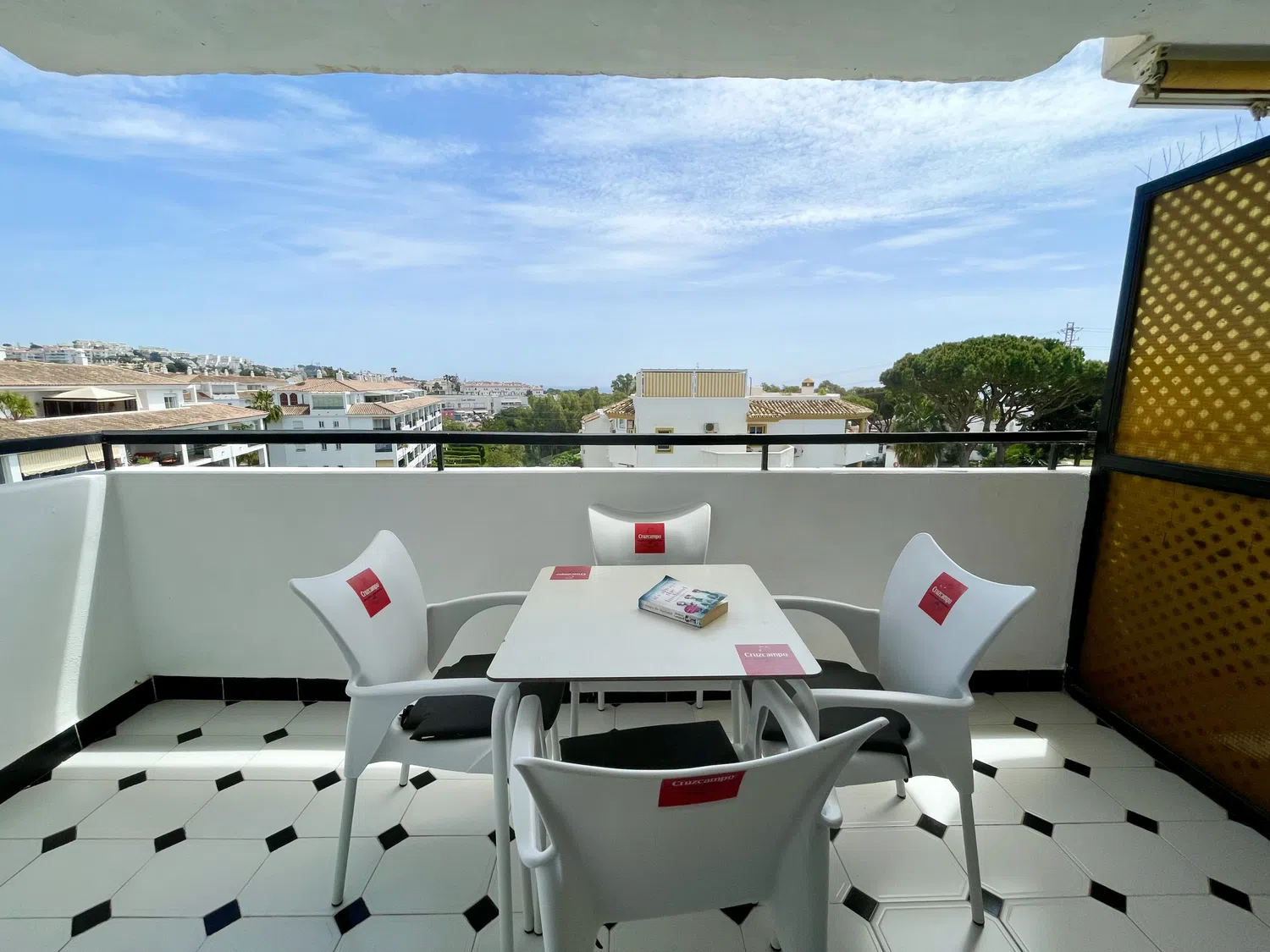 Situado en el centro de Calahonda, Mijas Costa, este apartamento ubicado en una tercera planta (con ascensor), tiene tres dormitorios, dos baños, cocina, salón/comedor espacioso con TV (canales internacionales) y una puerta corredera por la que se accede a una terraza con vistas parciales al mar. El dormitorio principal tiene una cama de matrimonio y cuarto de baño en suite. Hay un segundo y tercer dormitorio con dos camas individuales cada uno. Dispone de cocina equipada con lavadero separado donde se dispone una lavadora/secadora.