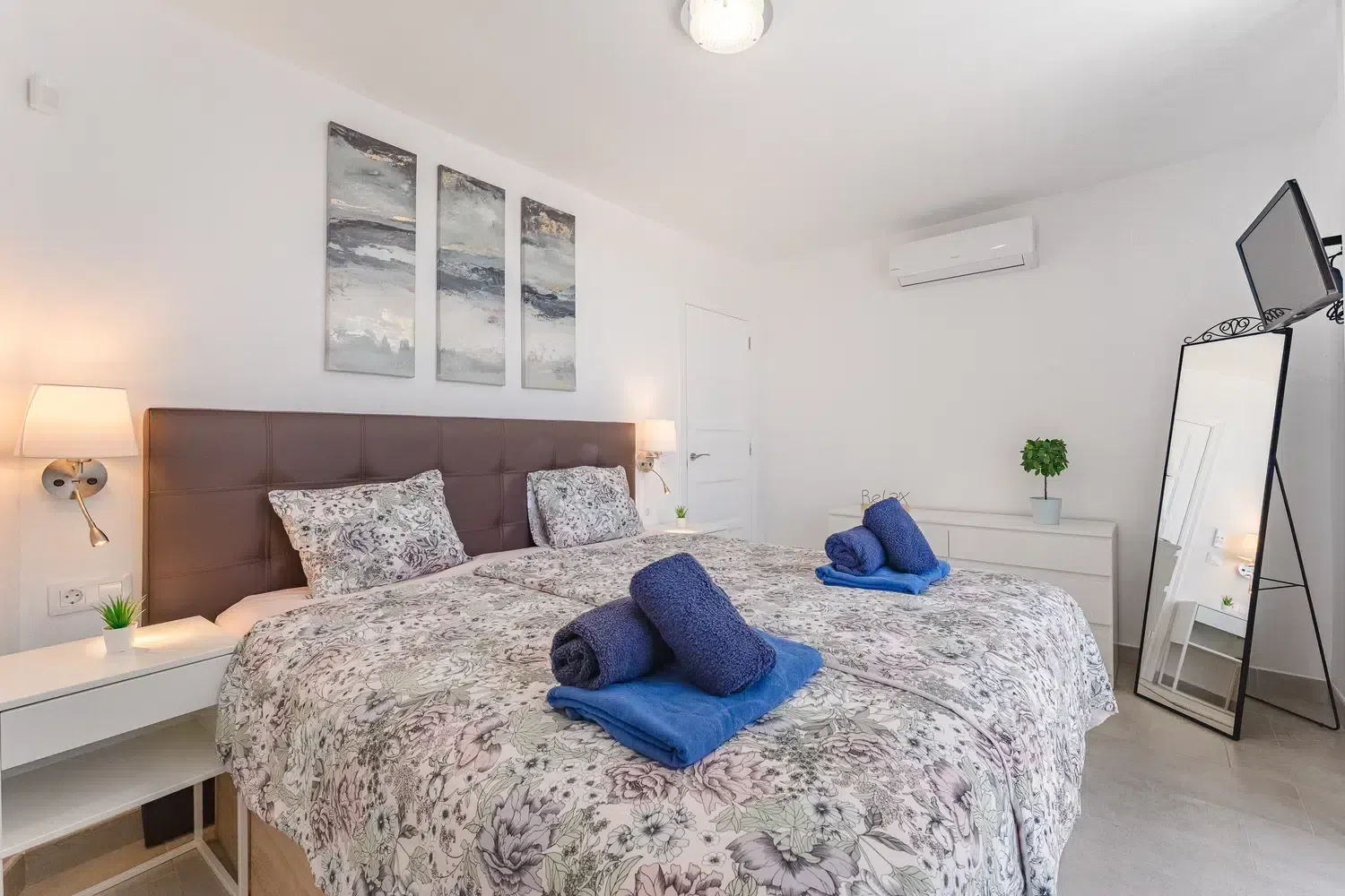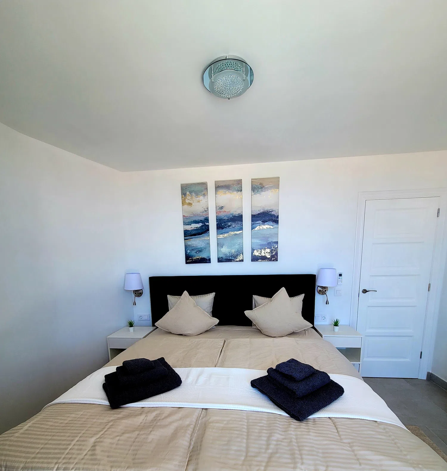 Suite ático de lujo en una ubicación privilegiada en la torre del popular complejo Parque Santiago 1, distribuida en dos niveles. El apartamento ha sido completamente rediseñado con materiales de alta calidad y lujosos, con 3 dormitorios (cada uno con 1 televisor y 1 aire acondicionado), 2 baños, 1 salón con cocina americana totalmente equipada, Internet de alta velocidad en ambos niveles y una terraza enorme con una de las vistas más bonitas del sur de la isla. Piscina comunitaria climatizada en el complejo.