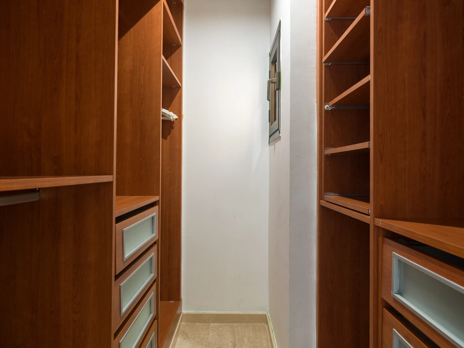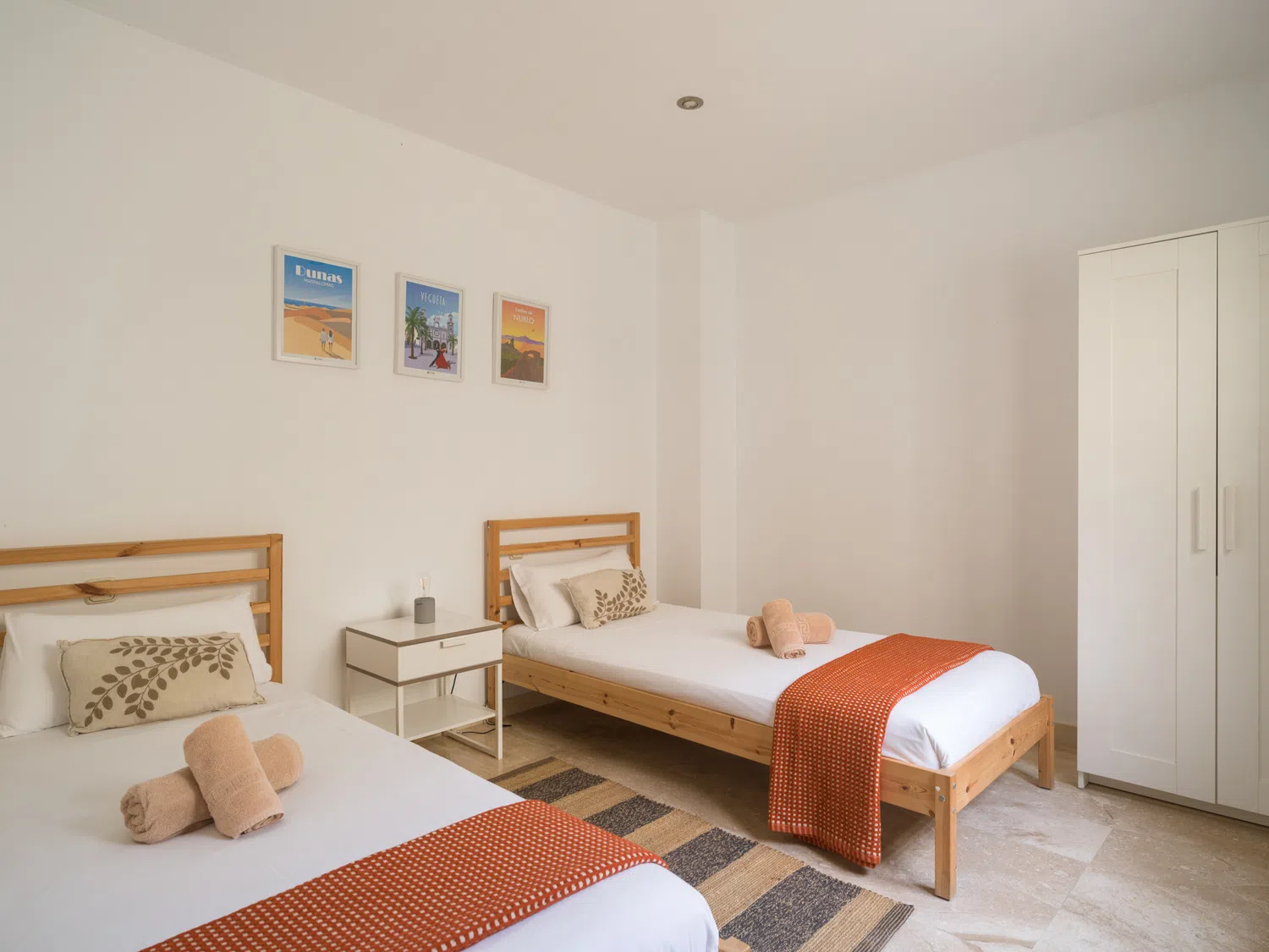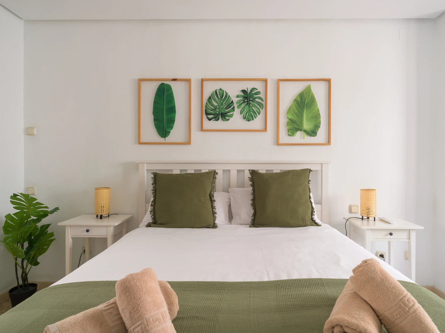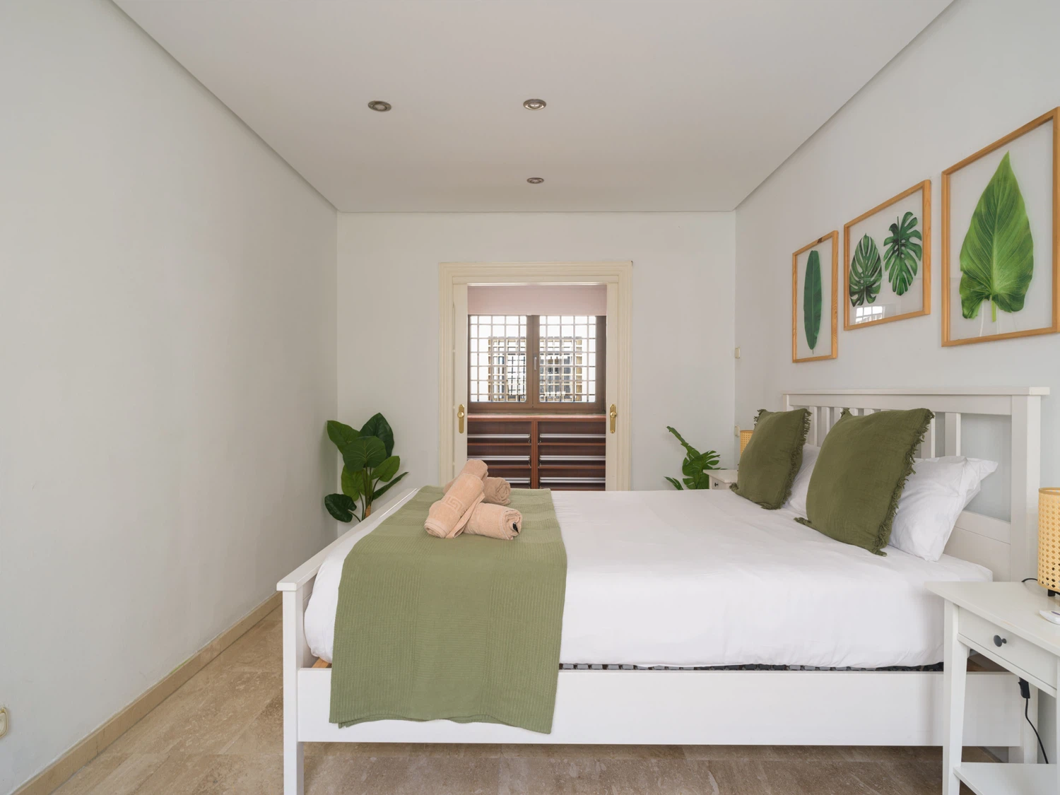 La vivienda cuenta con dos dormitorios con aire acondicionado, ambos presentados con un estilo moderno y cómodo. Las habitaciones están amuebladas una suite con cama doble (1.60 metros de ancho), vestidor y baño y el otro con dos camas individuales (0.9 metros de ancho cada una) con ropa de cama de calidad, asegurando una noche de descanso reparador a los huéspedes. Además, hay armarios empotrados que brindan amplio espacio de almacenamiento.