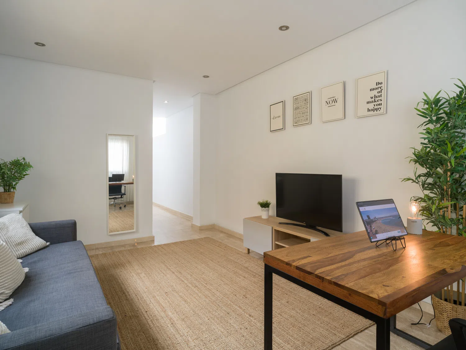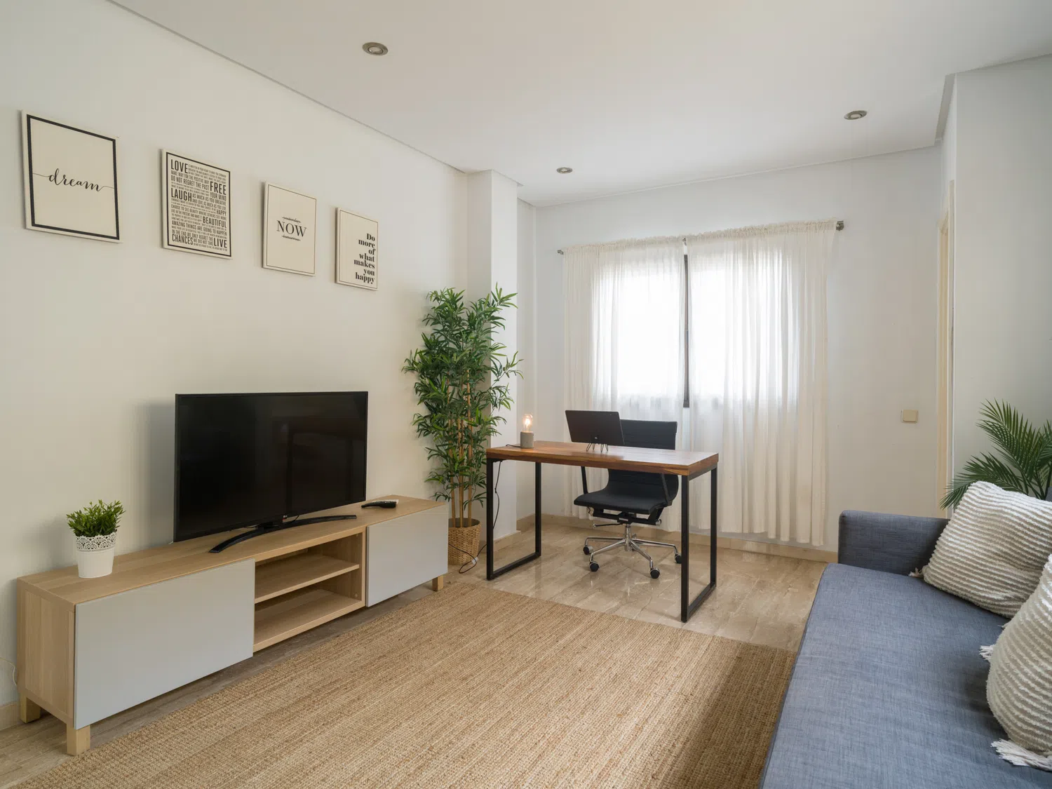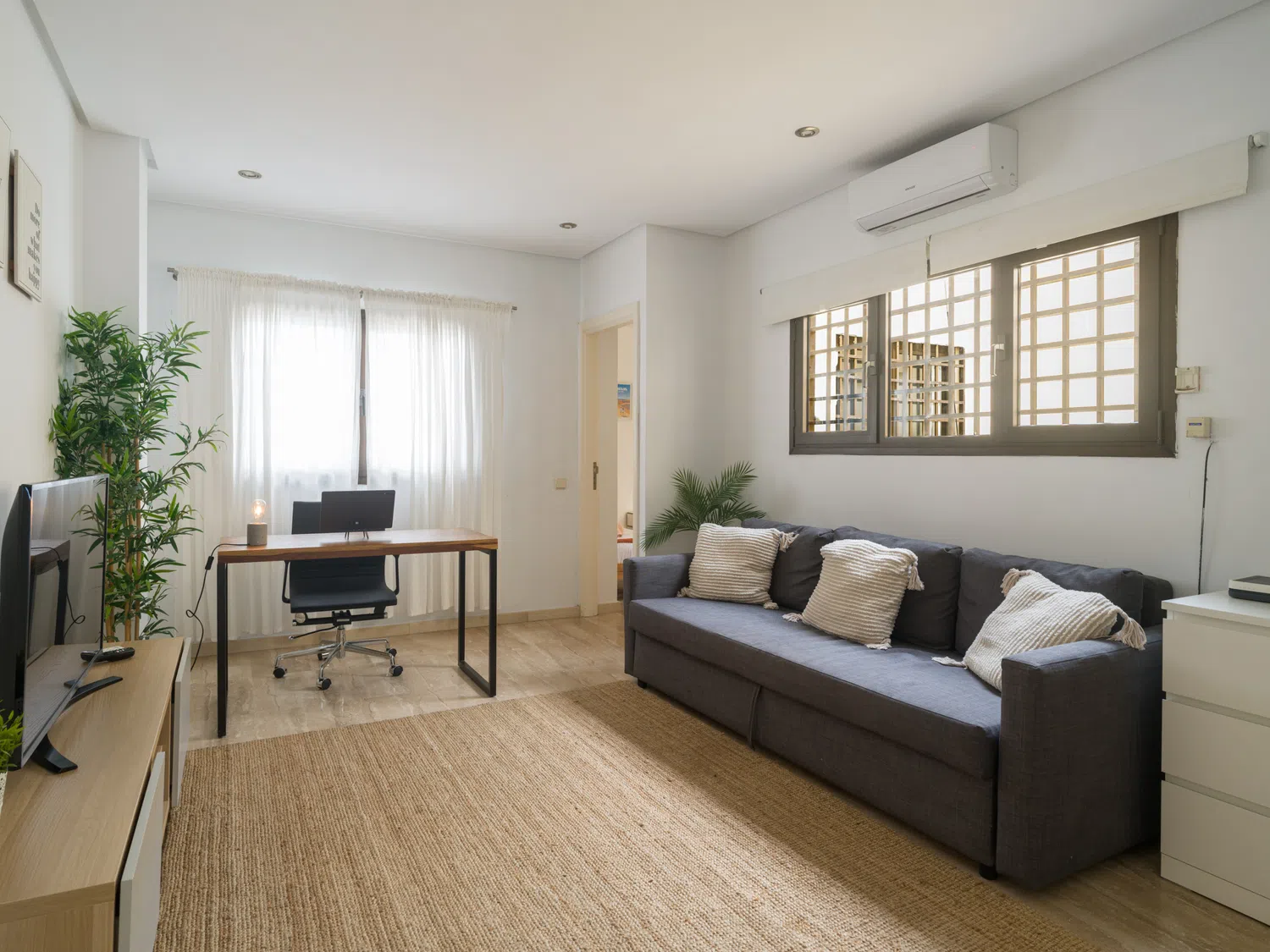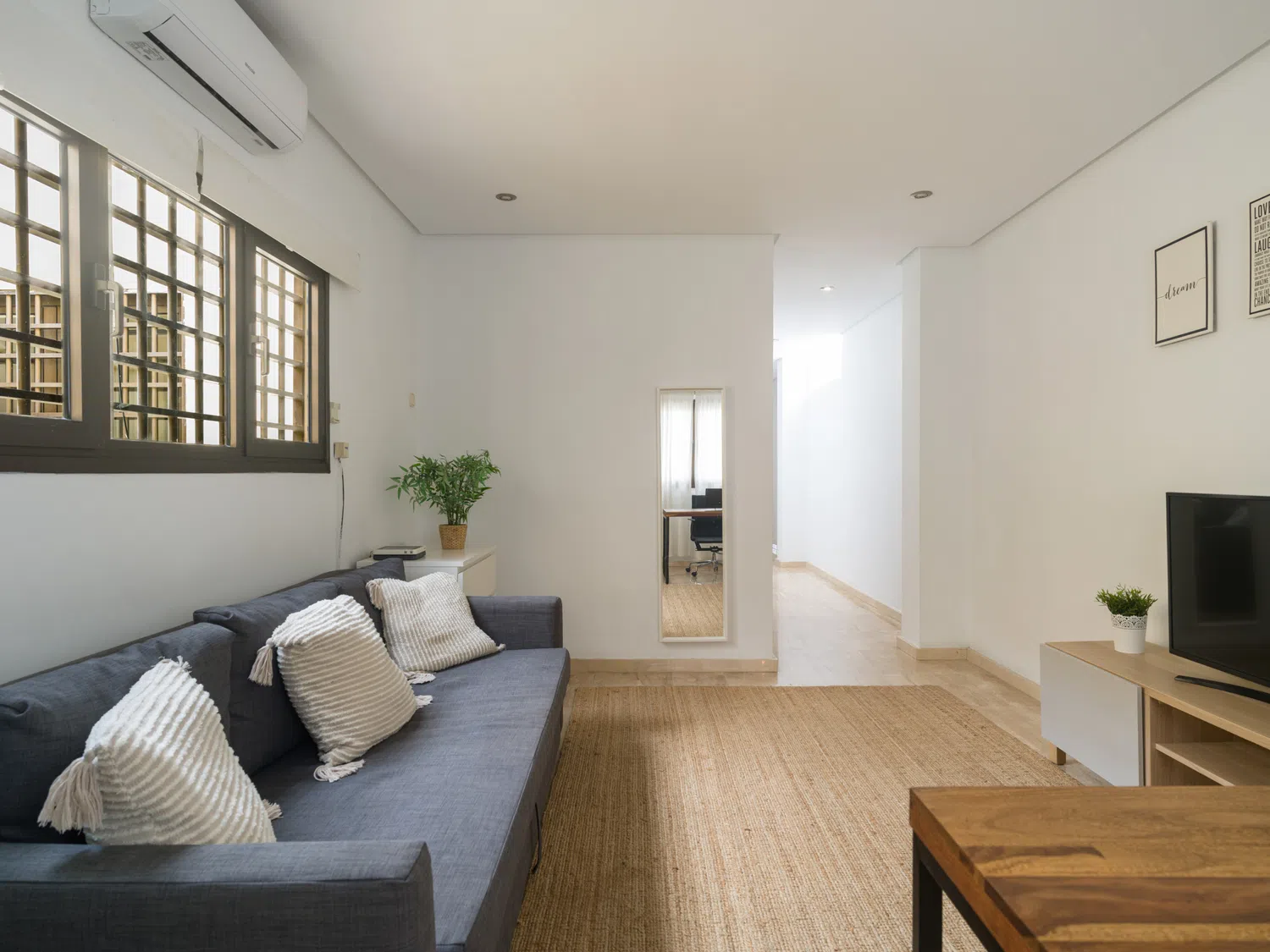 Entre ambos dormitorios hay un salón con un amplio y cómodo sofá cama de dos plazas (1.50 metros) y con Smart tv, que se puede utilizar para como un tercer dormitorio.