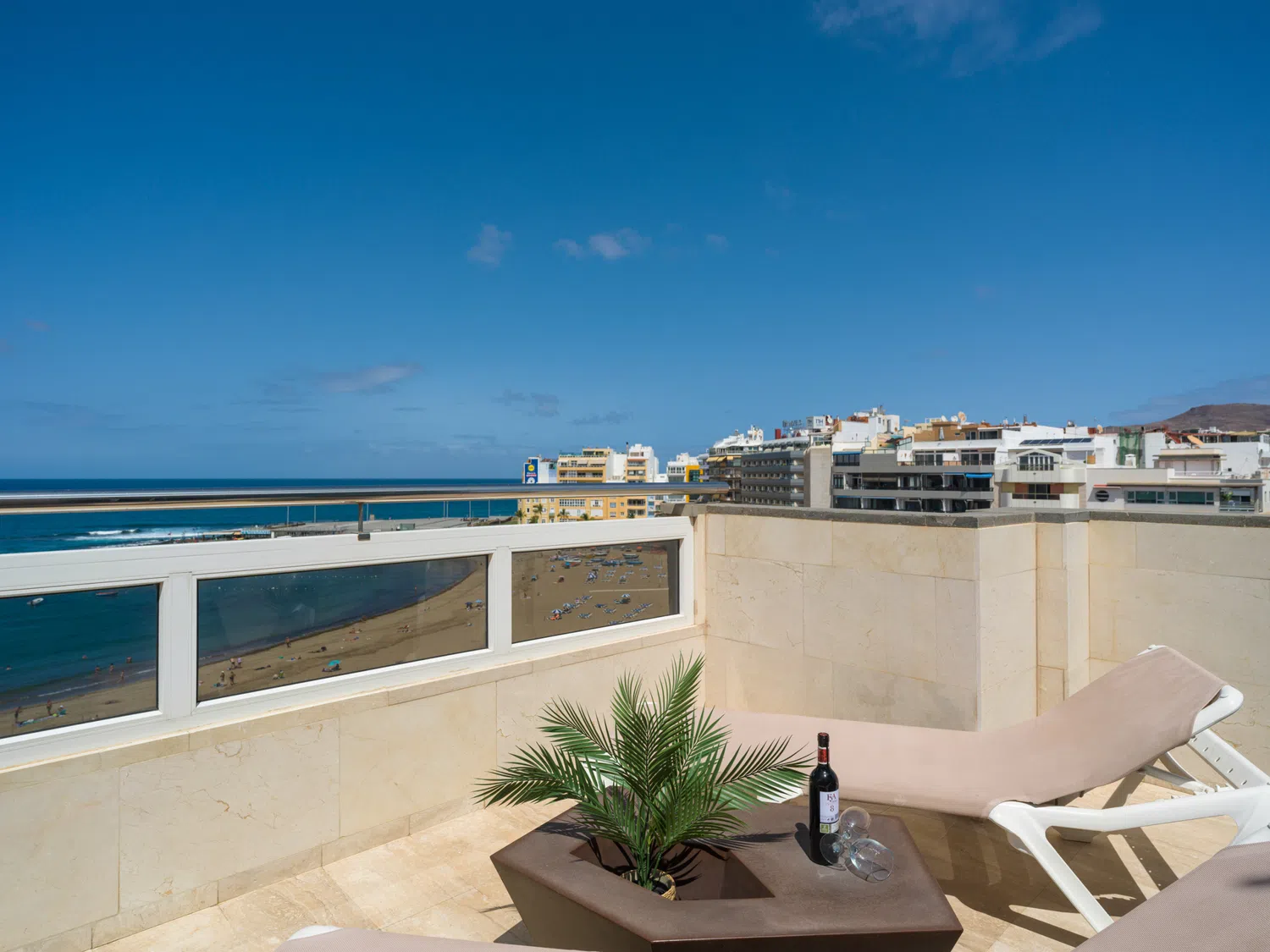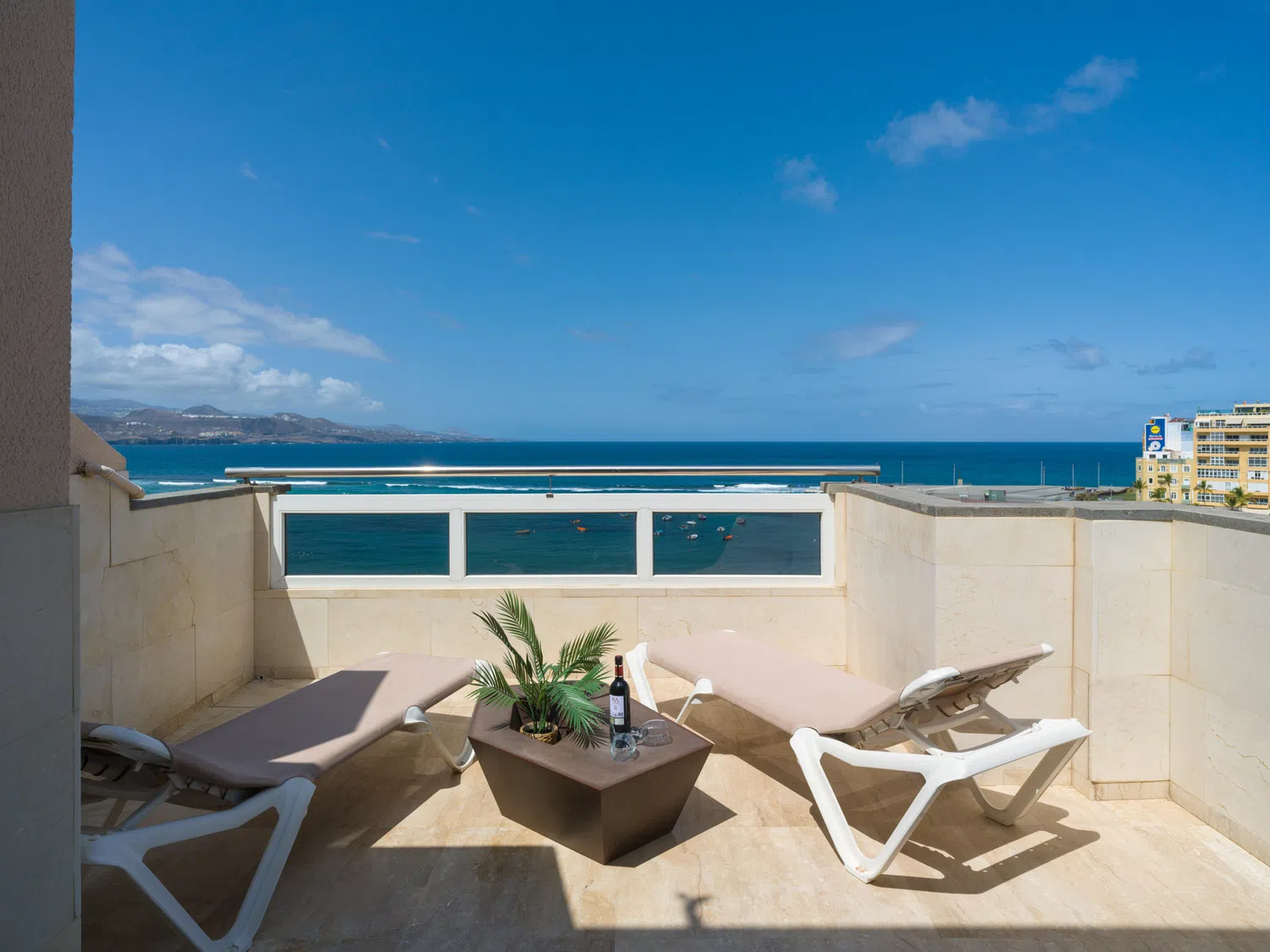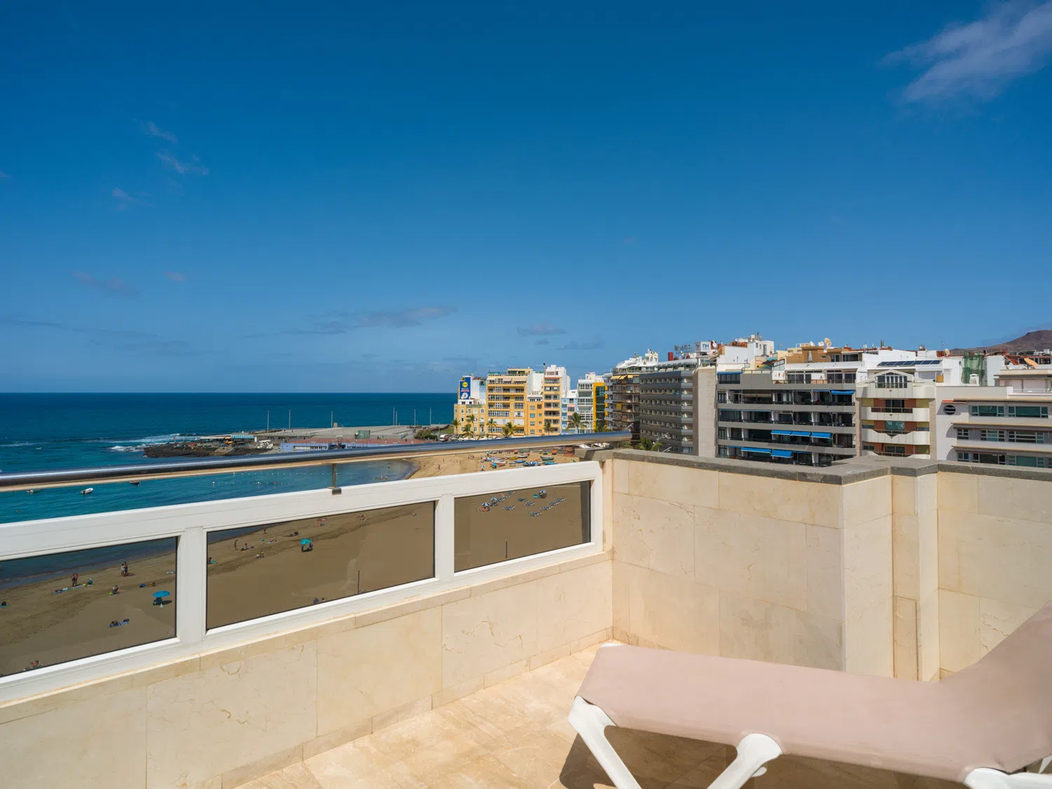 Esta estupenda vivienda vacacional con 179 metros cuadrados de superficie, con una terraza de 15 metros cuadrados sobre la Playa de Las Canteras, de estilo moderno y elegante es ideal para aquellos que buscan una estancia cómoda, relajante al sol y frente al mar. Está situada en el mismo paseo de las Canteras, zona peatonal, a cinco metros de la playa en la última planta planta del edificio.
