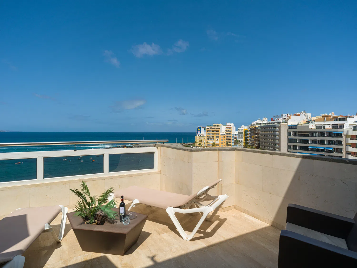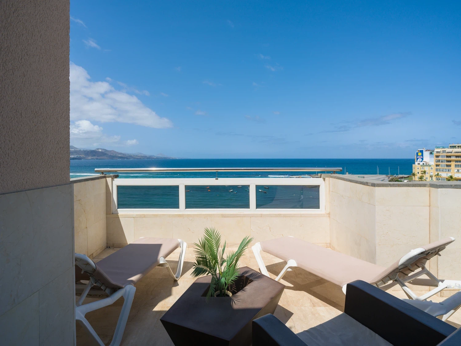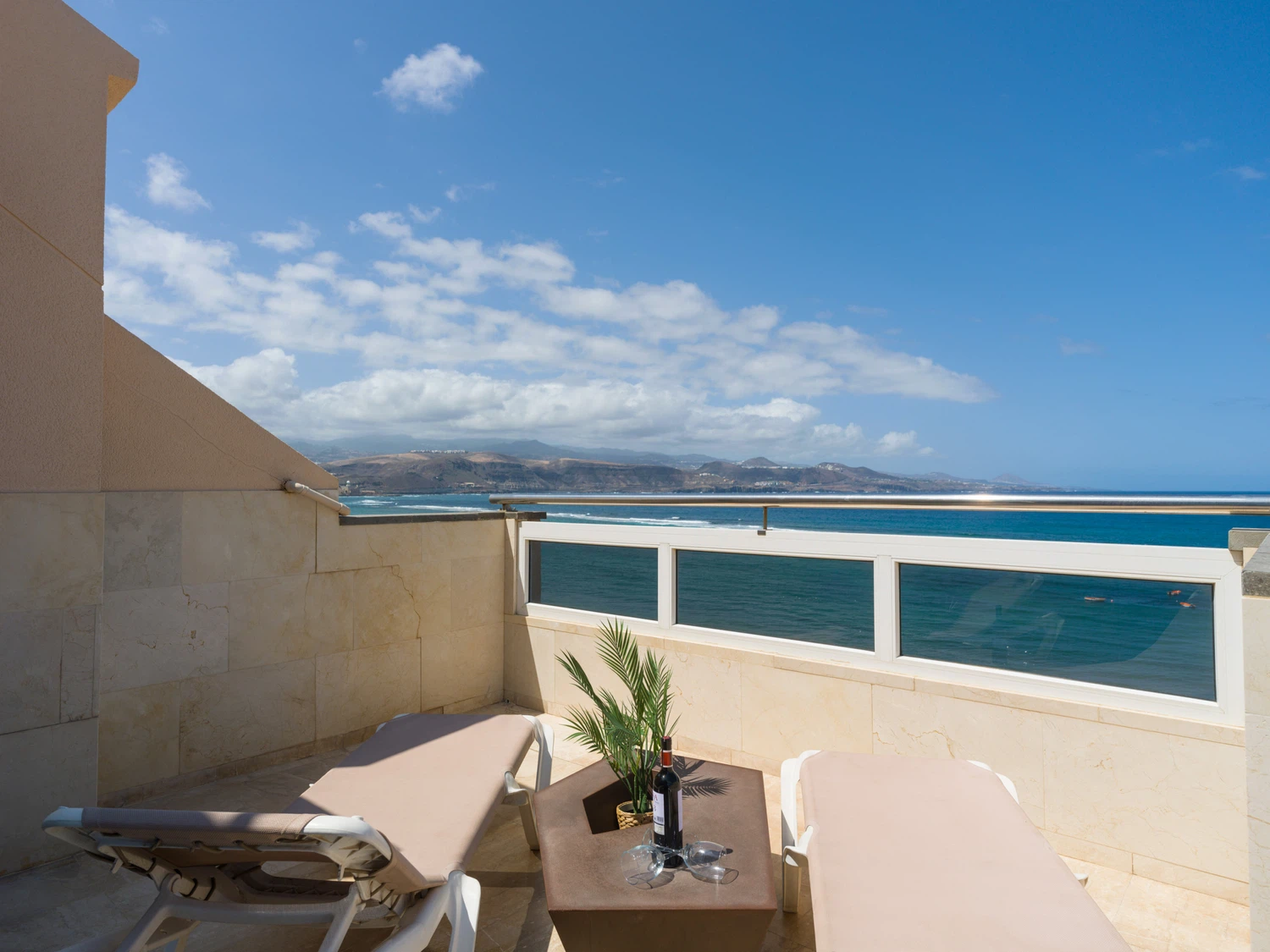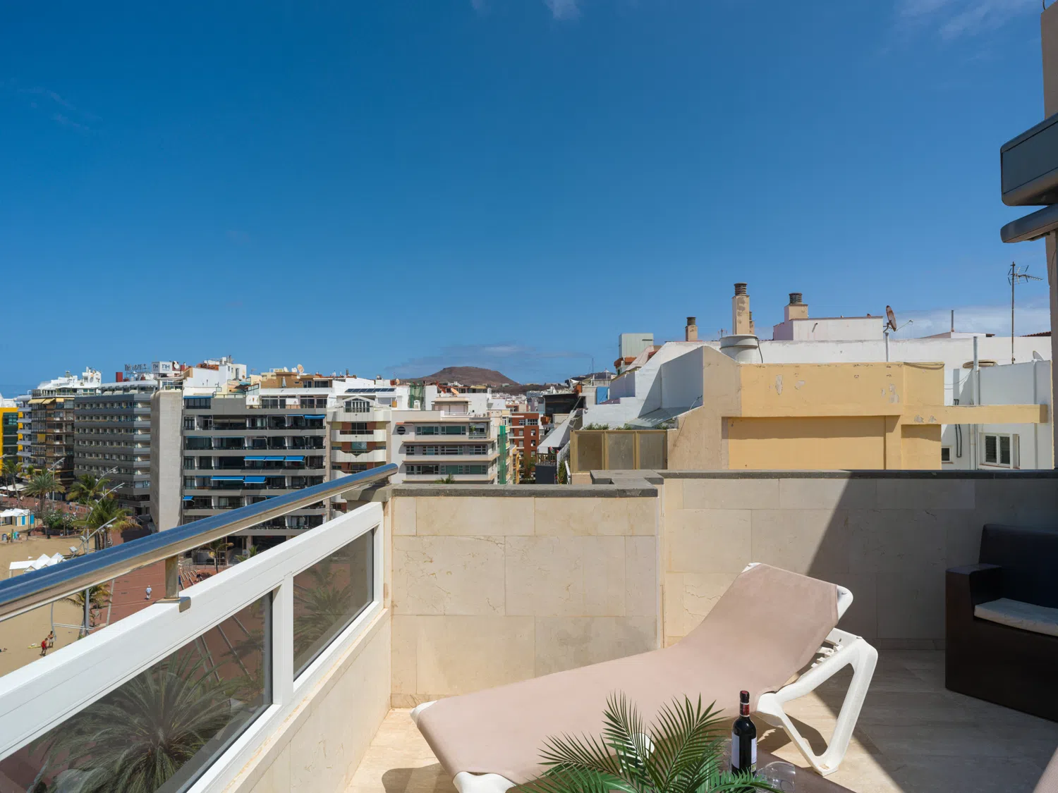 Esta estupenda vivienda vacacional con 179 metros cuadrados de superficie, con una terraza de 15 metros cuadrados sobre la Playa de Las Canteras, de estilo moderno y elegante es ideal para aquellos que buscan una estancia cómoda, relajante al sol y frente al mar. Está situada en el mismo paseo de las Canteras, zona peatonal, a cinco metros de la playa en la última planta planta del edificio.
