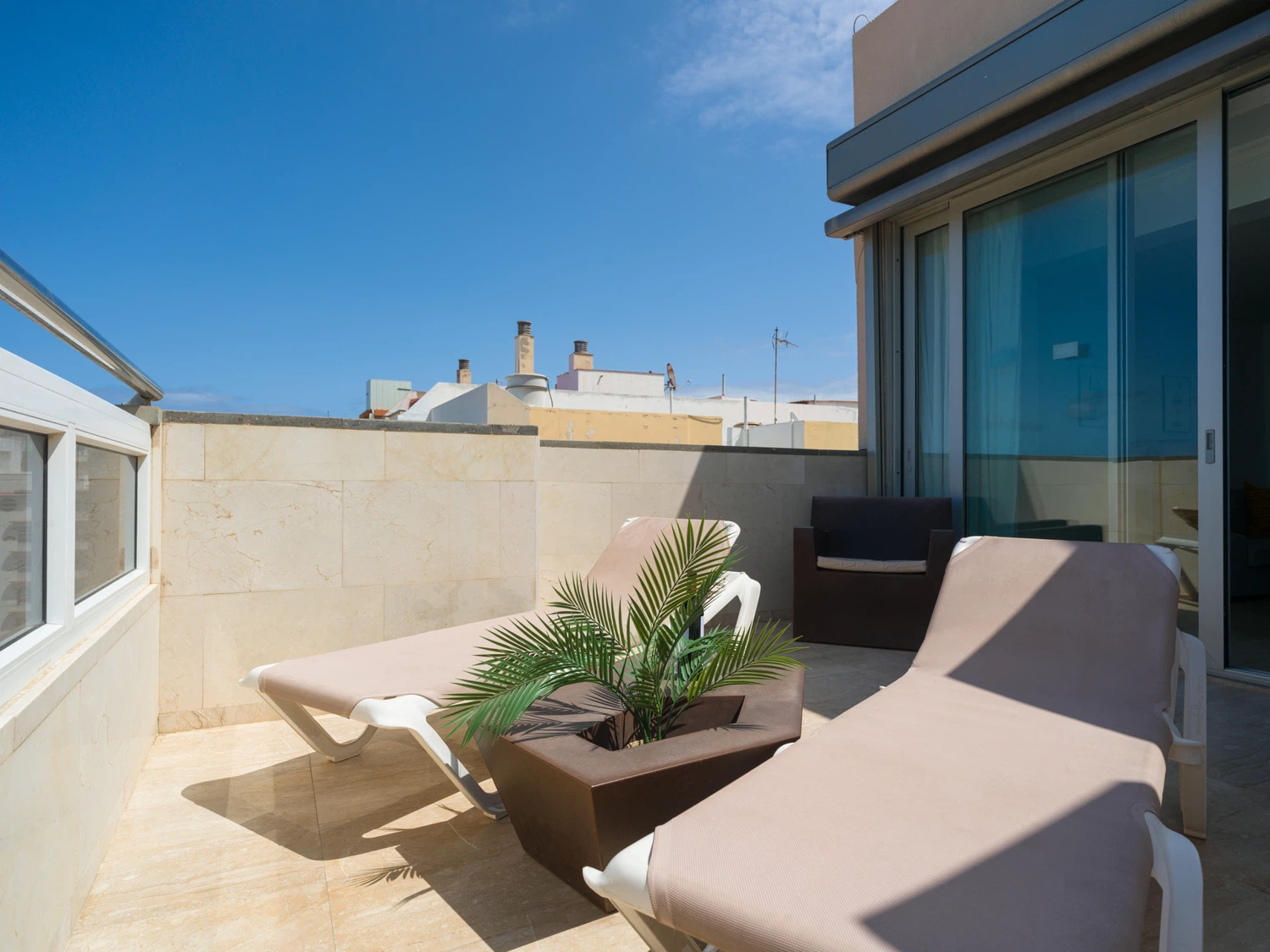 Una de las características destacadas de la vivienda vacacional es su terraza privada de 20 metros cuadrados, con muebles de exterior, hamacas incluidas, donde los huéspedes pueden relajarse, tumbarse al sol y disfrutar de la maravillosa vista al mar, de la playa, de la puesta del sol y de la isla de Tenerife, con su majestuoso volcán del Teide, montaña más alta de España.
