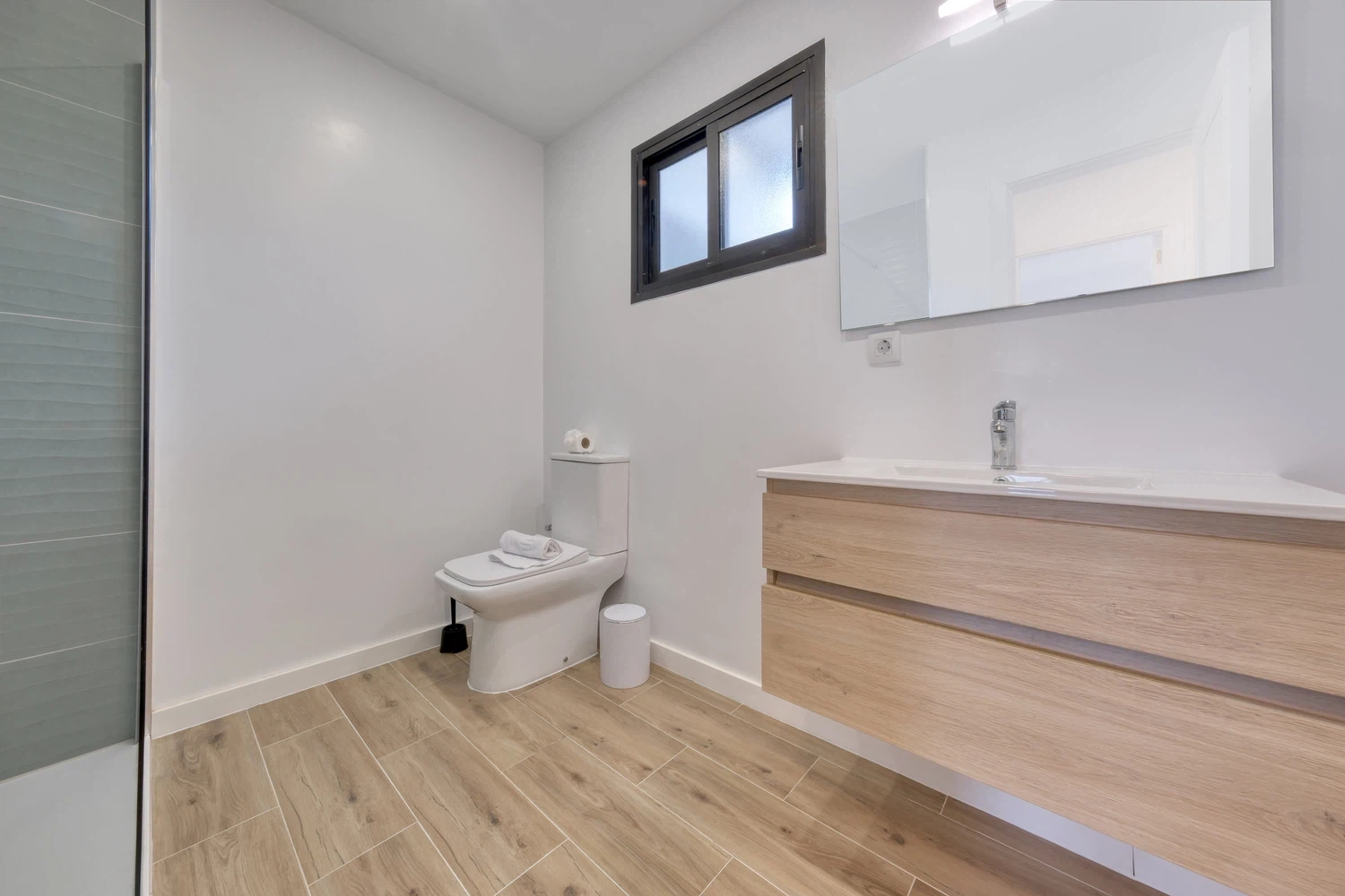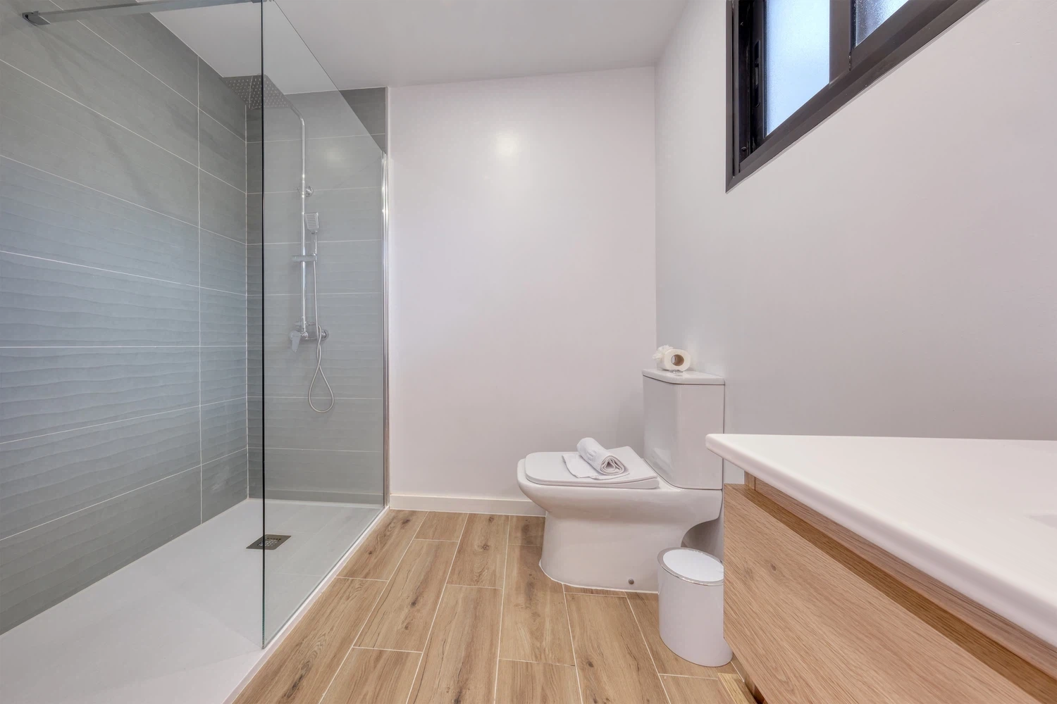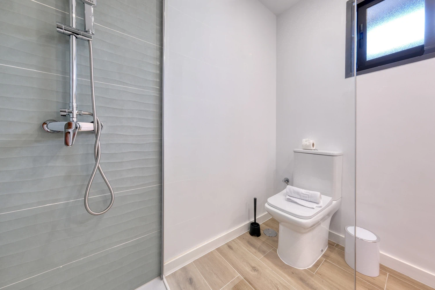 El baño dispone de ducha, secador de pelo y gel de ducha, garantizando funcionalidad y confort durante tu estancia.