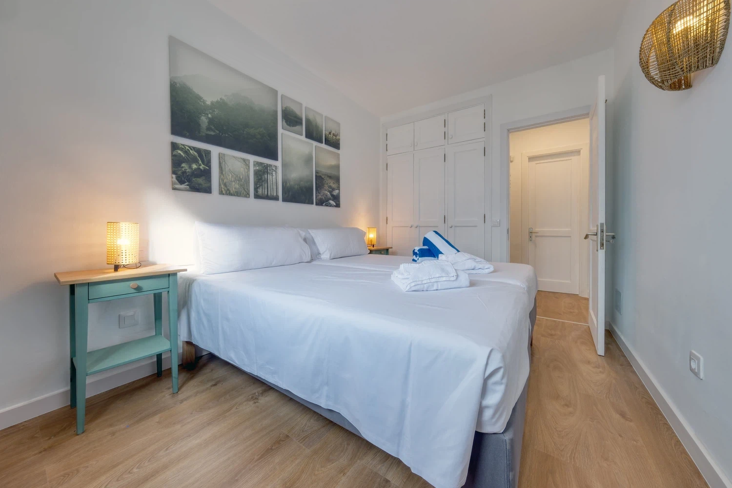 El dormitorio cuenta con dos cómodas camas individuales, mesitas de noche y un armario empotrado, proporcionando un ambiente tranquilo y acogedor para el descanso.