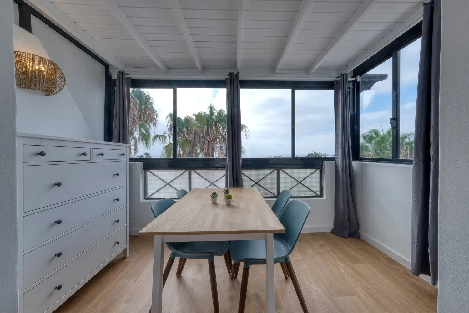 Uno de los grandes atractivos de esta vivienda es su terraza privada cerrada, con amplios ventanales desde donde se puede disfrutar de unas bonitas vistas al mar. La terraza está completamente equipada con mesa de comedor, sillas y una zona de descanso: el lugar perfecto para relajarse, compartir una comida o simplemente disfrutar de la luz y la tranquilidad de Lanzarote en un ambiente protegido y confortable.