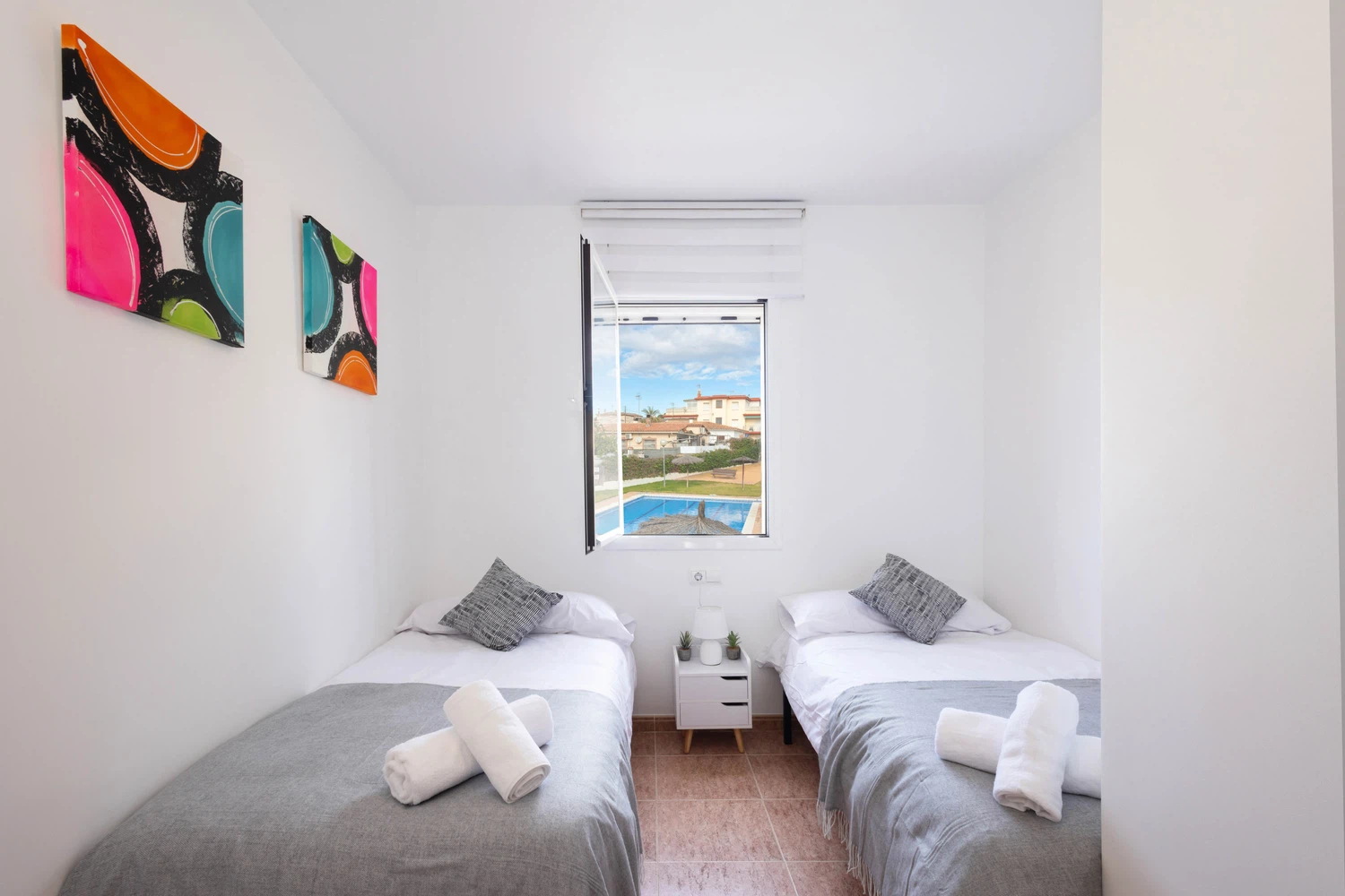 Encantadora casa de alquiler vacacional en Creixell, ideal para una escapada junto al mar. A solo 10 minutos a pie de la playa, ofrece tres amplias terrazas, barbacoa y acceso a una piscina comunitaria, perfecta para relajarse y disfrutar del buen clima. Ubicada en una zona tranquila, es el lugar ideal para desconectar y compartir momentos inolvidables en familia o con amigos. ¡Vive la esencia del Mediterráneo en esta acogedora casa!