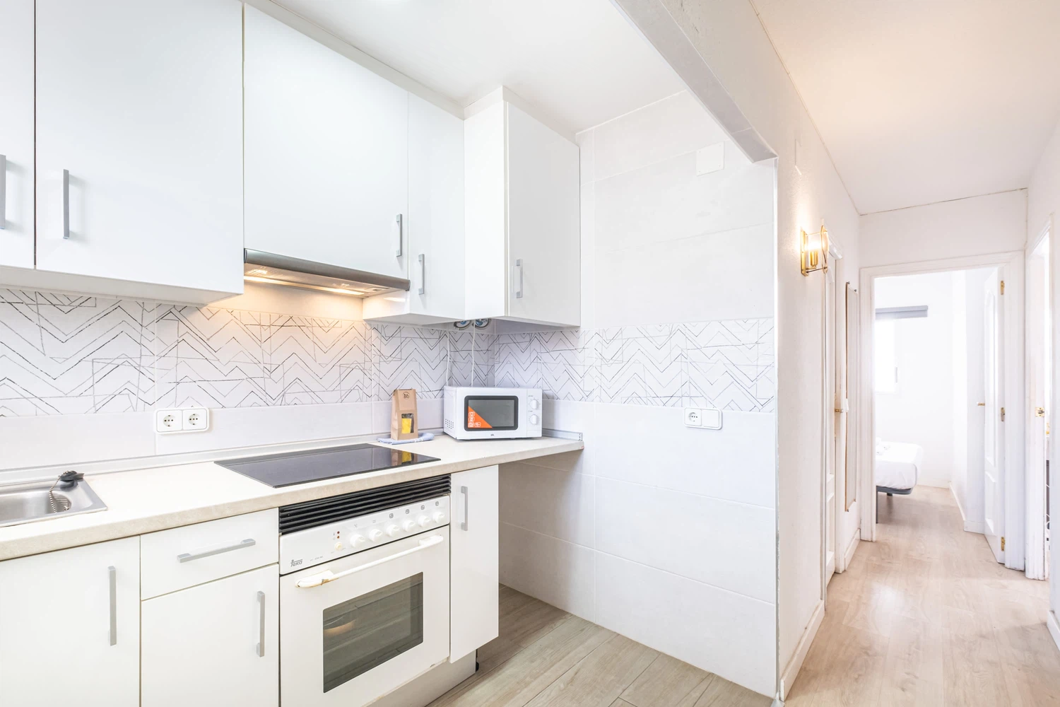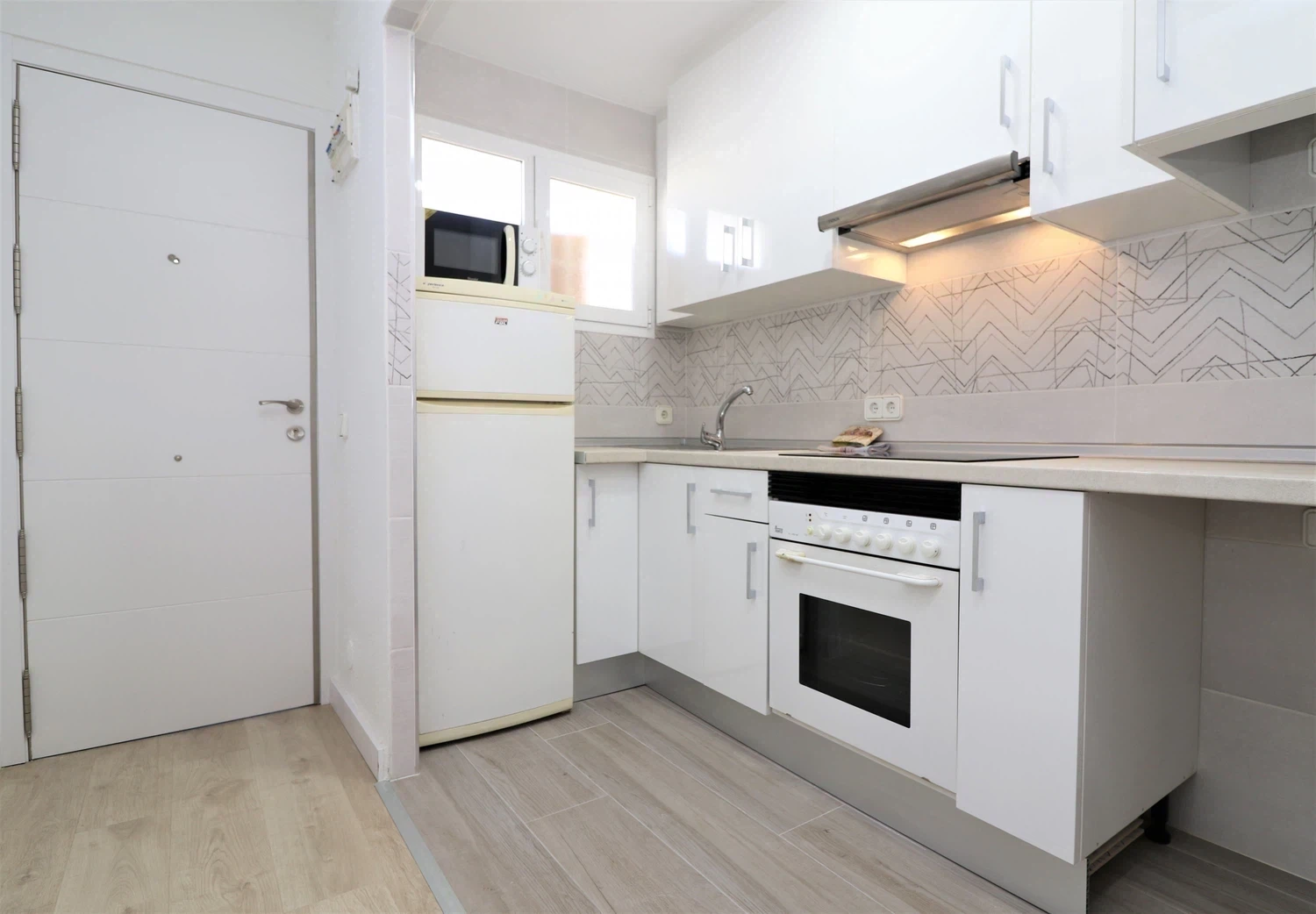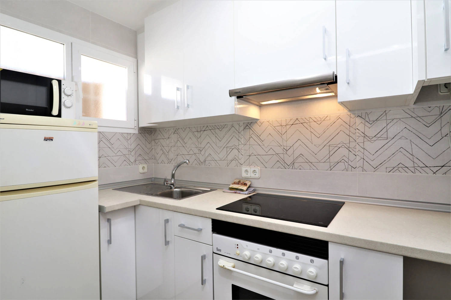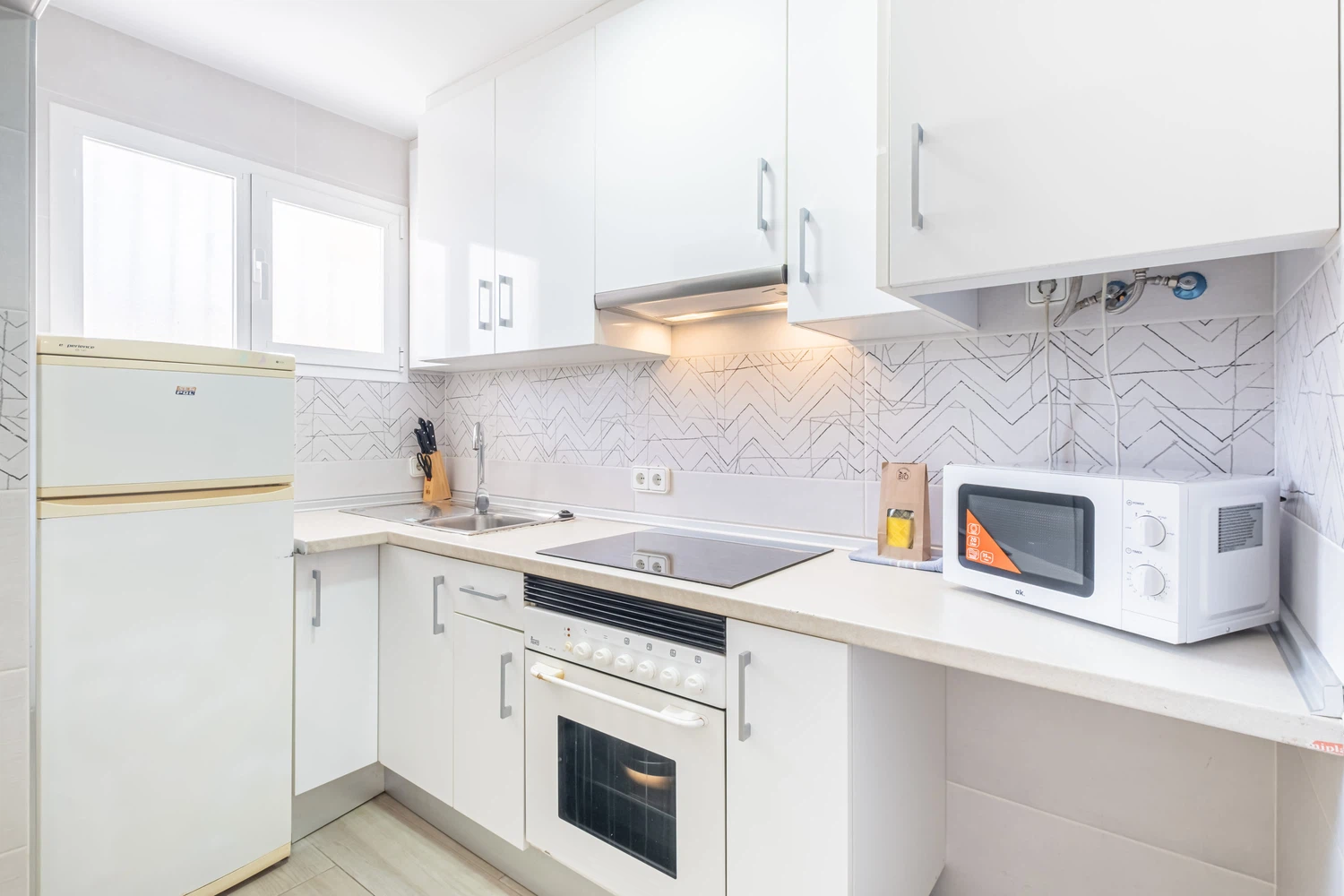 La cocina independiente de vitrocerámica, está equipada con nevera, lavadora, microondas, horno, congelador, vajilla/cubertería, utensilios/cocina, cafetera, tostadora y hervidor de agua.