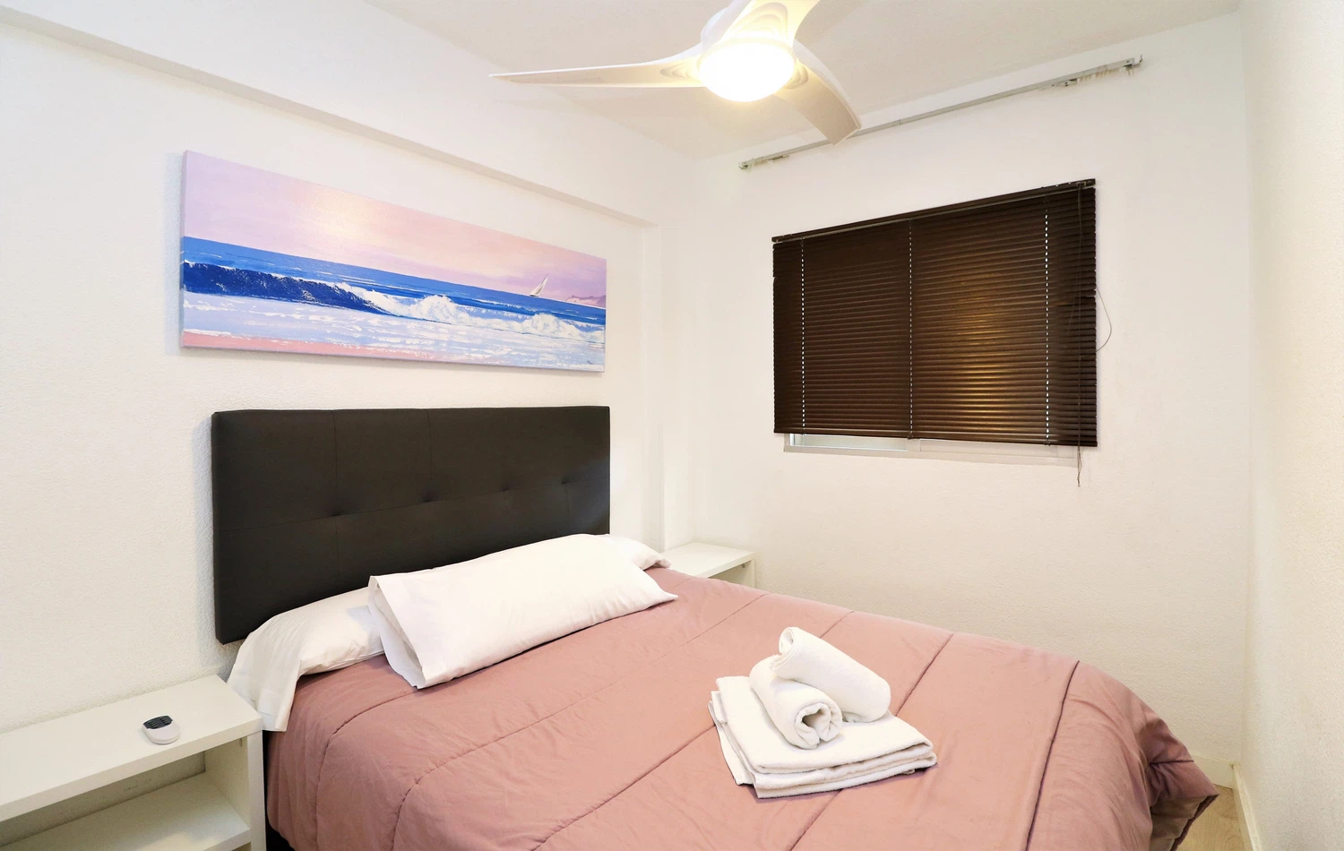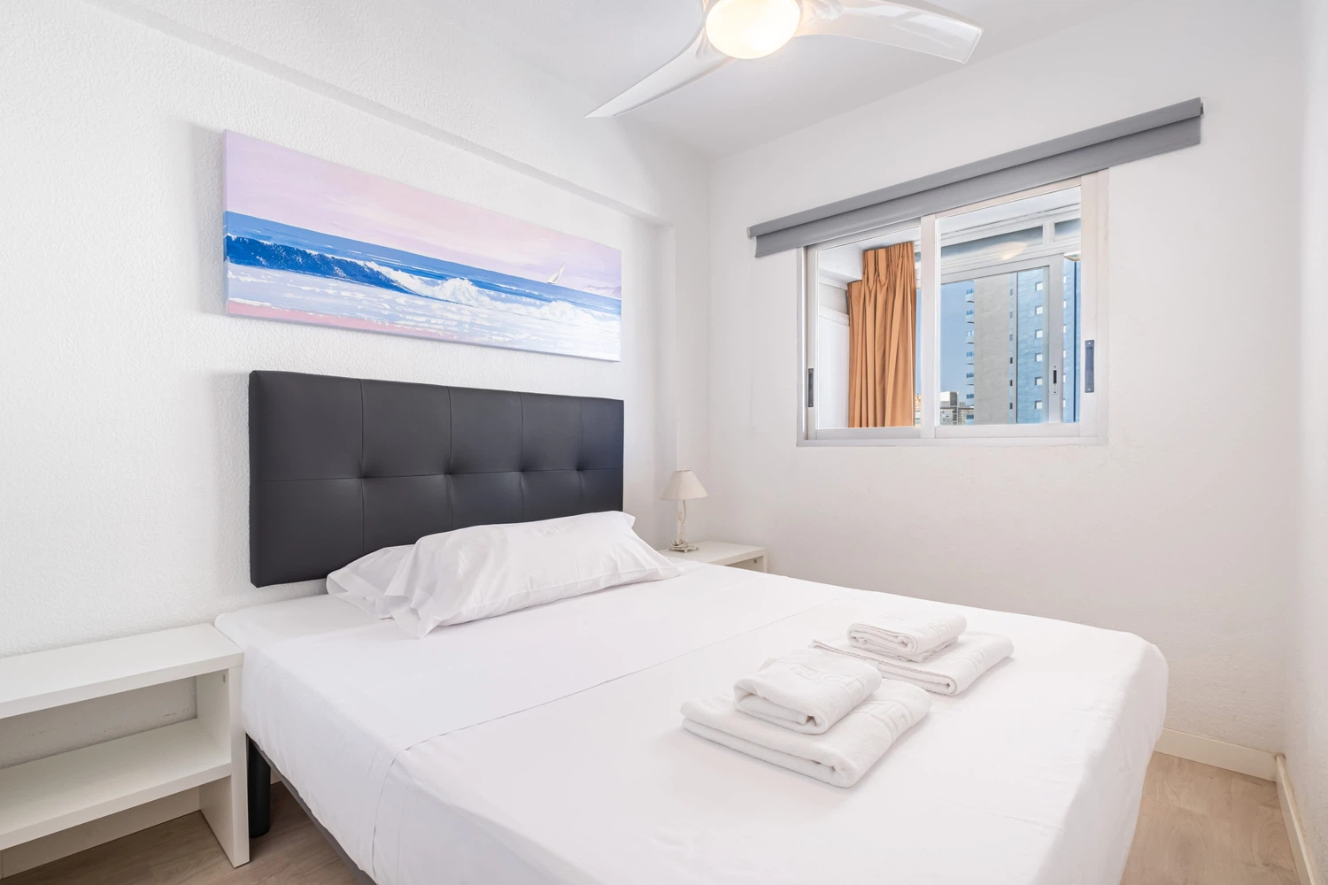 Apartamento a 300 metros de la playa de Levante, Benidorm, y a 300 metros del casco antiguo. Posee 2 dormitorios, 1 cuarto de baño con ducha y capacidad para 5 personas.