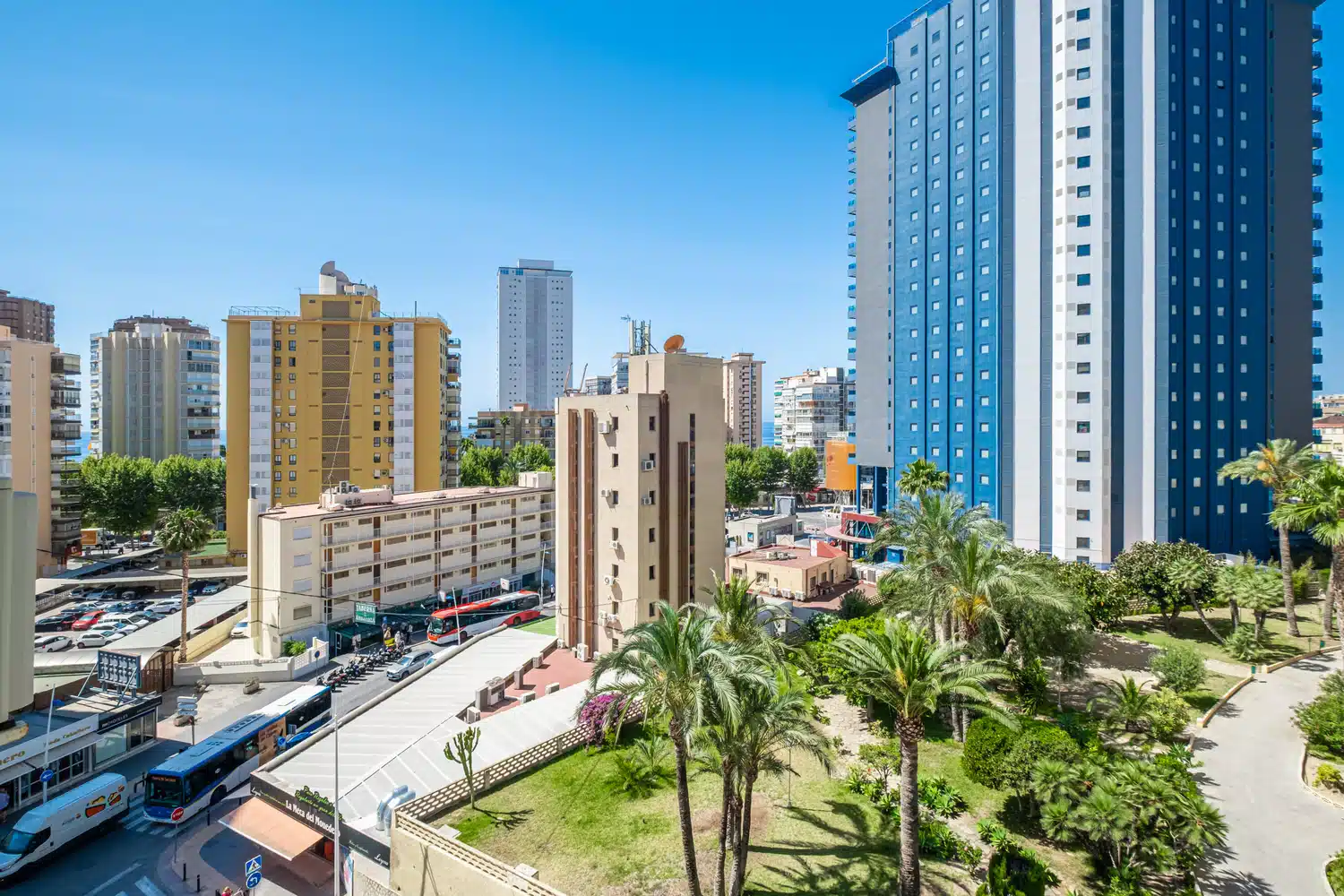 Se encuentra a 300 m de la playa de arena "Playa de Levante", 400 m de la ciudad "Casco antiguo / Old Town", 800 m de la playa de arena "Playa de Poniente", 25 m del restaurante, 50 m de la estación de autobuses, 300 m del supermercado "Consum", 400 m del supermercado "Mercadona", 850 m de la playa de arena "Playa del Mal Pas", 2 km a las termas "Balneario Benicaldea", 2 km de la estación de tren "Tram Benidorm", 2 km de la estación de autobuses "La Estación Benidorm", 2 km de la pista de esquí "Cable ski acuático", 3 km del parque acuático "Aqualandia", 3 km de la playa de roca "Cala del Tio Ximo", 3 km del campo de Golf "Las Rejas Golf", 5 km del campo de Golf "Villaitana Golf", 6 km del parque acuático "Aqua Natura", 7 km del parque de atracciones "Terra Mítica", 12 km del parque natural "Serra Gelada", 15 km del lago "Pantano Guadalest", 15 km del parque natural "Puig Campana", 15 km del lago "Pantano La Vila", 20 km del rio "El Algar (Fuentes del Algar)", 45 km de la estación de tren "Renfe Terminal de Alicante", 55 km del aeropuerto "El Altet Alicante", 145 km del aeropuerto "Manises Valencia" y está ubicado en una zona bien comunicada y en el casco urbano.
