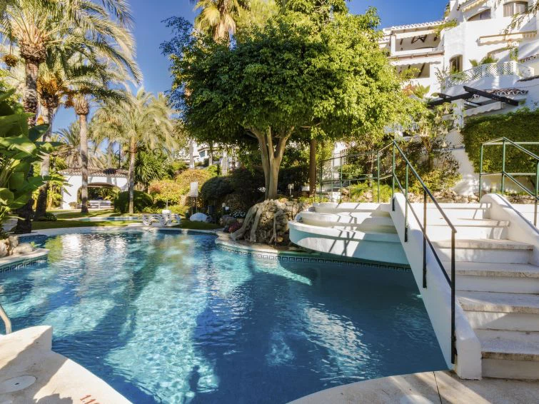 Casa de apartamentos "Golden Beach", bonito, agradable. A 13 km del centro de Marbella, a 23 km del centro de Puerto Banus, en el distrito Elviria, a 150 m del mar, a 150 m de la playa, orientación sureste. Comunitario: jardín en diferentes niveles grande con césped, 2 piscinas en forma de riñon (90 - 220 cm de profundidad, Disponible por temporada: 01.Jun. - 30.Sep. horario piscina: 08:00-21:00). Piscina para niños, ducha exterior, posibilidad de aparcamiento en la calle. Supermercado 800 m, centro comercial 900 m, restaurante, bar 300 m, panadería 900 m, café, bar al aire libre 300 m, parada autobús "Residencia Tiempo Libre" 1 km. Campo de golf (18 hoyos) 4 km. Residencia con vigilancia 24 h.