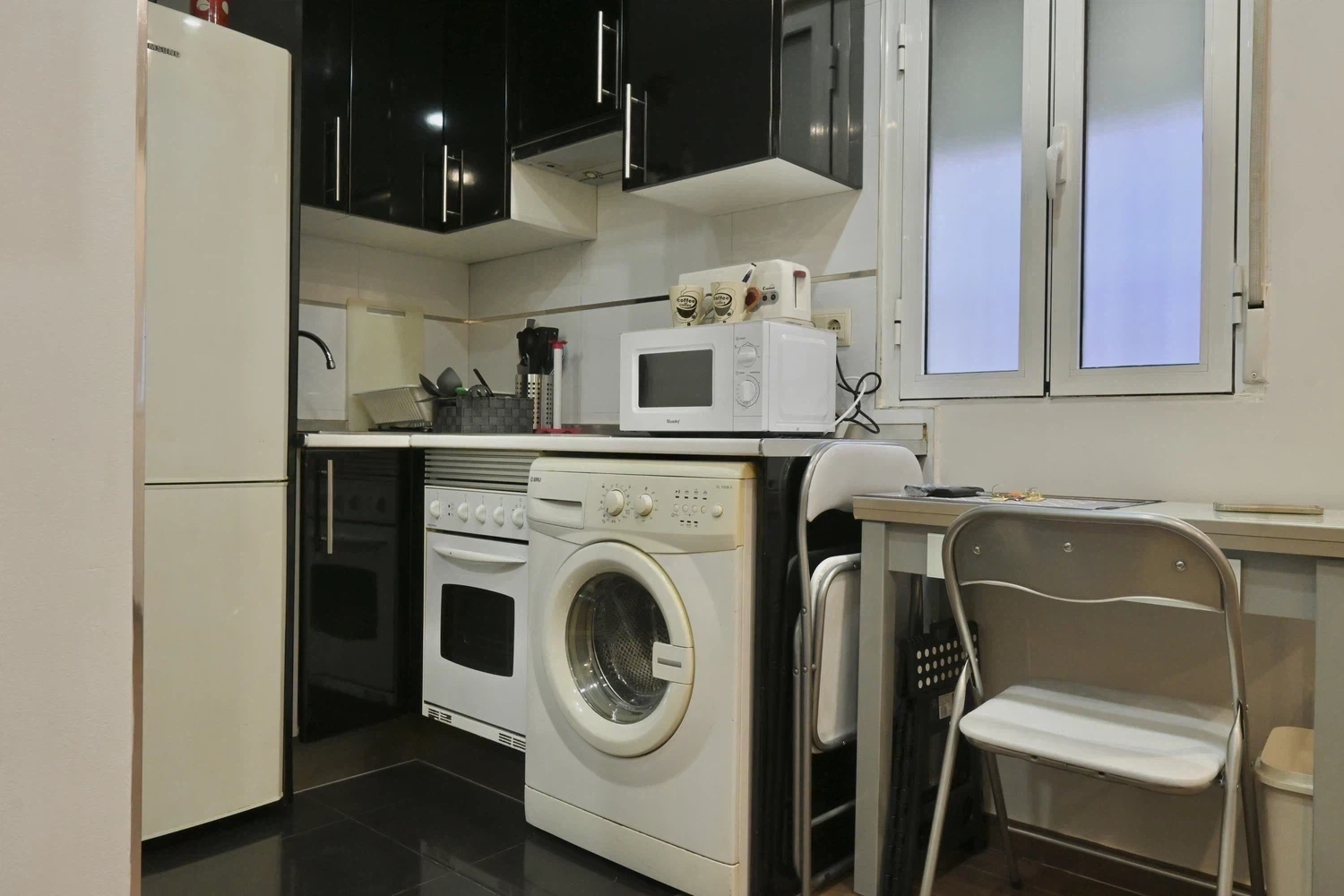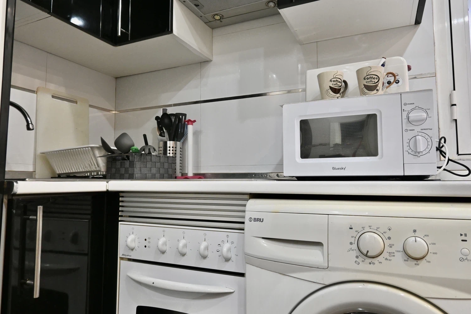 La cocina americana está totalmente equipada con todo lo necesario para preparar deliciosas comidas. Incluye una estufa, un refrigerador, un microondas y utensilios de cocina básicos. También hay una pequeña mesa para dos personas, perfecta para disfrutar de tus comidas caseras.