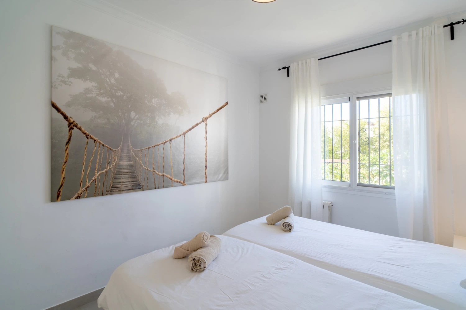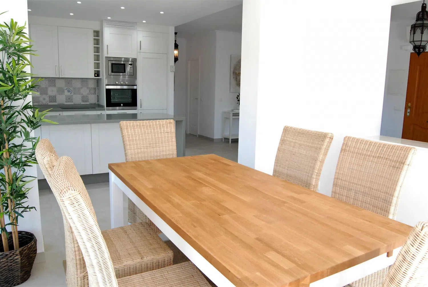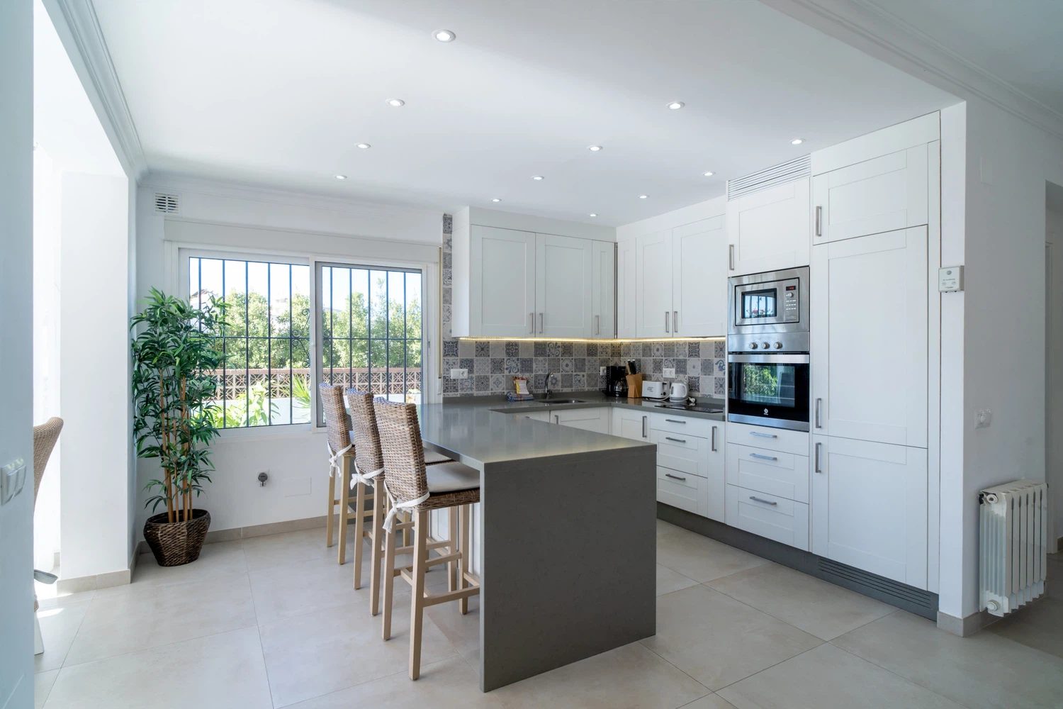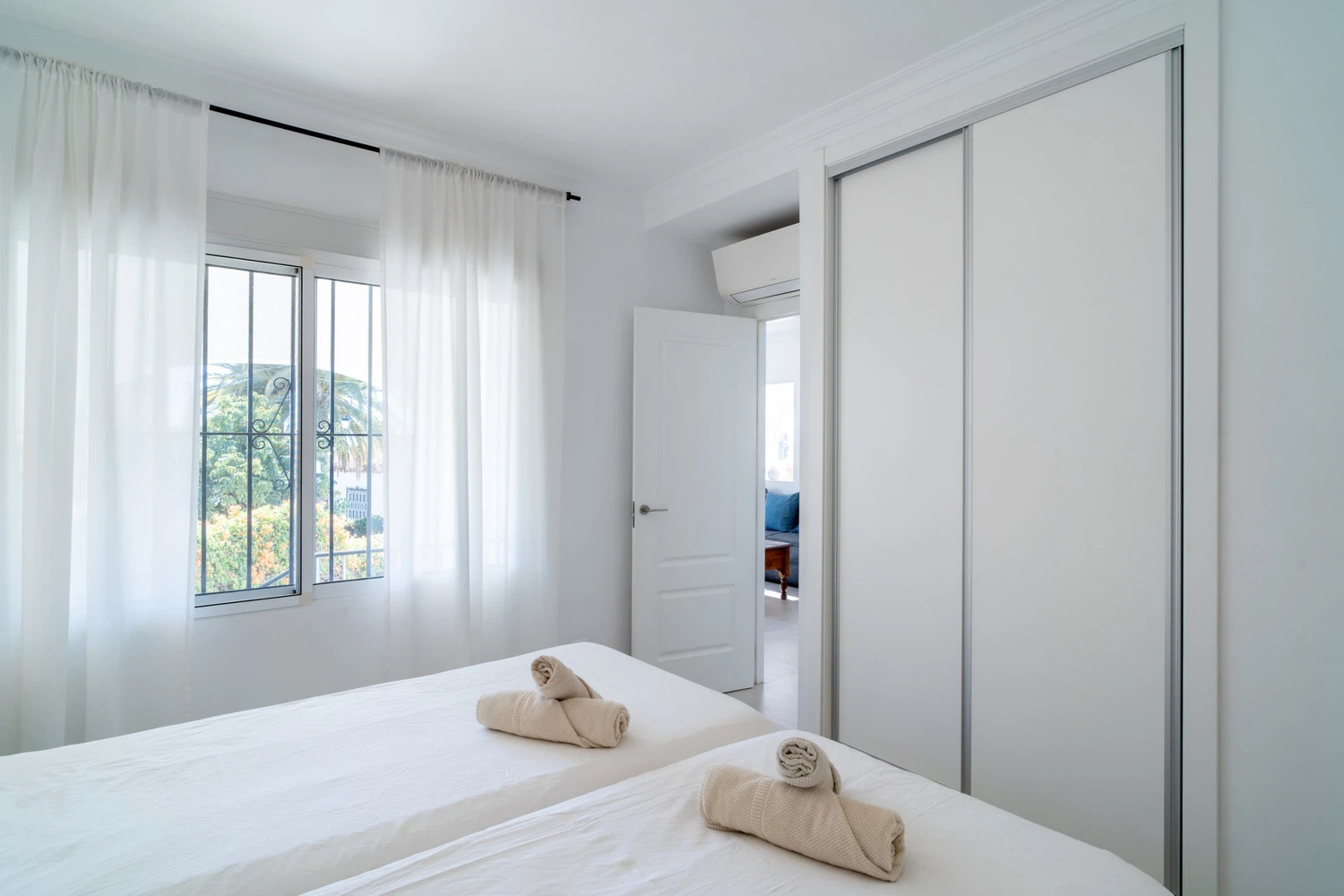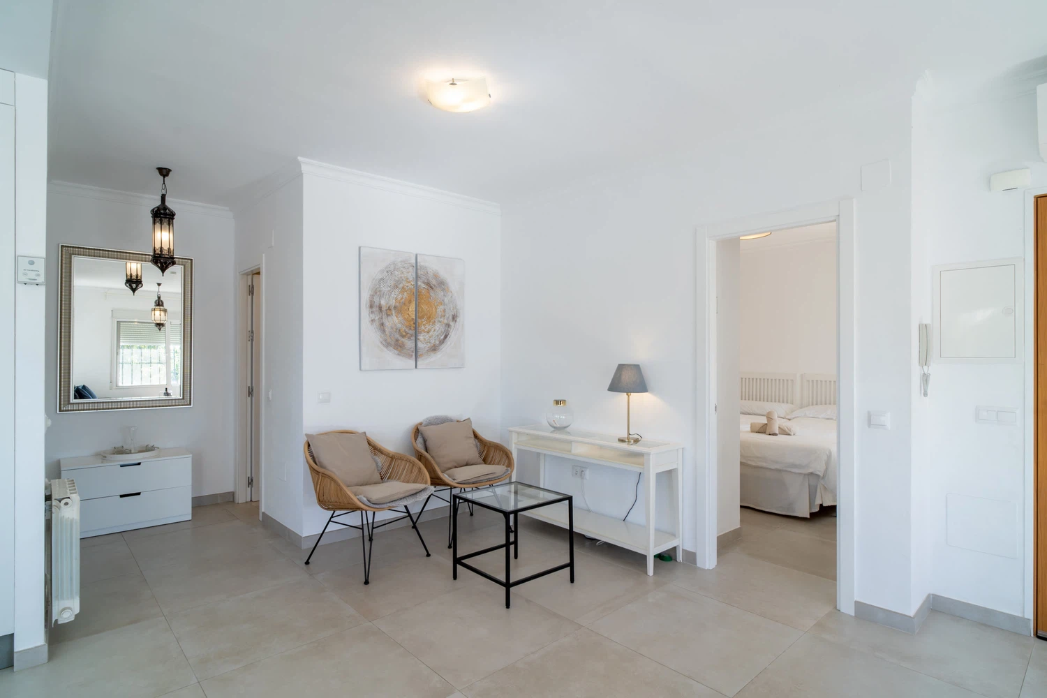 Villa Sandra Luxury Suite es uno de los cuatro lujosos apartamentos que componen el complejo de alquiler vacacional Villa Sandra Casasol, situado en Nerja. Esta espaciosa y moderna unidad es perfecta para familias, parejas y grupos de amigos. La Suite de Lujo dispone de dos confortables dormitorios, uno con cama de matrimonio y otro con dos camas individuales, dos cuartos de baño, uno de ellos en suite. El piso también dispone de una cocina totalmente equipada con electrodomésticos de última generación, una zona de estar y comedor y una terraza privada, ideal para disfrutar de la brisa mediterránea. El piso está decorado con gusto y elegancia, con aire acondicionado, TV de pantalla plana y WiFi gratuito.