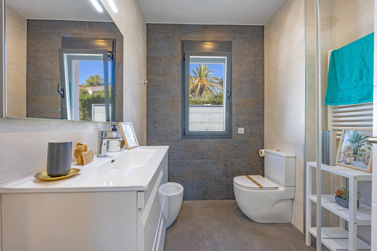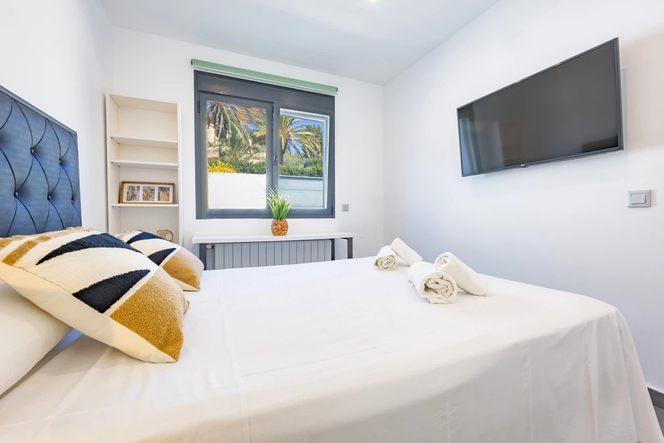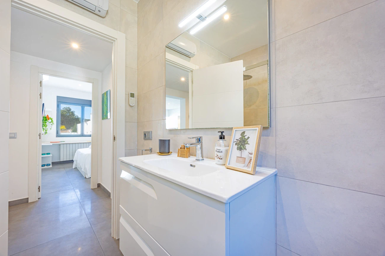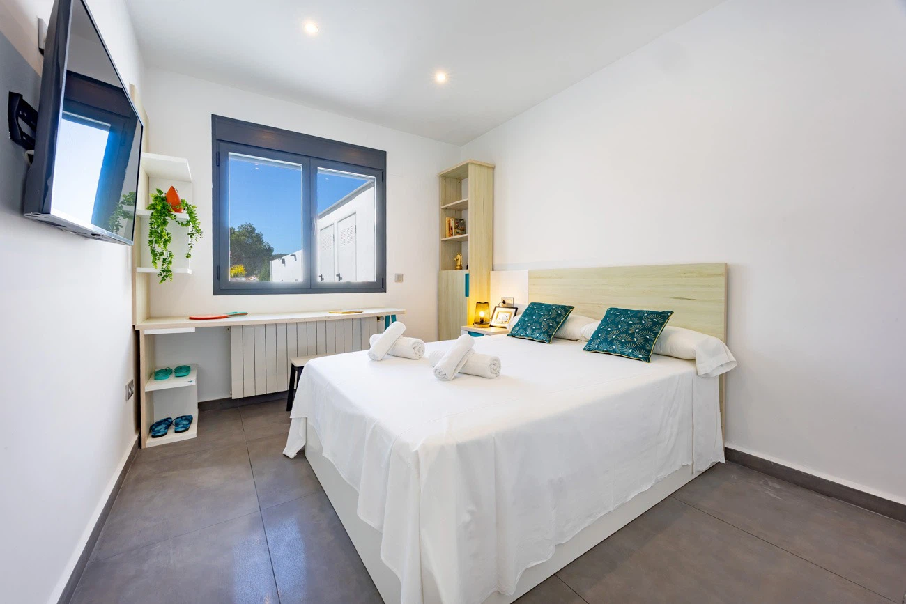 La villa cuenta con 3 amplios dormitorios, todos equipados con camas dobles de alta calidad para un descanso. Televisión individual en cada habitación. El dormitorio principal dispone de un exclusivo baño en suite equipado con ducha y bañera independiente. La casa ofrece un segundo baño completo con ducha para el resto de los invitados.