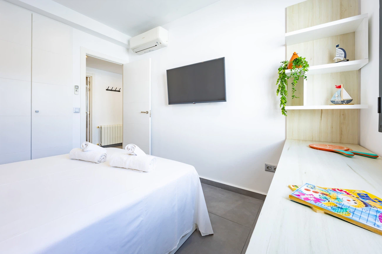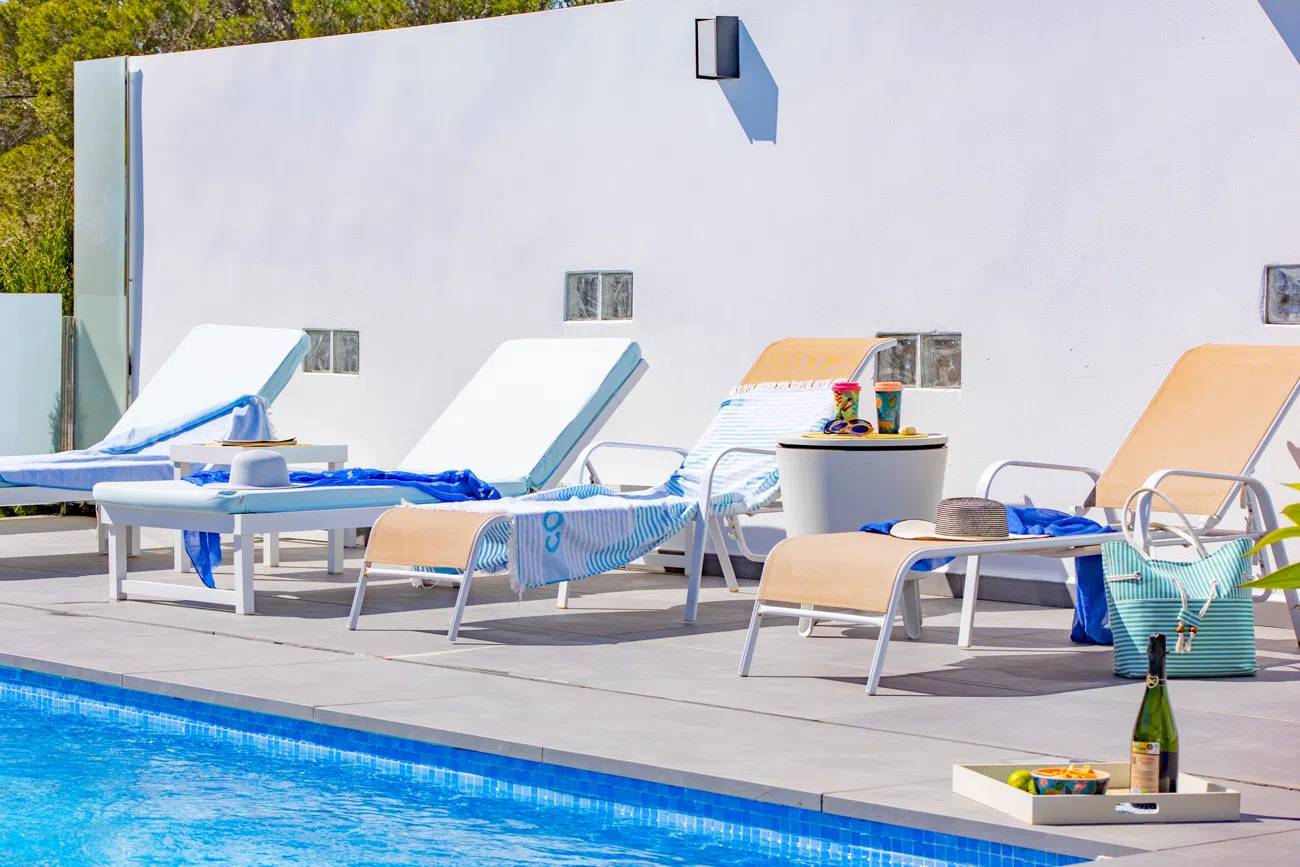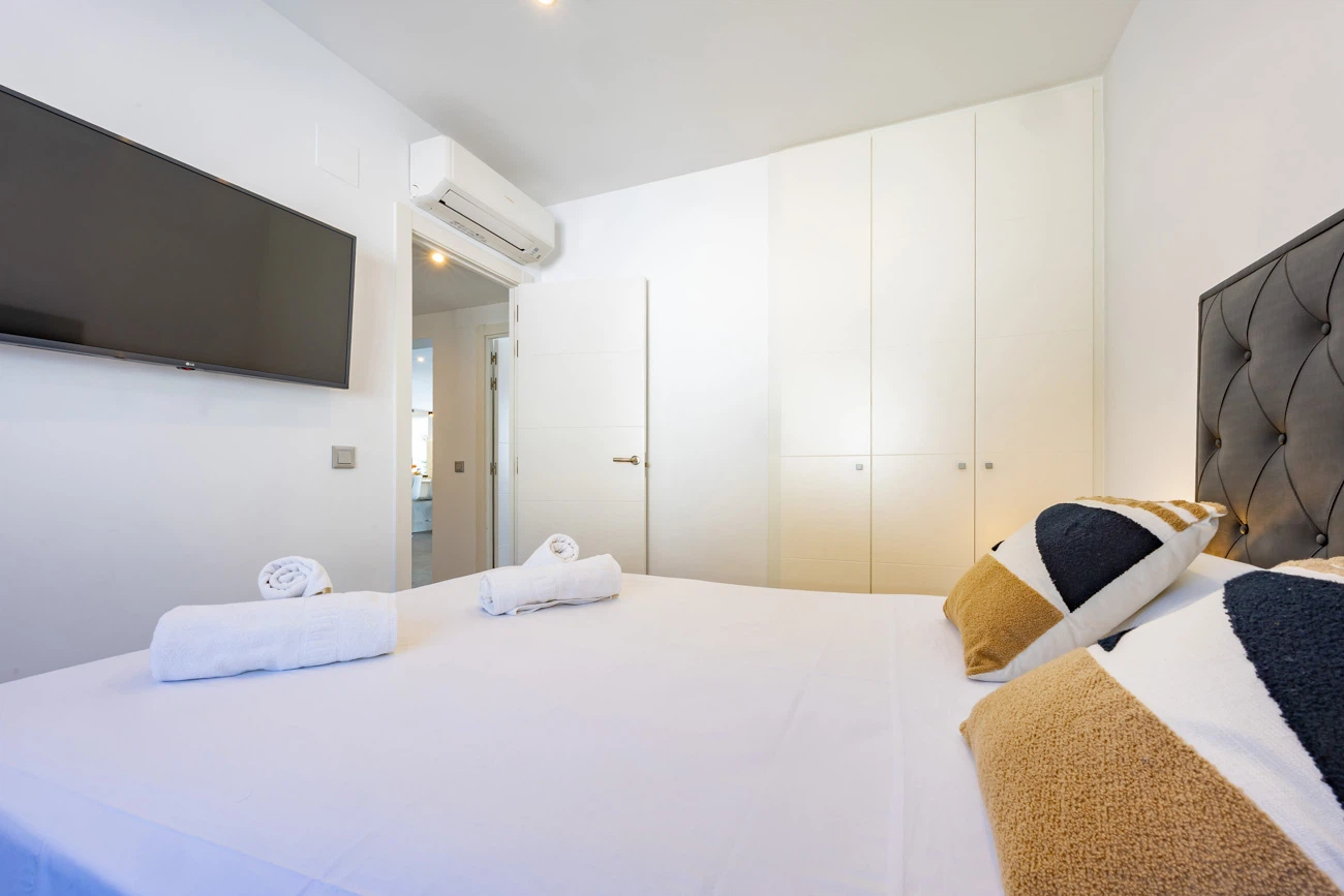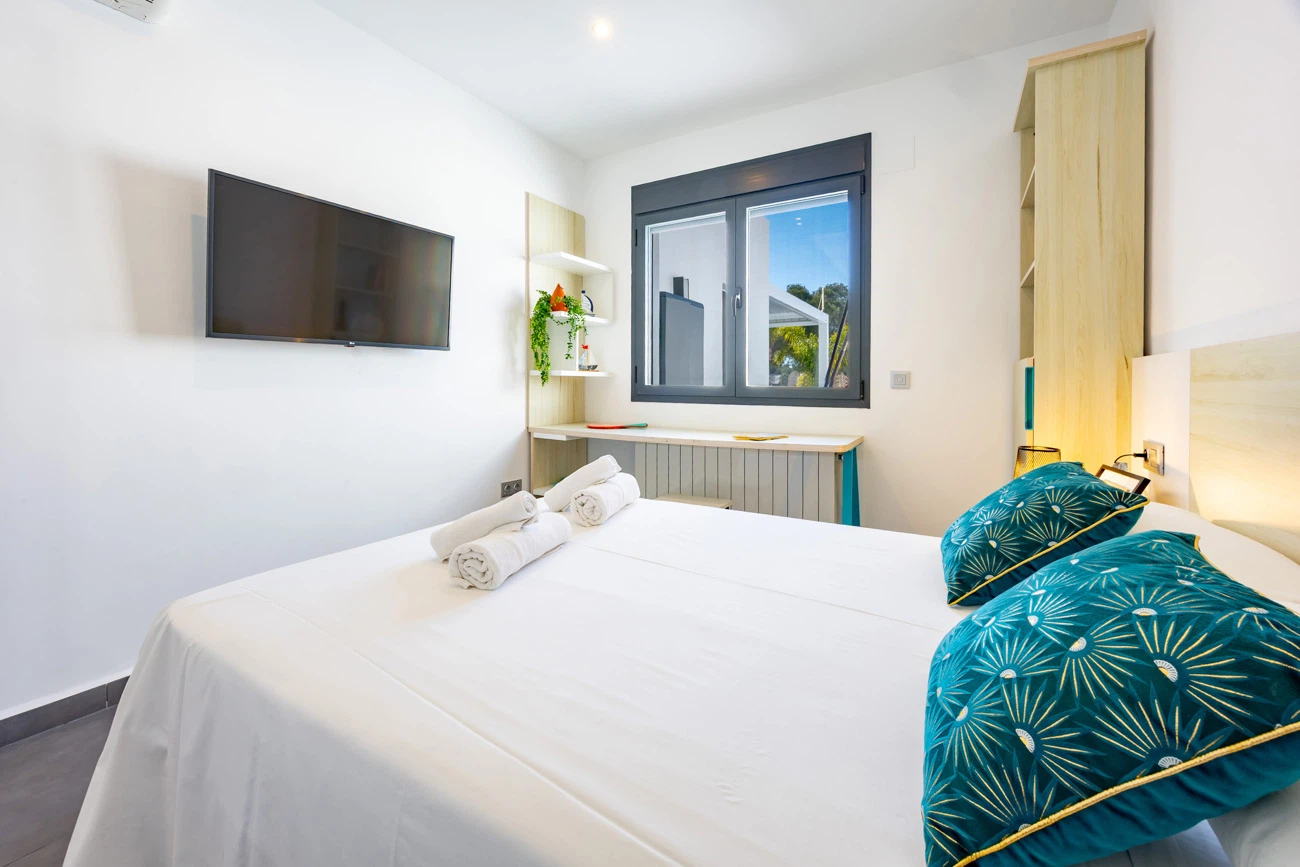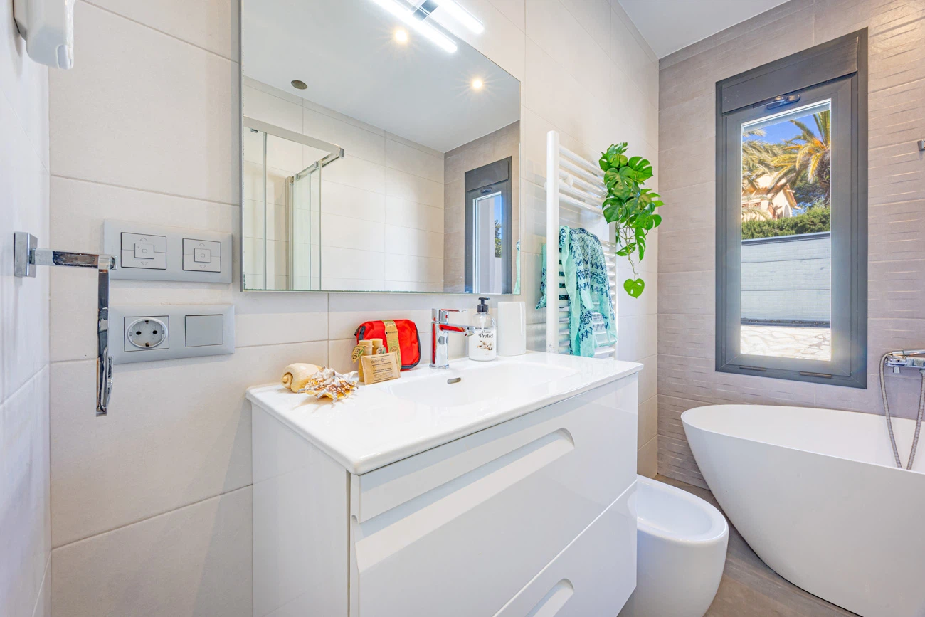 La villa cuenta con 3 amplios dormitorios, todos equipados con camas dobles de alta calidad para un descanso. Televisión individual en cada habitación. El dormitorio principal dispone de un exclusivo baño en suite equipado con ducha y bañera independiente. La casa ofrece un segundo baño completo con ducha para el resto de los invitados.