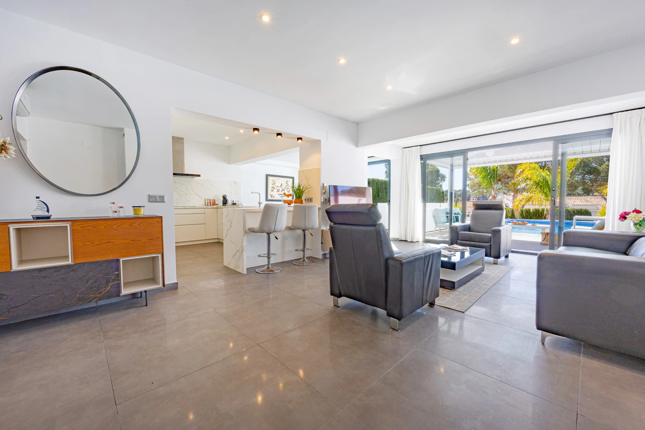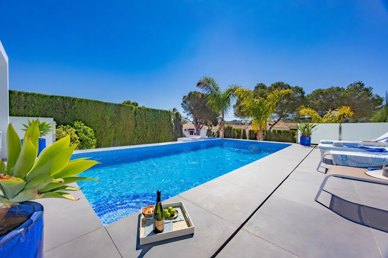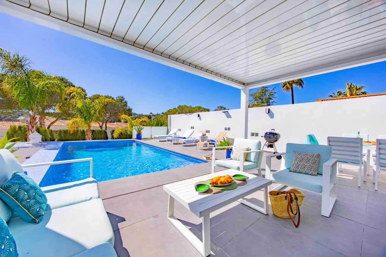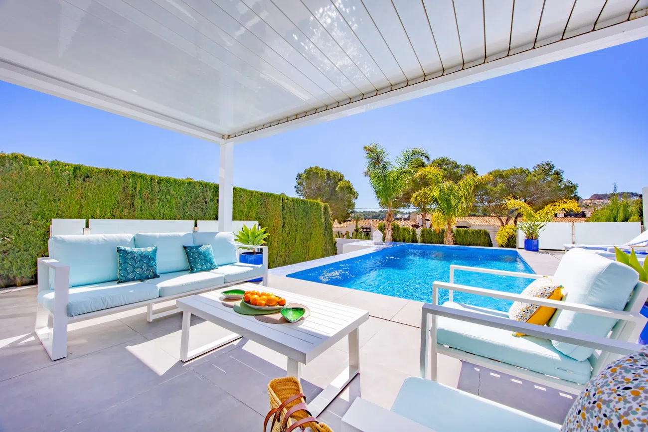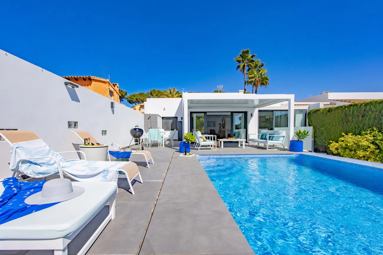 Disfrute de la escapada perfecta en esta moderna villa de vacaciones con espacios modernas y en Moraira, diseñada para ofrecer la máxima comodidad y privacidad en una de las zonas residenciales más tranquilas de la Costa Blanca.