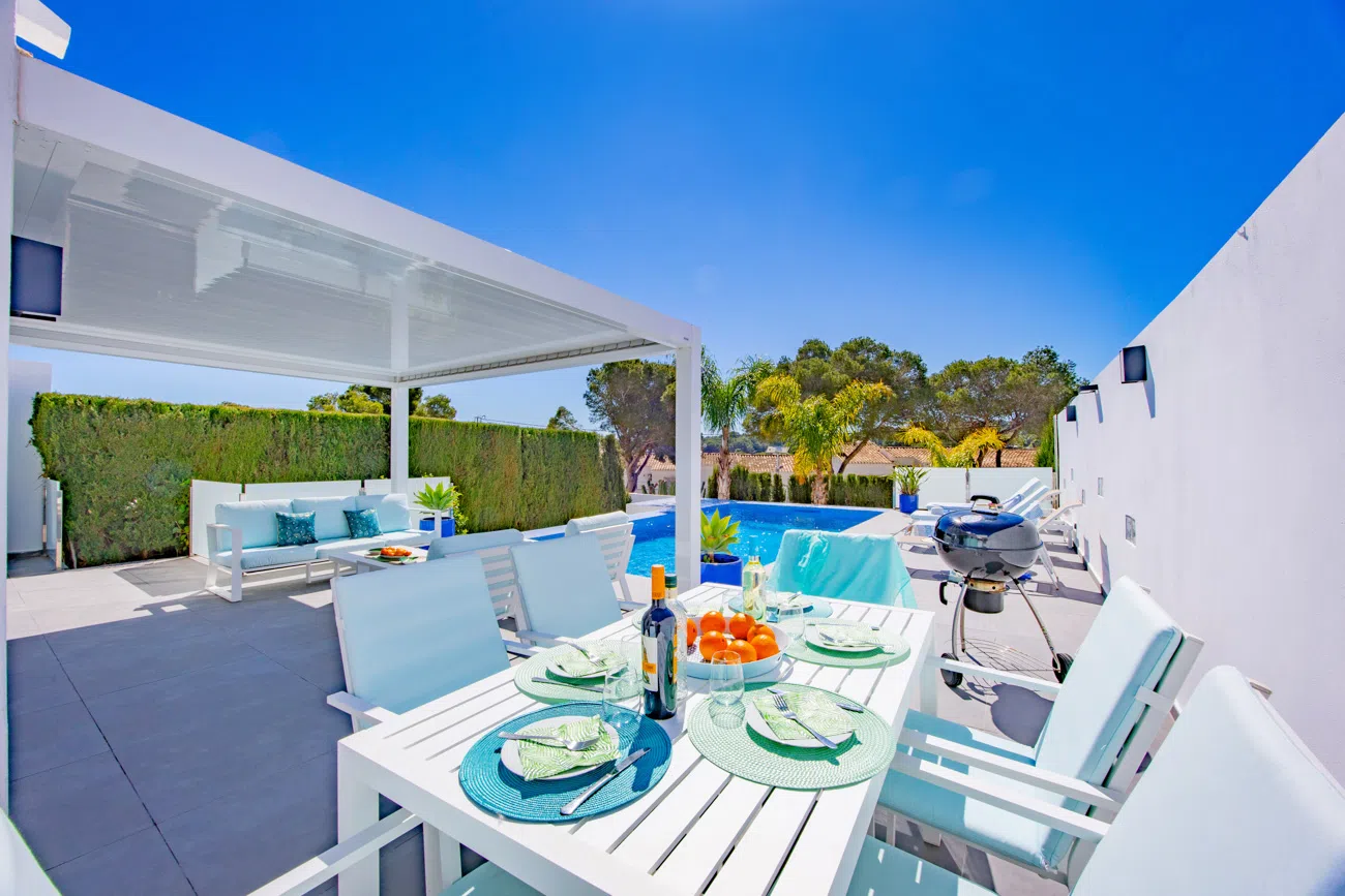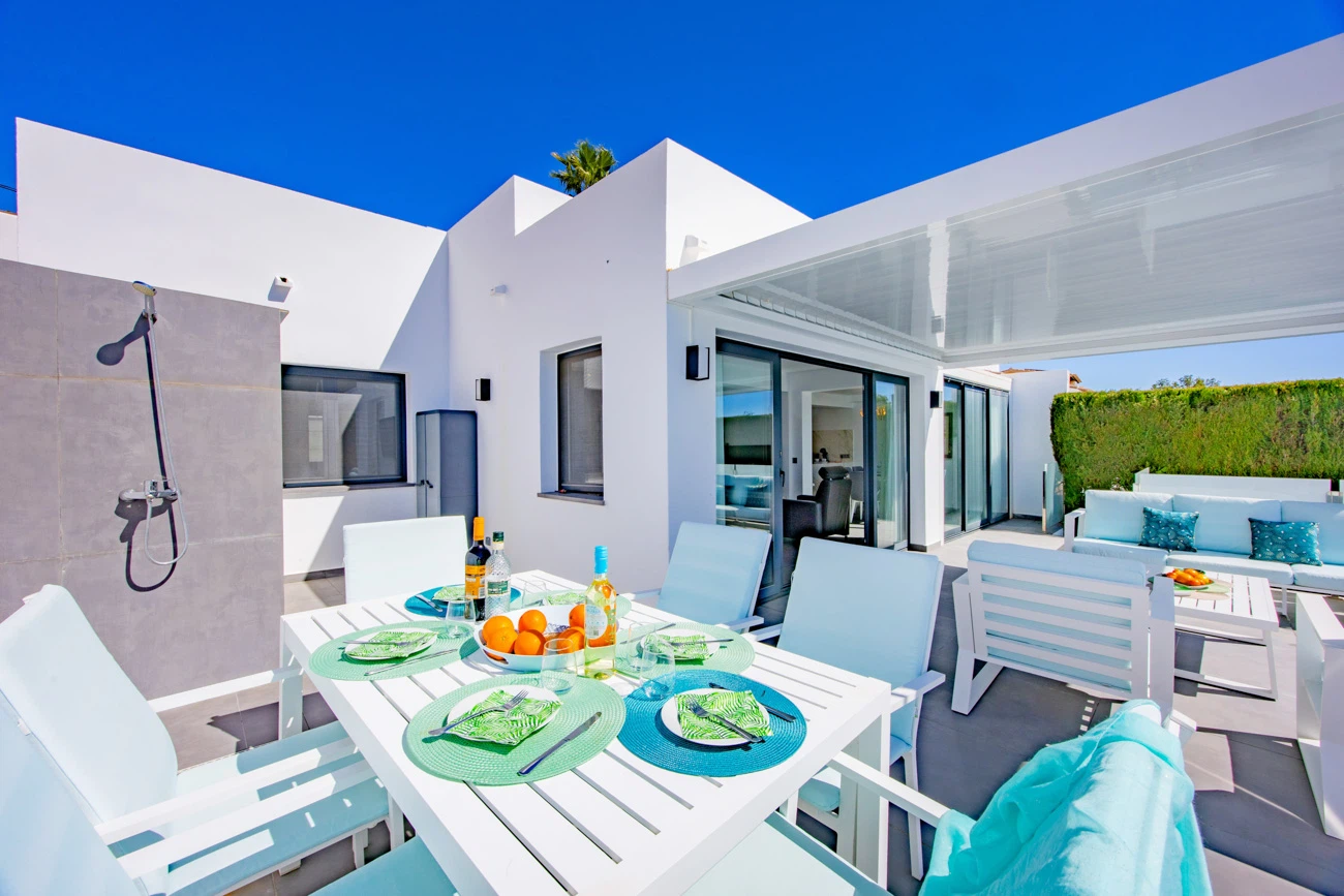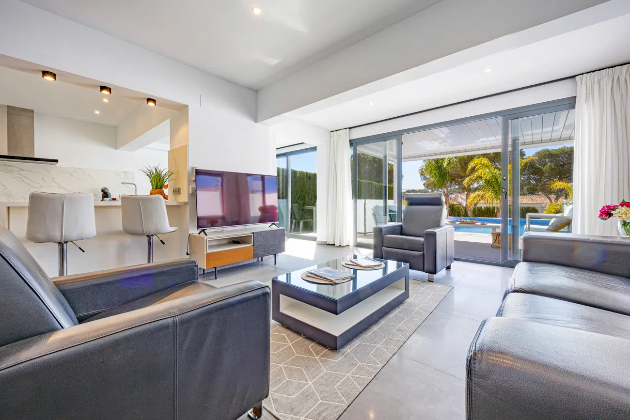 INTERIOR : Todo en una sola planta. Olvídese de las escaleras. Esta villa destaca por su distribución funcional en una sola planta, lo que la hace ideal para familias o grupos que buscan accesibilidad y un flujo natural entre el interior y el exterior.