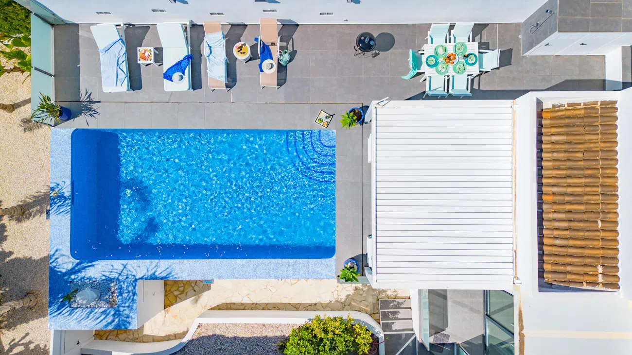 La villa ofrece una bonita piscina privada de 6x3 m rodeada de una gran terraza en parte cubierta. Dispone de una Zona Relax, con un espacio chill-out perfecto para desconectar. Comodidad extra: Un aseo independiente exterior junto a la piscina para mayor funcionalidad. Plaza de aparcamiento privada dentro de la parcela cerrada.