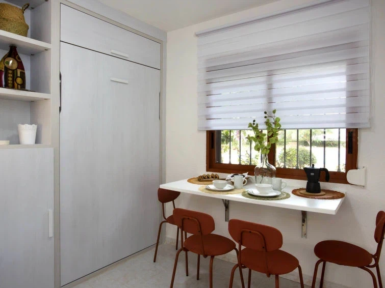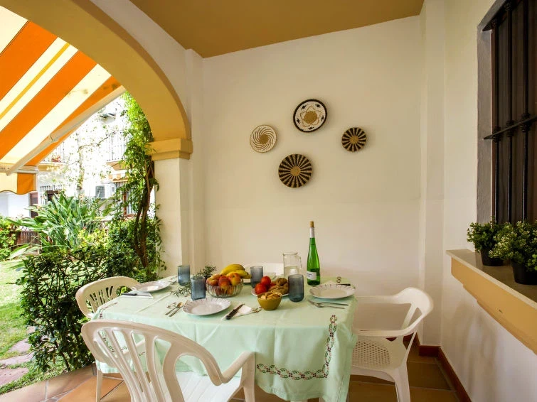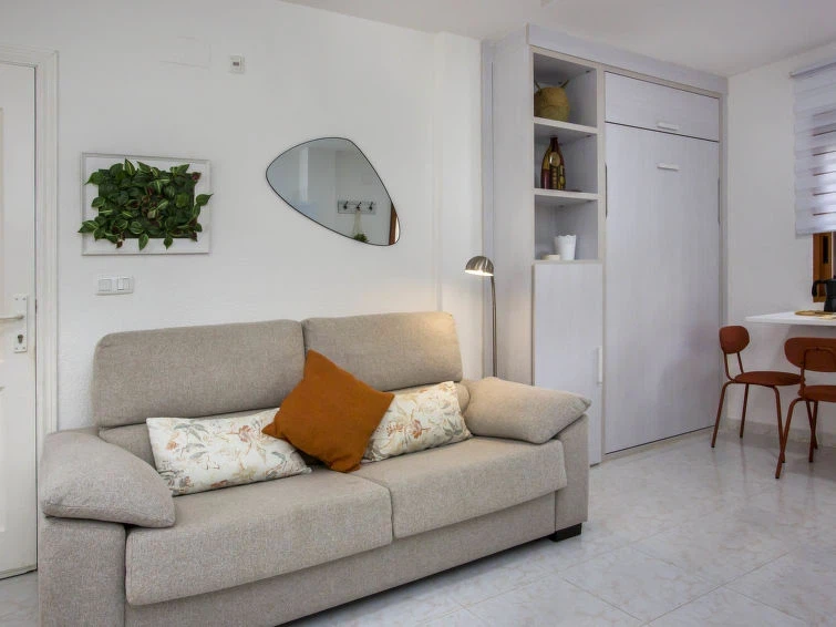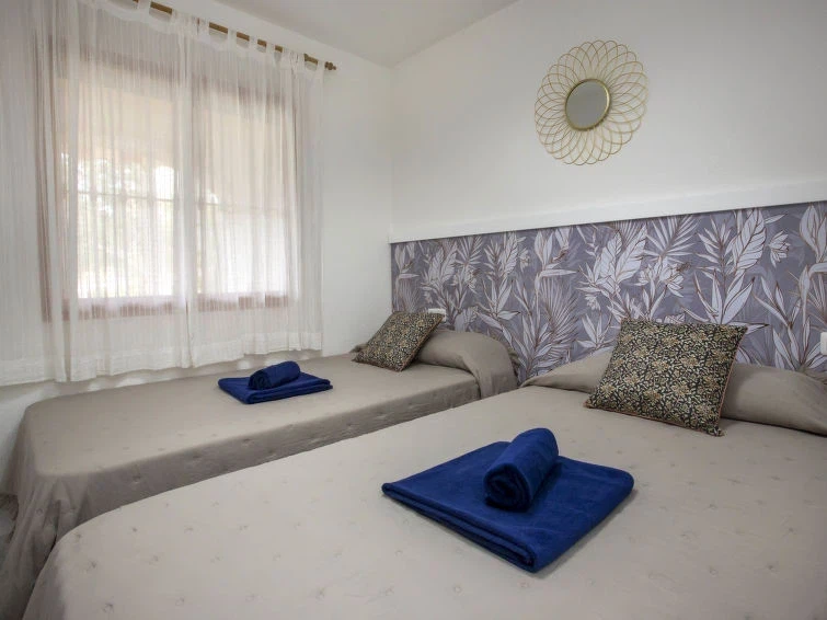 "El Patio", apartamento de 2 estancias 50 m2. Reformado en 2024, con mobiliario bonito y agradable: salón-comedor con 1 sofá-cama (135 cm, 190 cm de longitud), TV digital, aire acondicionado, ventilador y bomba de calor, caliente. Salida a la terraza-jardín, a la piscina. 1 dorm. con 2 camas (105 cm, 200 cm de longitud), ventilador. Cocina abierta (horno, 3 placas de vitrocerámica, tostadora, hervidor de agua eléctrico, microondas, congelador, cafetera eléctrica). Baño/WC. Ningún tipo de calefacción. Terraza. Muebles de terraza. El alojamiento dispone de: lavadora, plancha, secador de pelo. Internet (Wifi, gratis). Plaza de aparcamiento. A tener en cuenta: TV solamente ES. CV-VUT0515177-A