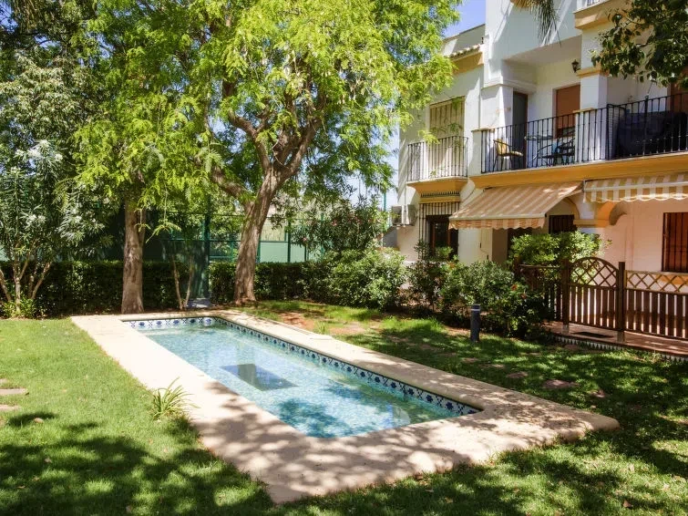 Casa de apartamentos "El Patio", bonito de 3 plantas. En las afueras de la localidad, a 4 km del centro de Denia, a 500 m del mar. Comunitario: jardín con plantas y árboles, piscina (18 x 10 m, 40 - 210 cm de profundidad, Disponible por temporada: 01.Ene. - 31.Dic.) con escalera interior. Piscina con forma irregular. Piscina para niños, ducha exterior, tenis (1 x pista rápida), barbacoa, Aparcamiento en el mismo terreno. Supermercado 1.2 km, restaurante 750 m, bar, parada de autobús 250 m, playa de arena 500 m.