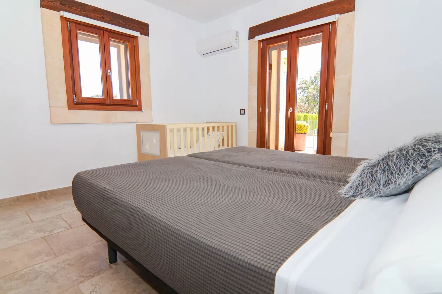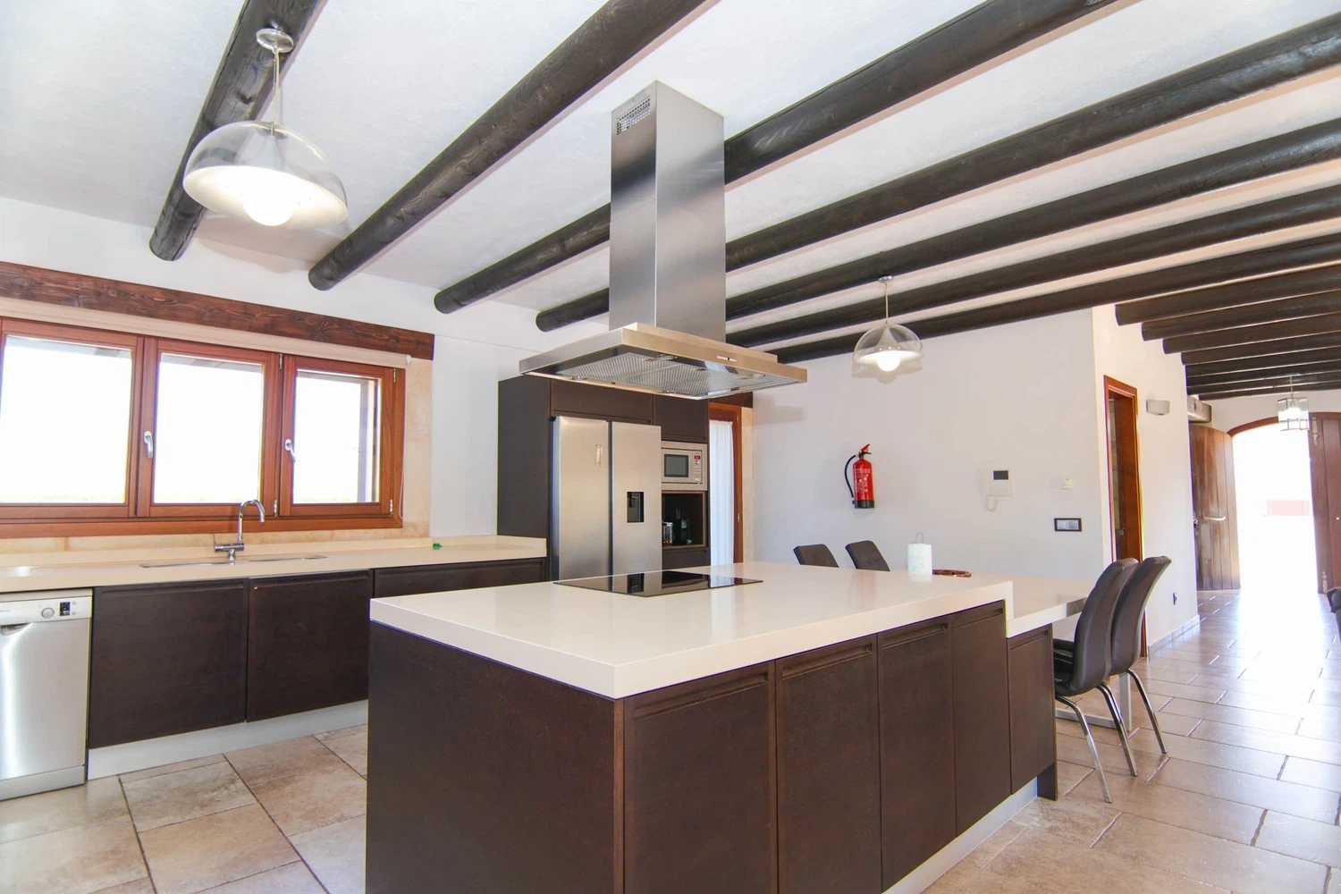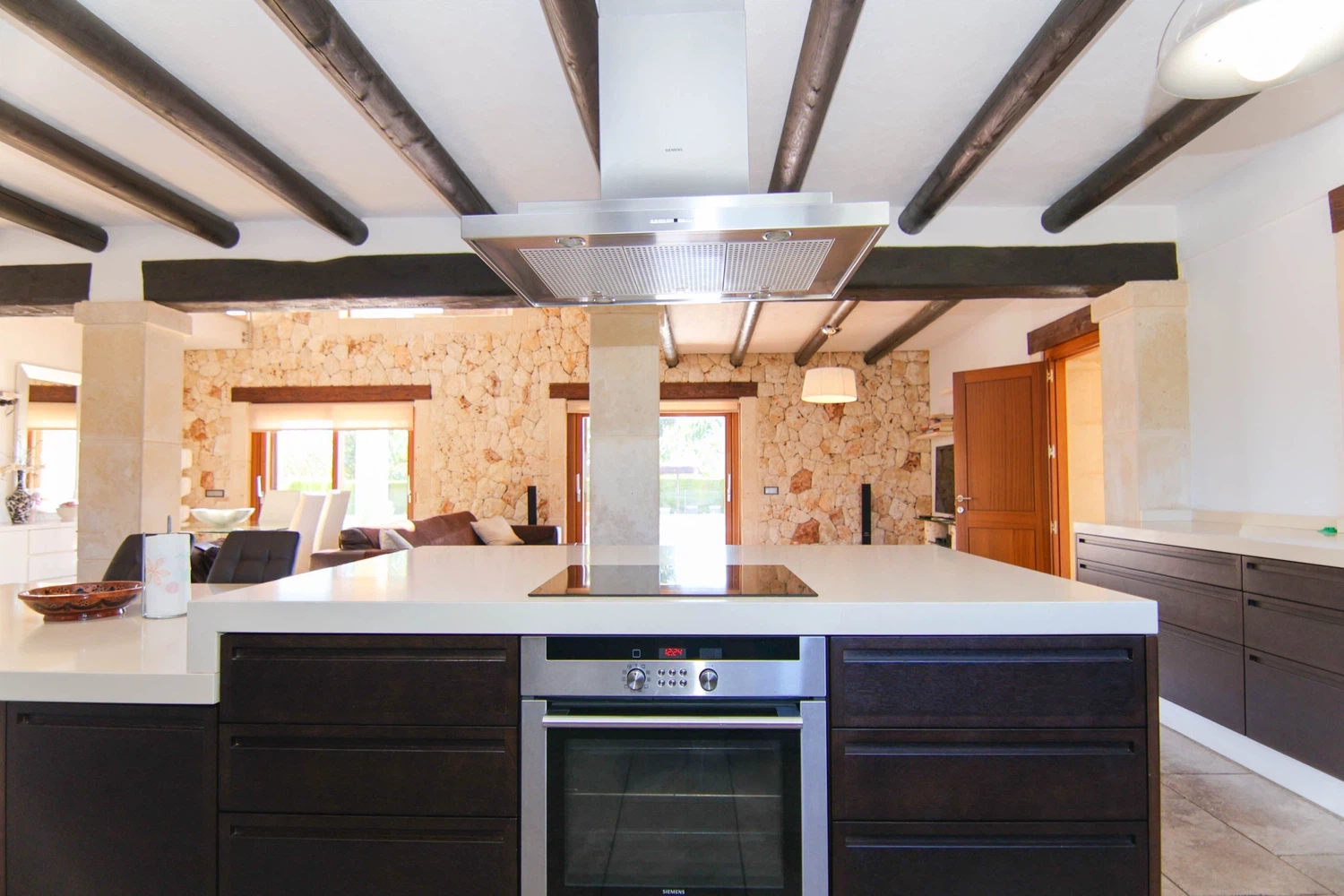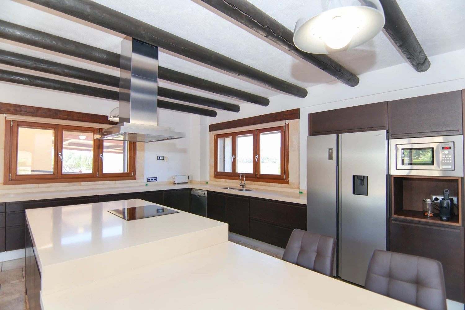 Hermosa y moderna Villa cerca de Sa Pobla con una hermosa vista a la montaña. La casa tiene una superficie habitable de aproximadamente 250 m². En la planta baja, junto a la entrada a la derecha, se encuentran las escaleras que llevan al segundo piso. A la izquierda se encuentra el primer dormitorio y delante un baño, el comedor en un concepto abierto con la sala de estar totalmente equipada, también la cocina es súper moderna. Hay otro comedor con barbacoa. En el primer piso hay dos baños más y tres dormitorios. Desde el balcón se puede disfrutar de las fantásticas vistas de la campiña mallorquina. La casa tiene aire acondicionado y calefacción central.