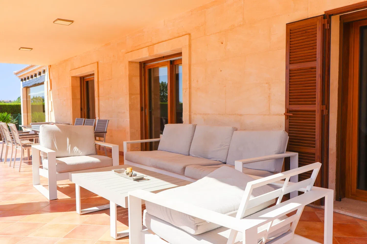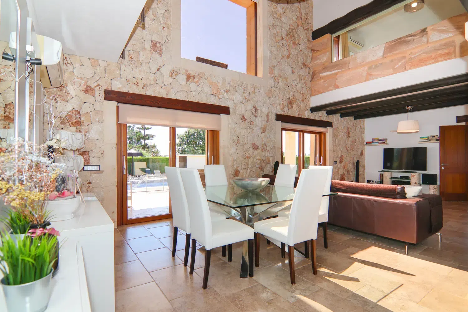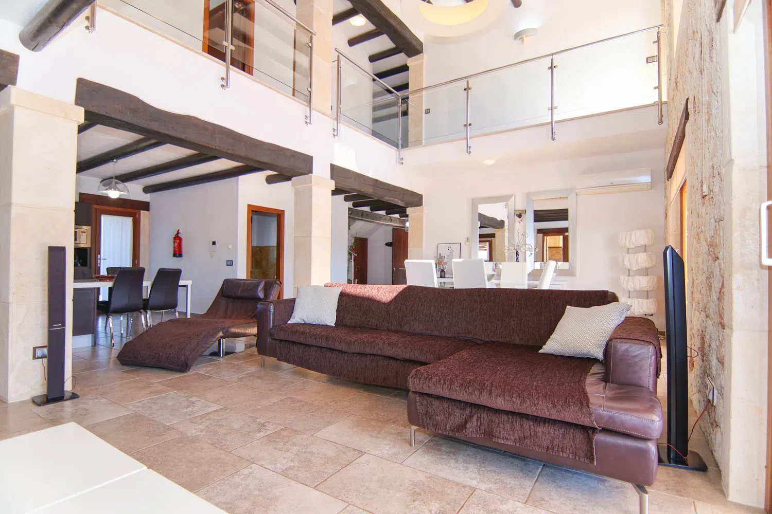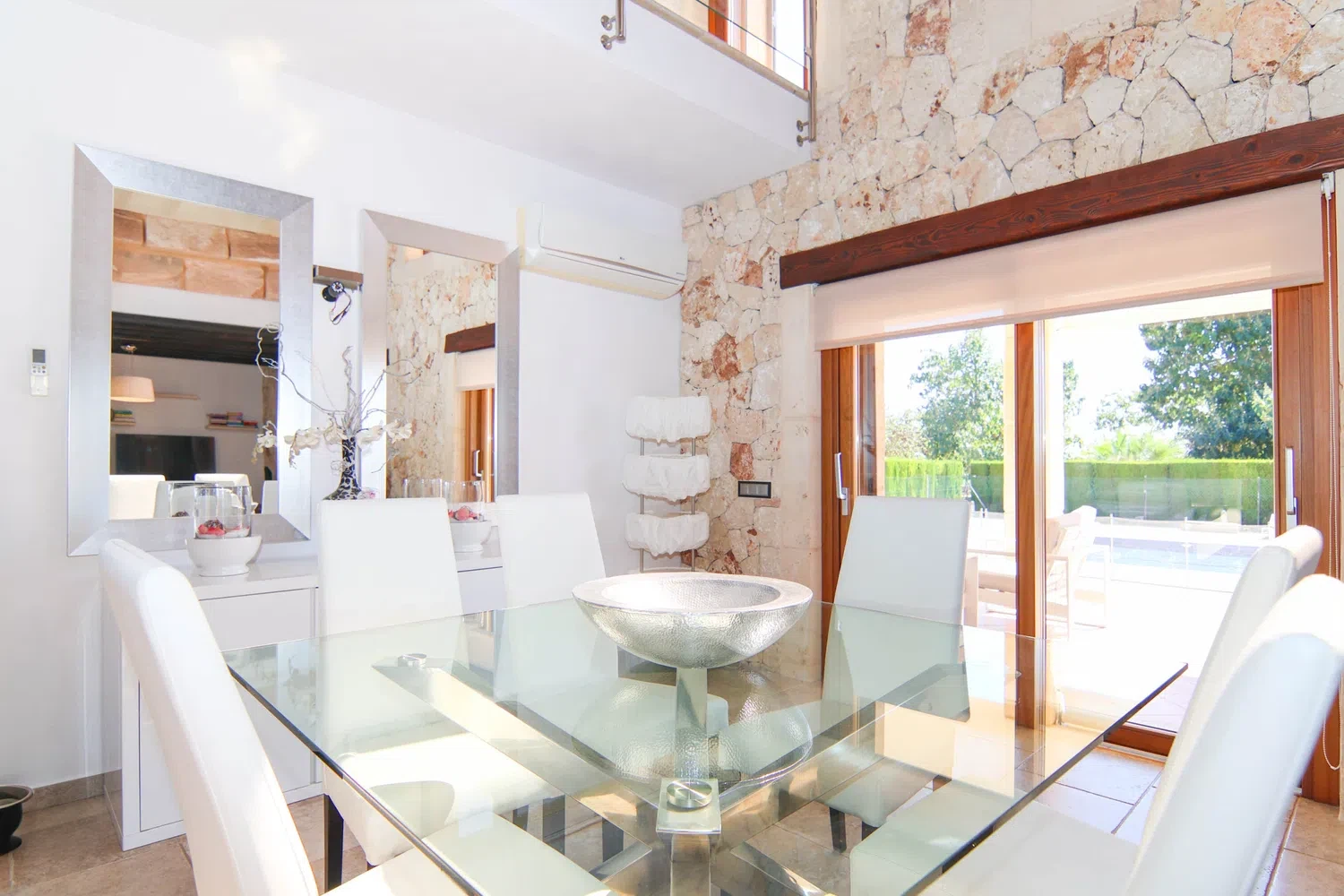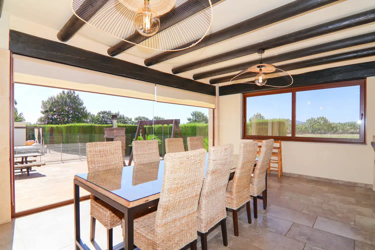 Hermosa y moderna Villa cerca de Sa Pobla con una hermosa vista a la montaña. La casa tiene una superficie habitable de aproximadamente 250 m². En la planta baja, junto a la entrada a la derecha, se encuentran las escaleras que llevan al segundo piso. A la izquierda se encuentra el primer dormitorio y delante un baño, el comedor en un concepto abierto con la sala de estar totalmente equipada, también la cocina es súper moderna. Hay otro comedor con barbacoa. En el primer piso hay dos baños más y tres dormitorios. Desde el balcón se puede disfrutar de las fantásticas vistas de la campiña mallorquina. La casa tiene aire acondicionado y calefacción central.